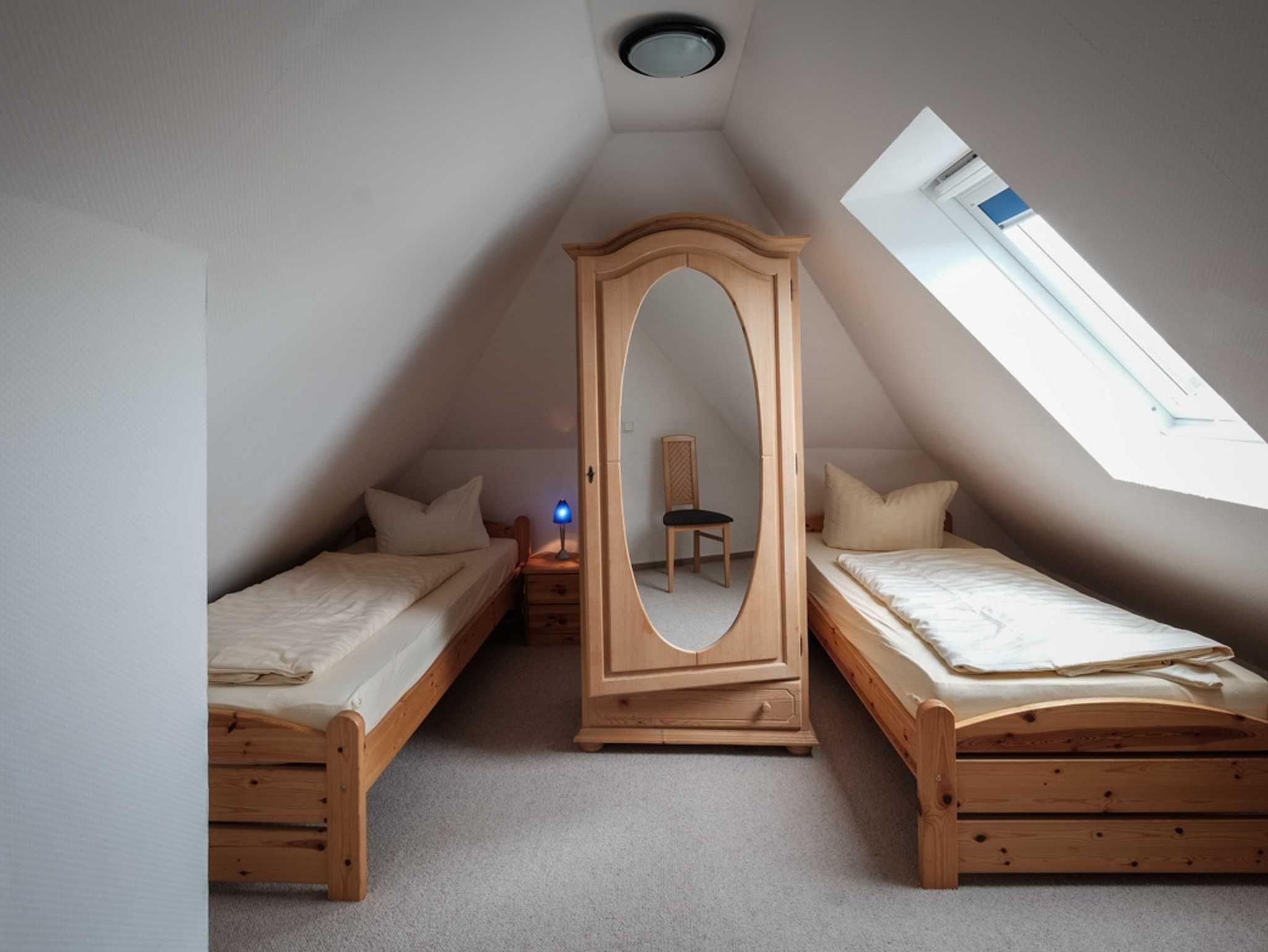 Die helle und exklusiv eingerichtete 3-Raum- Obergeschoss Wohnung ist (ca. 45 m²) groß ist für 4 Personen ausgelegt. Sie besteht aus einer kompletten Küchenzeile mit Cerankochfeld, Geschirrspüler und Kühlschrank, Bad mit Dusche und WC. Fliesenfußboden sowie Fußbodenheizung im Bad, die zwei Schlafzimmer sind im Spitzboden und über eine Raumspartreppe erreichbar. (Achtung, es handelt sich um eine steile Treppe und ist für Gäste mit Geh- oder Sehbehinderung, sowie für kleine Kinder nicht geeignet). Die Erstausttatung Bettwäsche sowie 1 Geschirrtuch sind inklusive. Handtücher können entweder mitgebracht oder vor Ort gegen Gebühr ausgeliehen werden (bitte beim Schlüsselverwalter Herrn Käding vorbestellen). Den Gästen steht kostenfrei ein DSL-Internetzugang über W-LAN zur Nutzung zur Verfügung (keine zugesicherte Eigenschaft falls mal der Router ausfällt) . Haustiere sind nicht erlaubt, Nichtraucherwohnung.