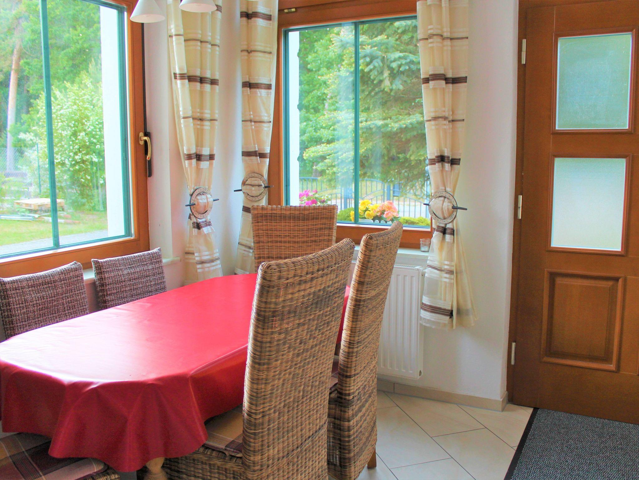 In der Veranda mit Essecke und kleiner Garderobe können Sie gut von einem schönen Tag erzählen, bei einer Tasse Kaffee entspannen oder sich mit Spielen einen spannenden Nachmittag oder Abend gestalten.