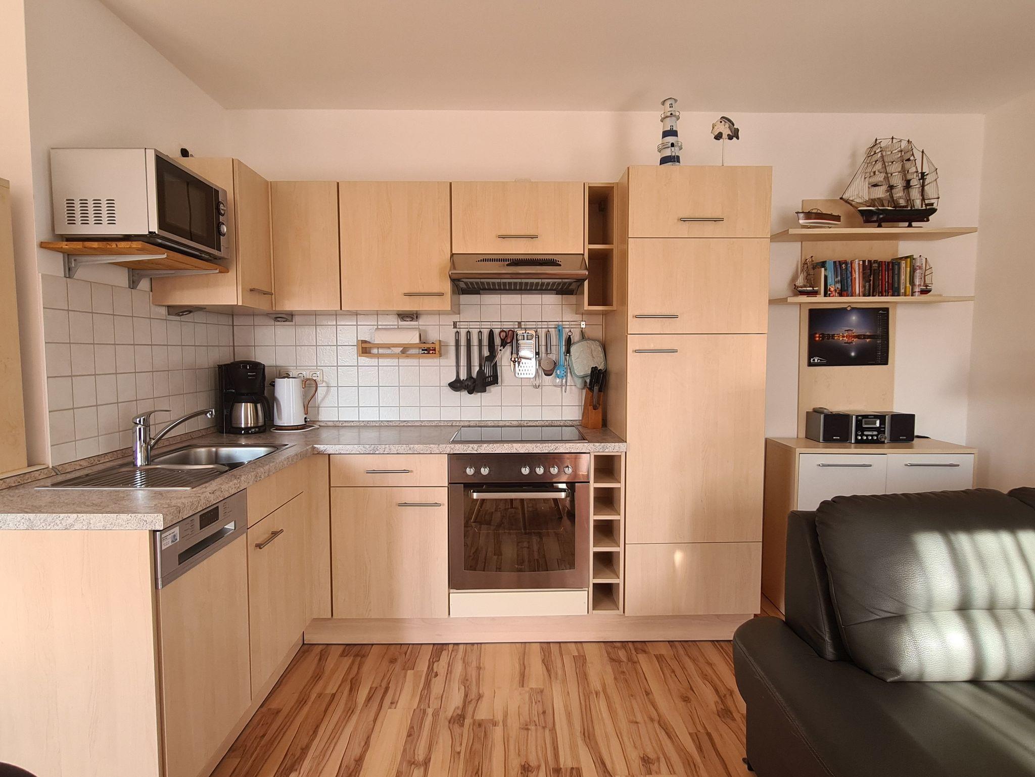 Fußbodenheizung, Infrarotsauna, Elektrokamin, TV, DVD-Player, Radio mit CD/MP3-Player, Balkonmöbel, sehr gut ausgestattete Küche mit Ceranherd, Backofen, Kühlschrank, Tiefkühlfach, Kaffeemaschine, Toaster, Mikrowelle, Wasserkocher, Gläser, Geschirr, Besteck