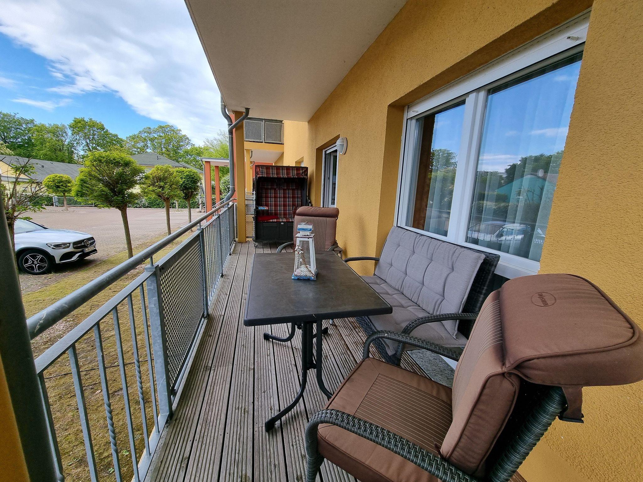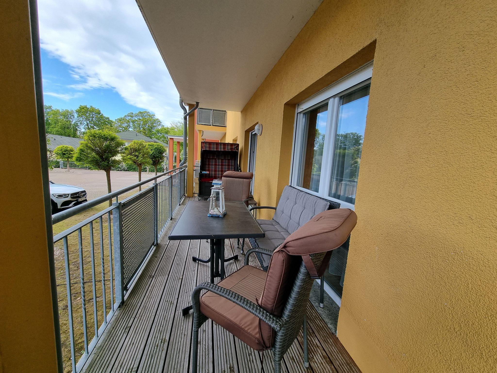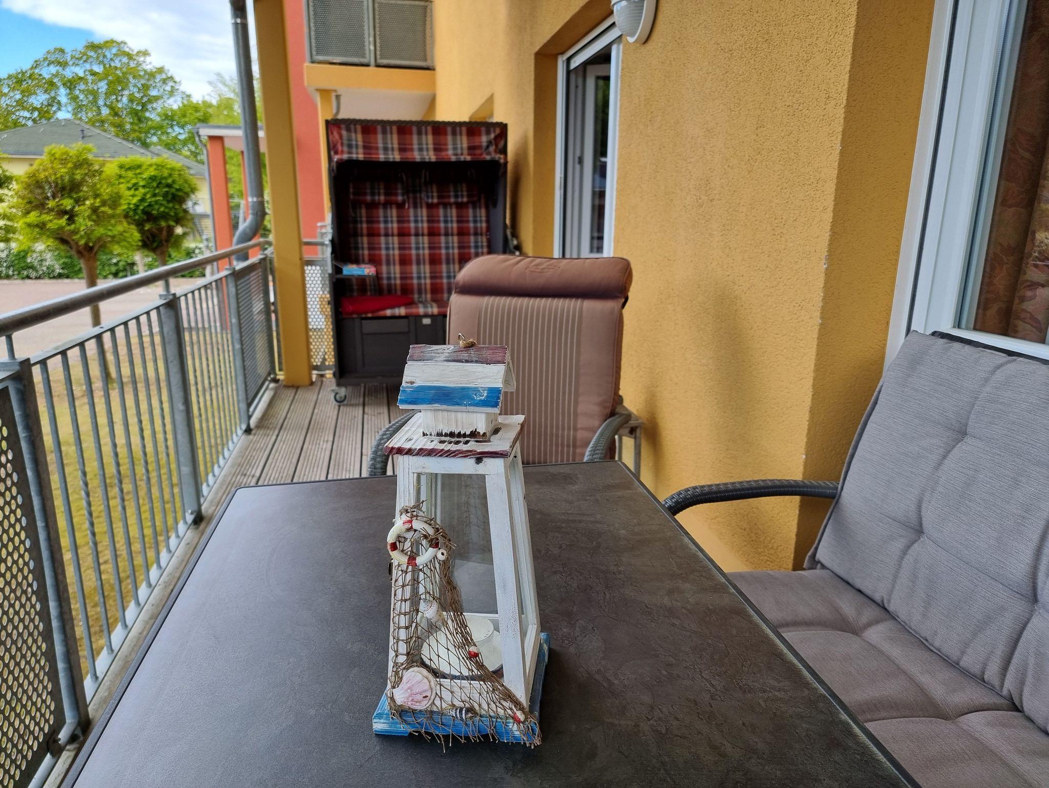 1 Eck-Balkon mit Möbeln und Strandkorb