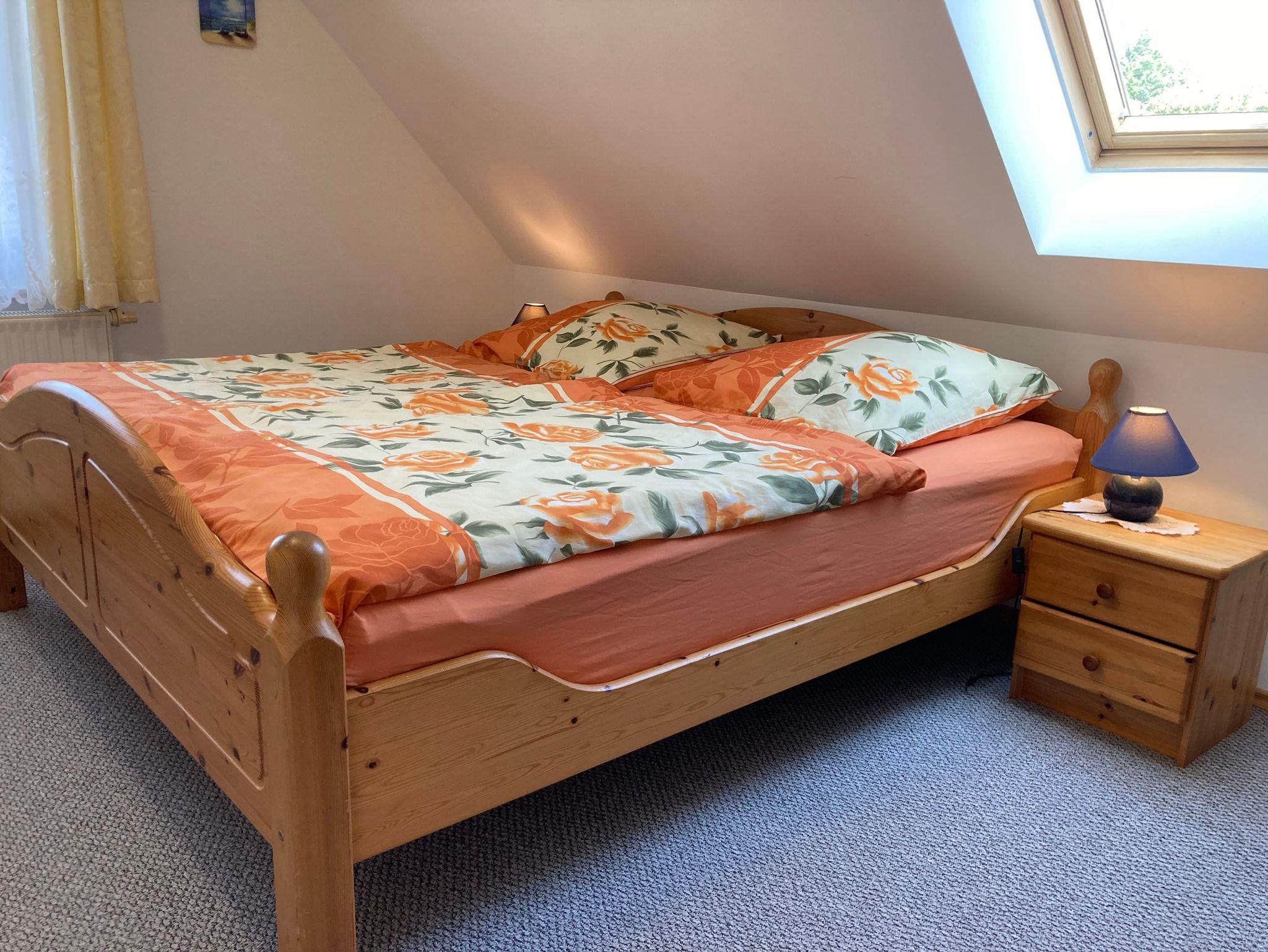 Die Ferienwohnung 2 im Obergeschoss des Ferienhauses verfügt über 2 Schlafzimmer mit jeweils einem Doppelbett und ist für max 4 Personen ausgestattet.