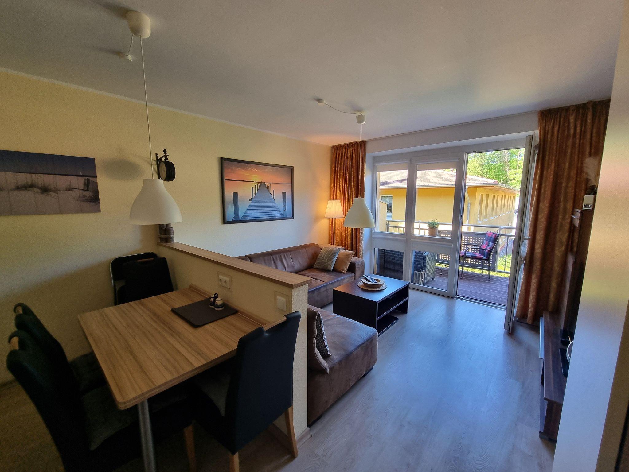 Die Ferienresidenz Ostseepark- Zempin liegt idyllisch hinter den Dünen in dem malerischen Ostseebad Zempin. Die Ferienwohnung ?Dünenblick? wird ganzjährig für max. 5 Personen vermietet. Die neu eingerichtete Ferienwohnung mit einer Größe von 78m² lädt mit ihrem gemütlichen Ambiente und dem beiden Balkonen zum Wohl fühlen ein. Hier kann man den Alltagsstress abschalten und sich in angenehmer Atmosphäre wohl fühlen. Für Familien mit Kindern ist gesorgt, ein schöner Spielplatz befindet sich innerhalb der Anlage. Auf dem Gelände befindet sich ein gemeinschaftlicher Grillplatz der genutzt werden kann sowie ein gemeinschaftlicher Wasch- und Trockenraum mit 2 Waschmaschinen und 1 Trockner (gegen Gebühr).