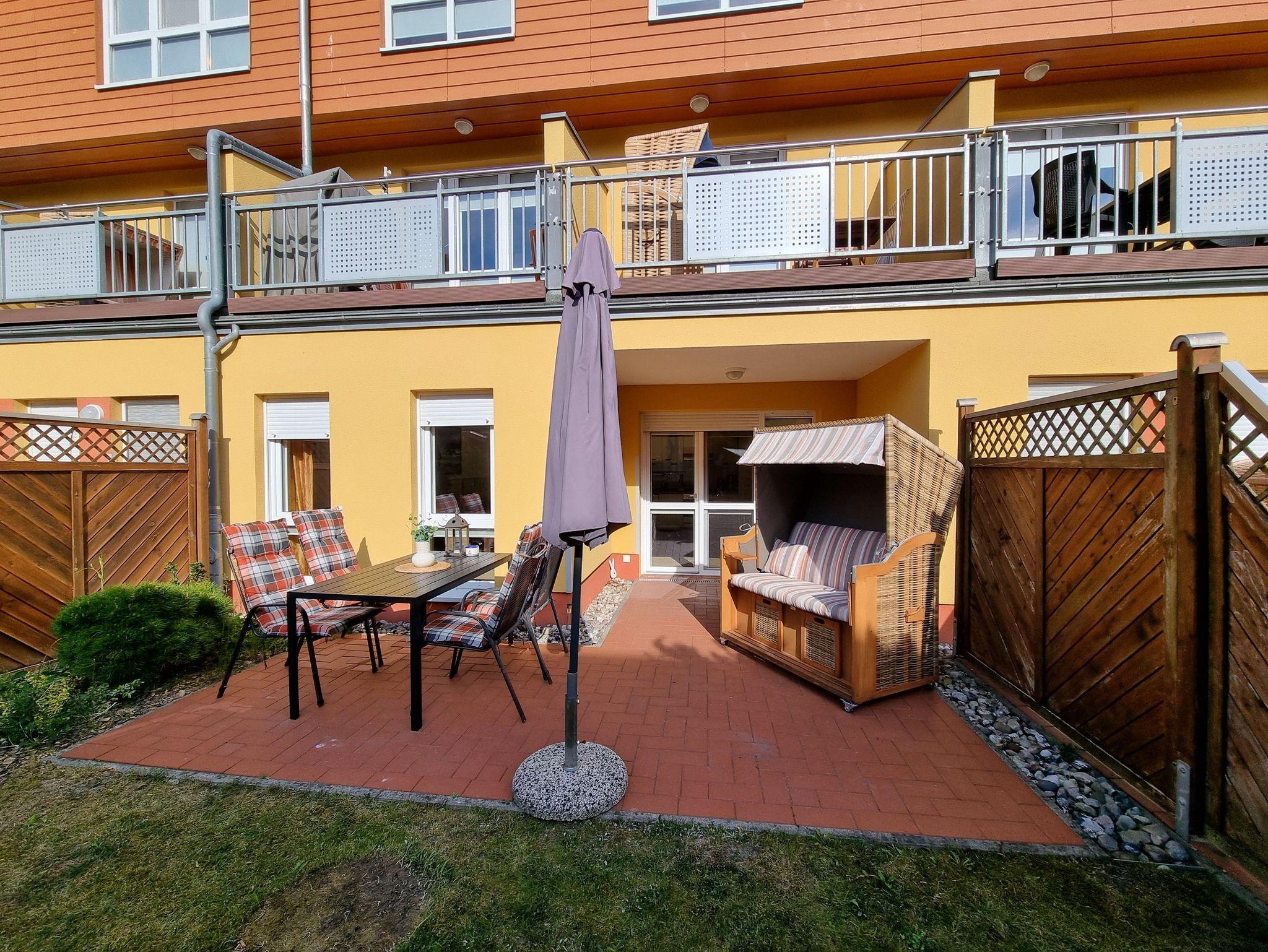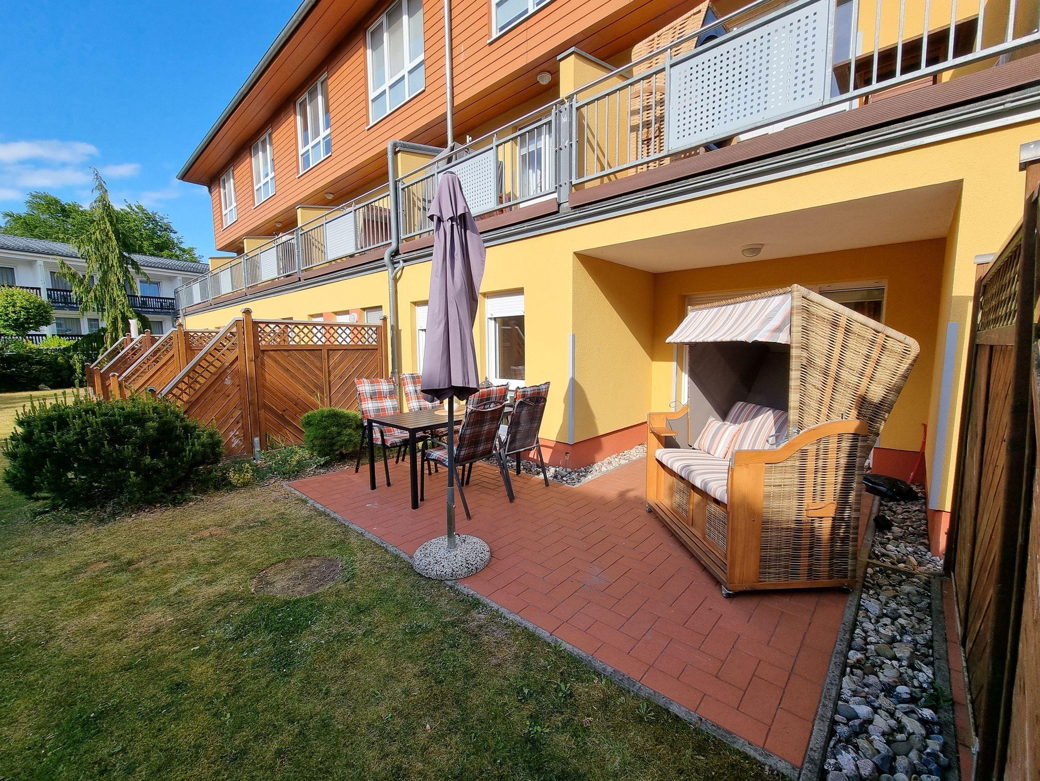 1 Terrasse mit Garten, Strandkorb & Gartenmöbel