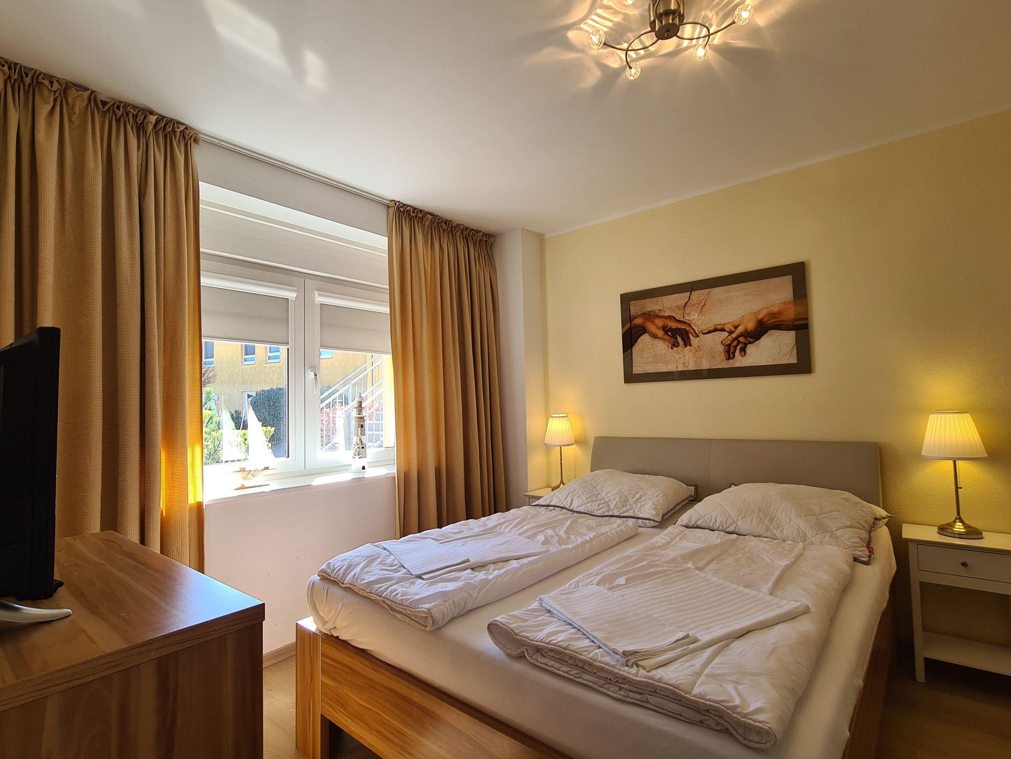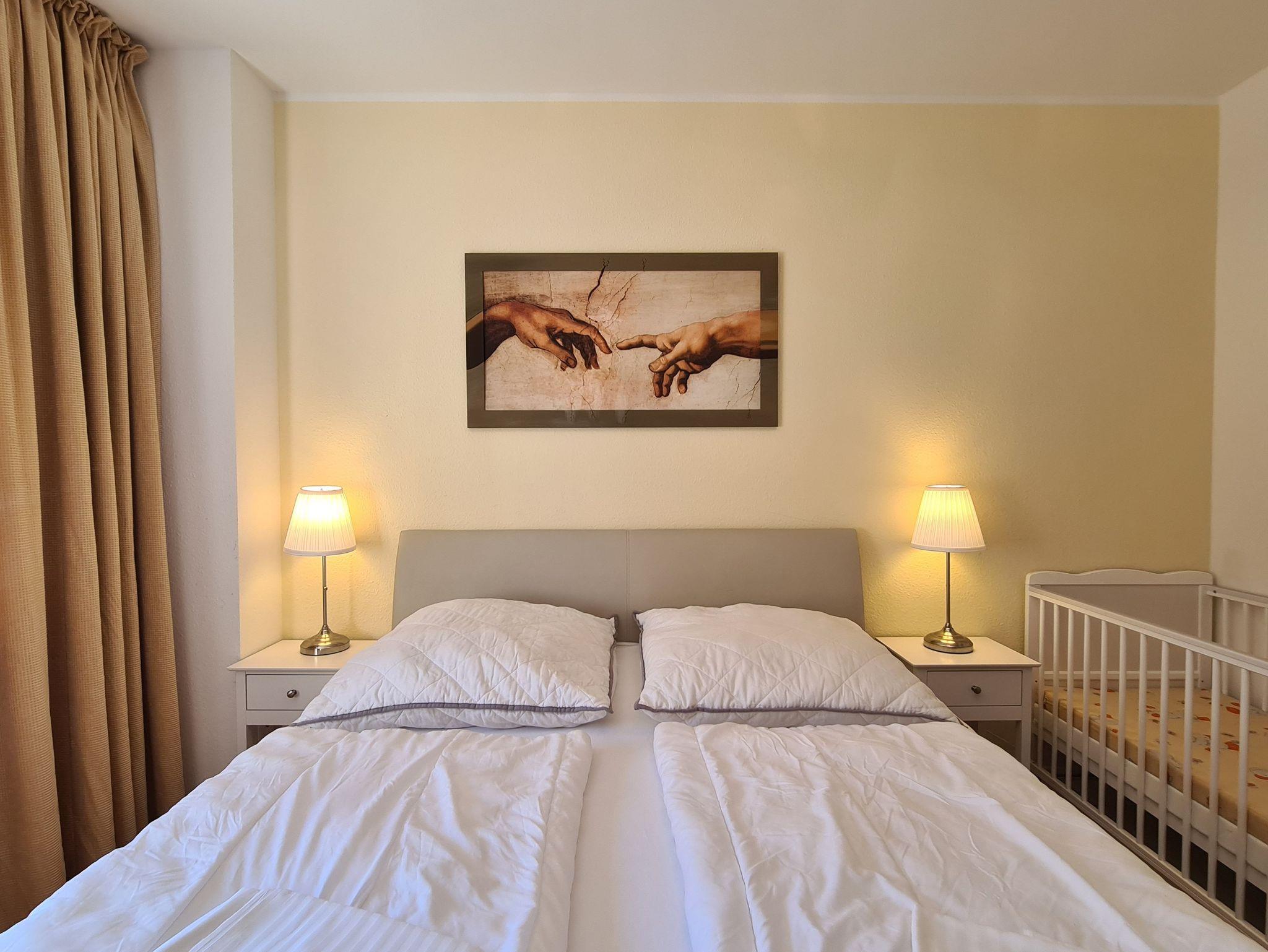 1 Schlafzimmer mit Doppelbett (2m x 1,60m) & Flachbild-TV