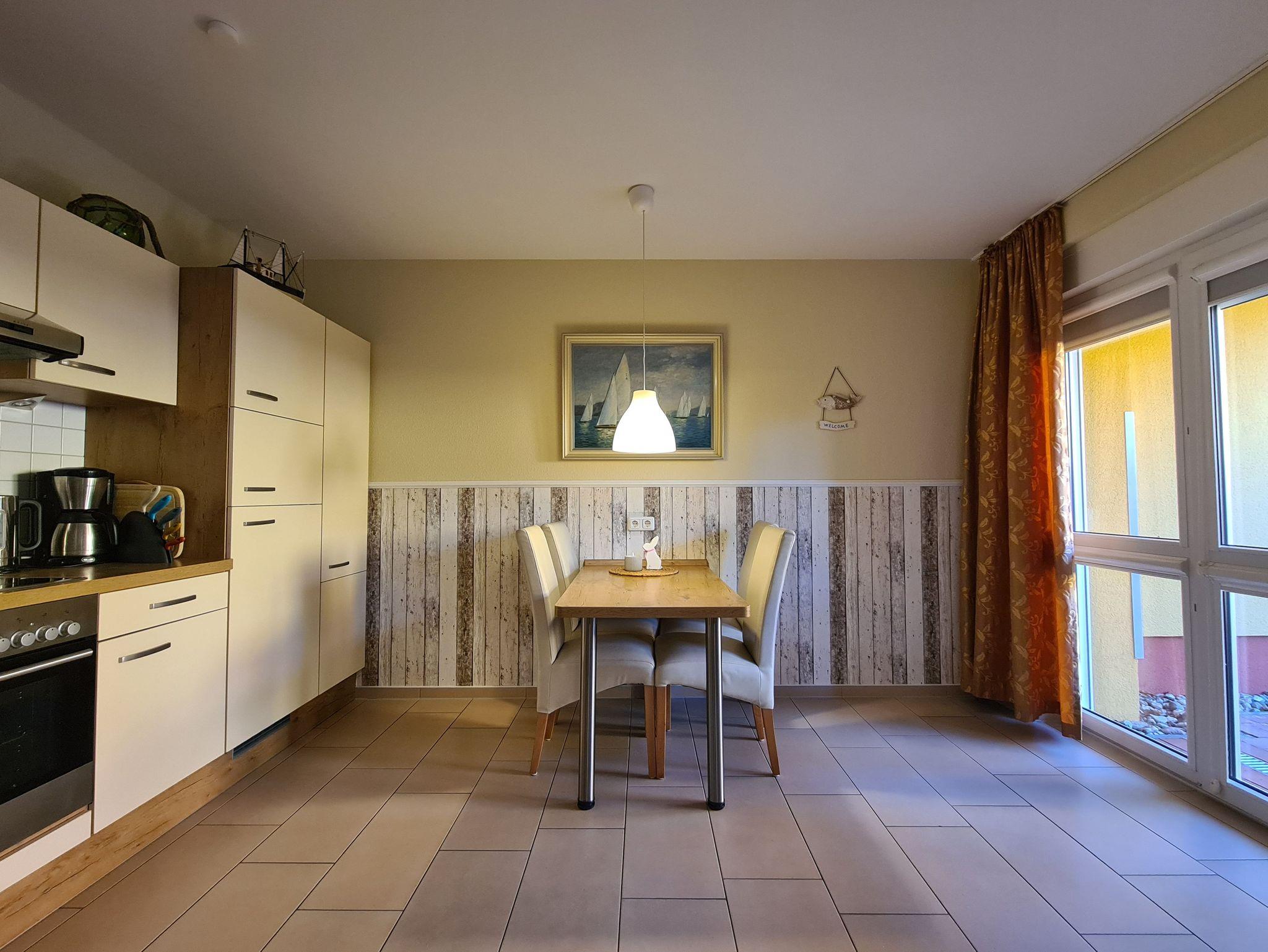 Exklusive Erdgeschoßwohnung „Wanderdüne“ mit großer Terrasse, eigener Garten von 67m² und PKW Stellplatz. Die Wohnung ist hochwertig eingerichtet mit Fußbodenheizung, Strandkorb, TV, DVD-Player, Radio, Terrassenmöbel, Einbauküche mit Ceranherd, Backofen, Kühlschrank, Tiefkühlfach, Gläser, Besteck und Geschirr. Dem Wohnzimmer schließt ein separt gestalteter Erker an.