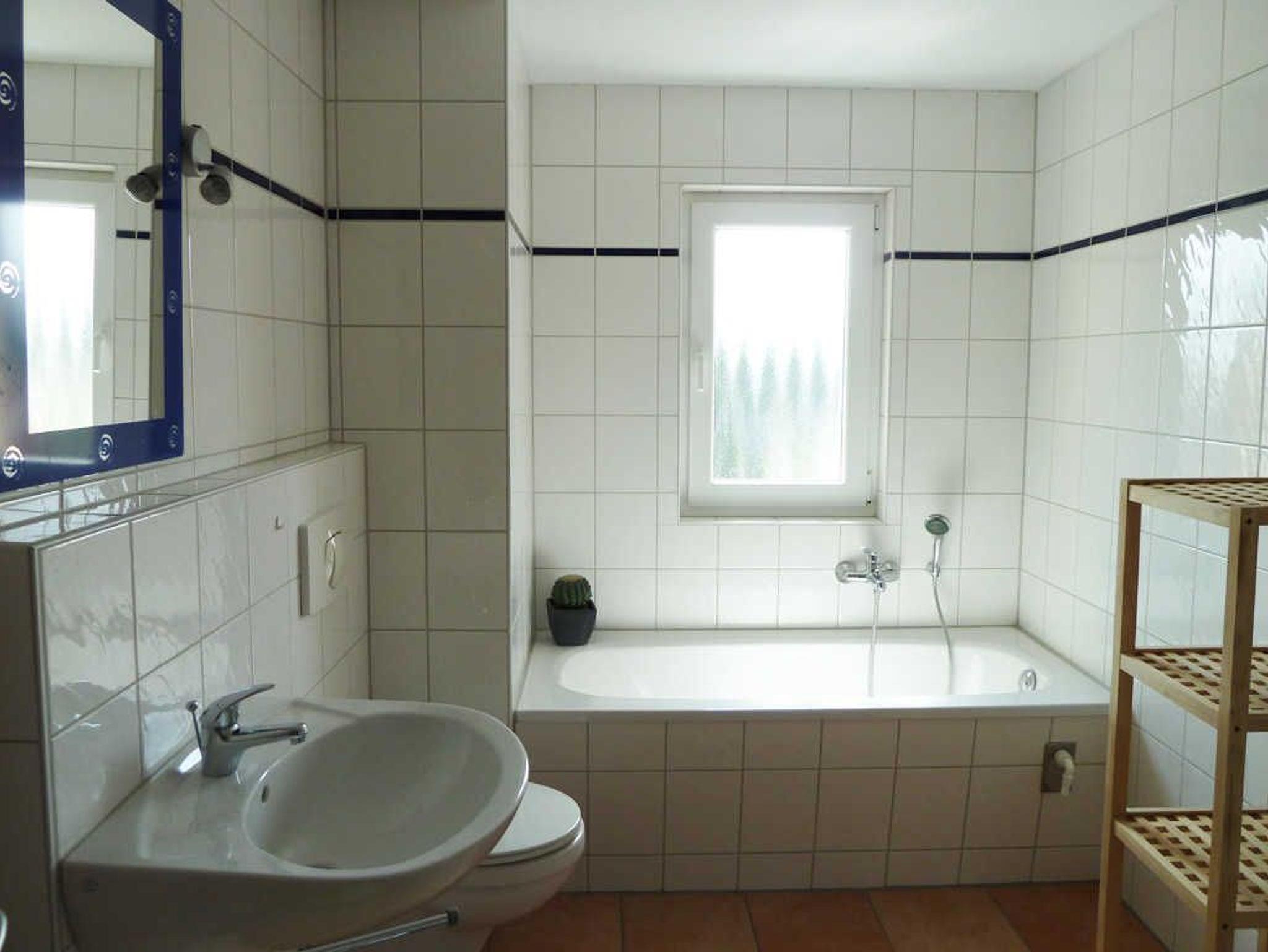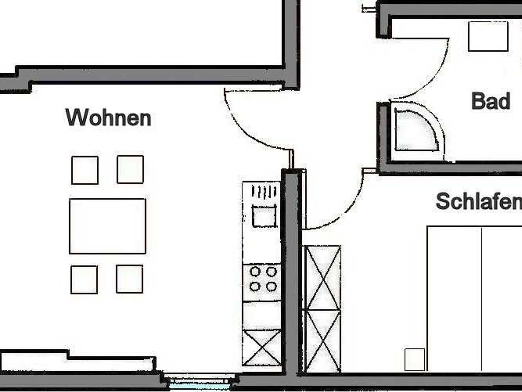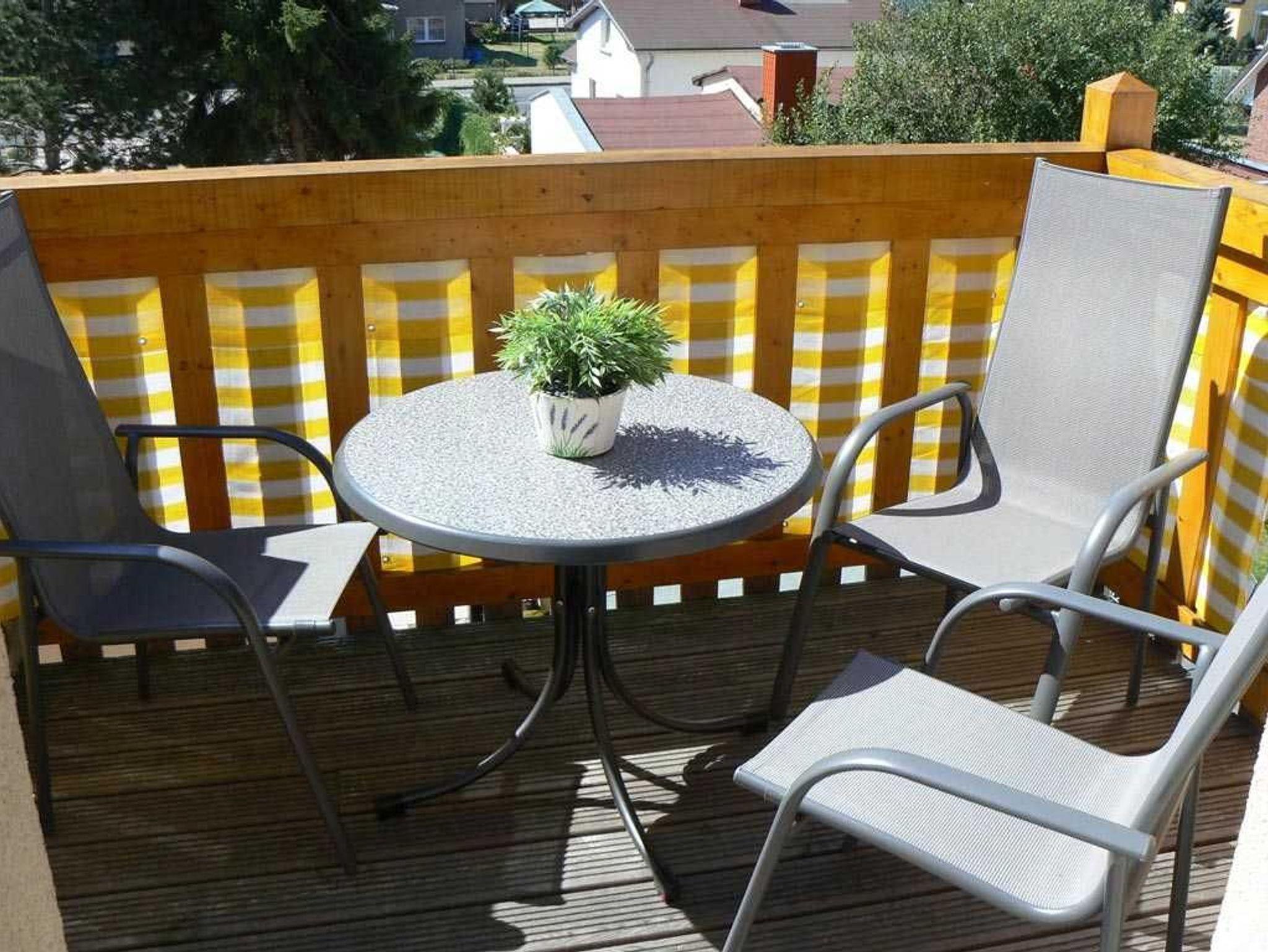 Im Wohnbereich steht Ihnen eine Sitzgruppe, ein Sessel sowie eine Leselampe für gemütliche Schmöckerstunden zur Verfügung. Natürlich hat die Wohnung auch einen Fernseher. Eine großes Fensterfront im Wohnzimmer bietet Ihnen einen Blick auf den Wald. Die Wohnung besitzt einen Südbalkon, der mit Möbeln ausgestattet ist. Hier können Sie die Sonne genießen.