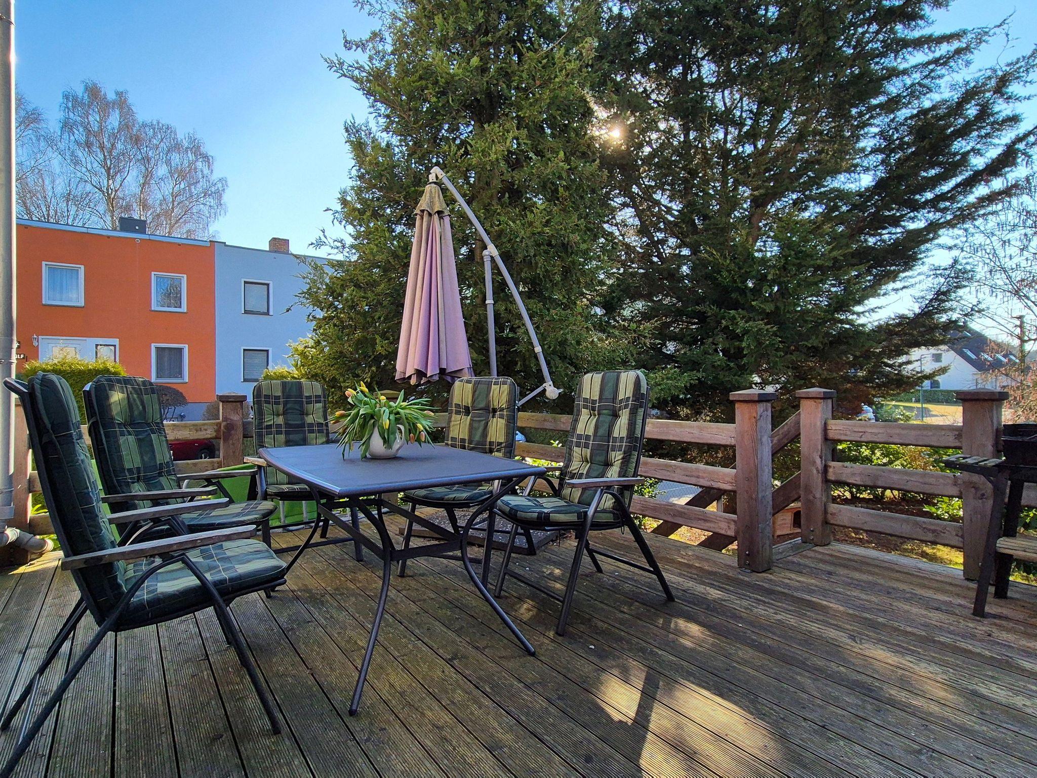 • nach Westen ausgerichtete Terrasse mit Möbeln