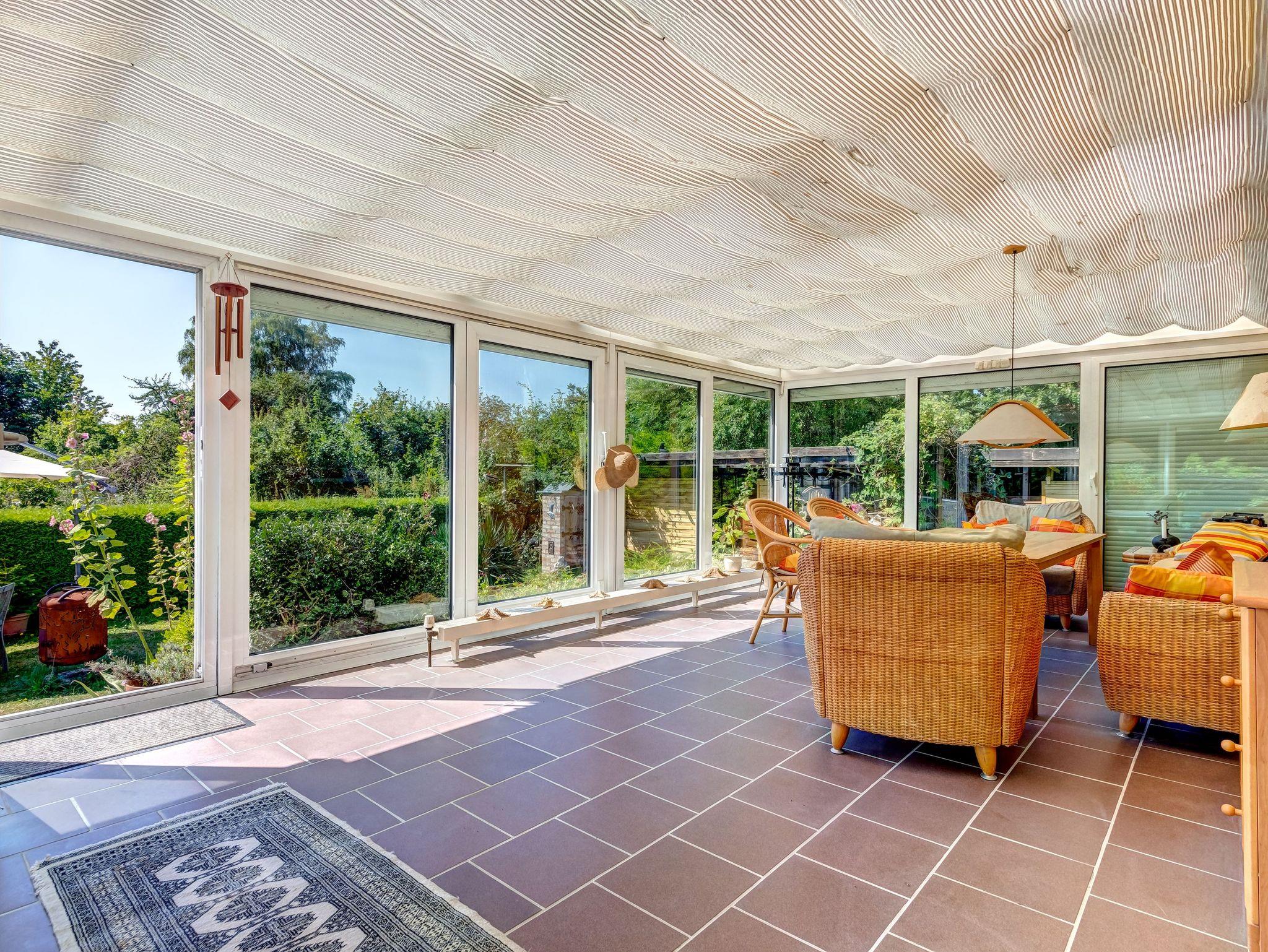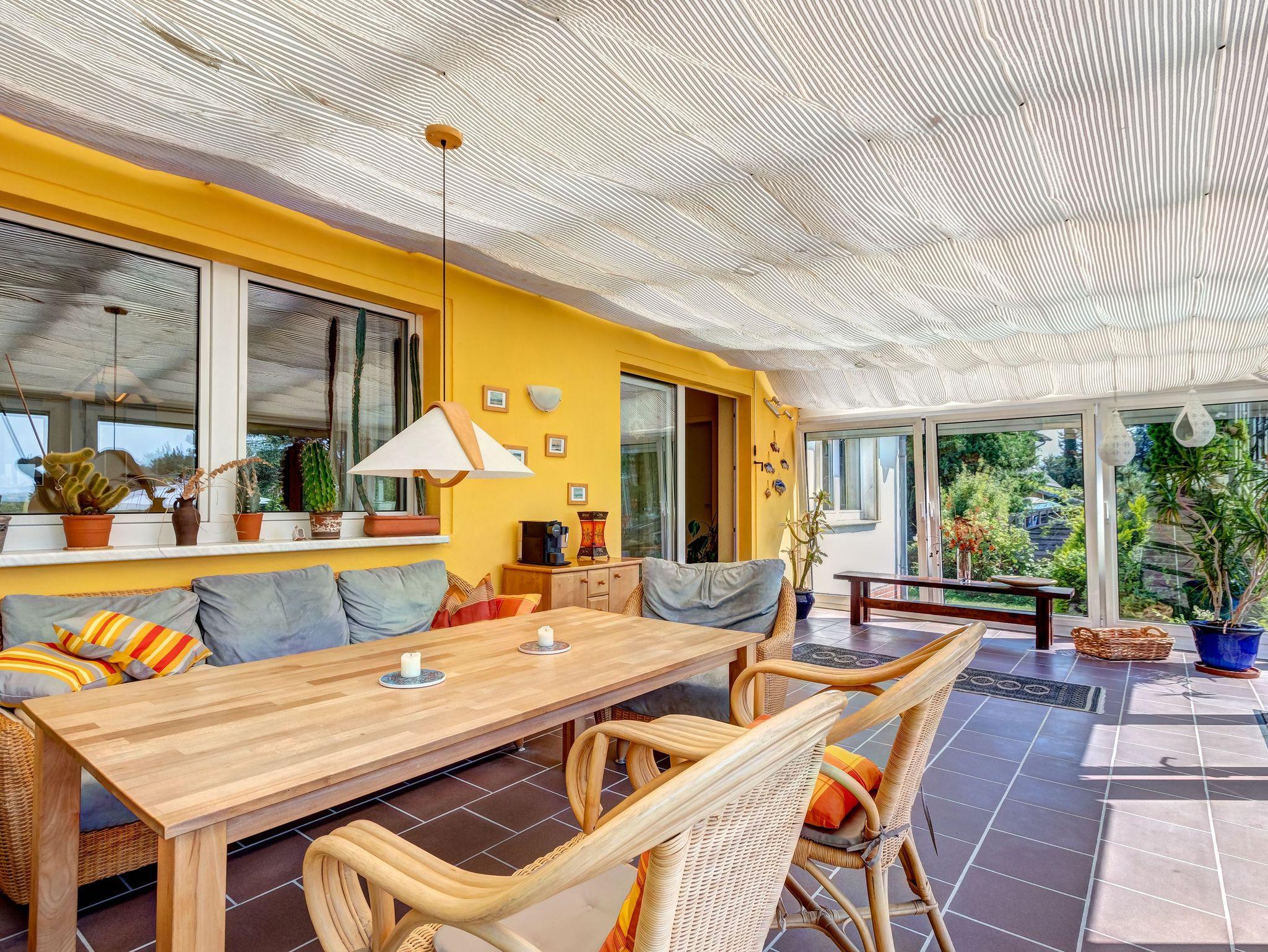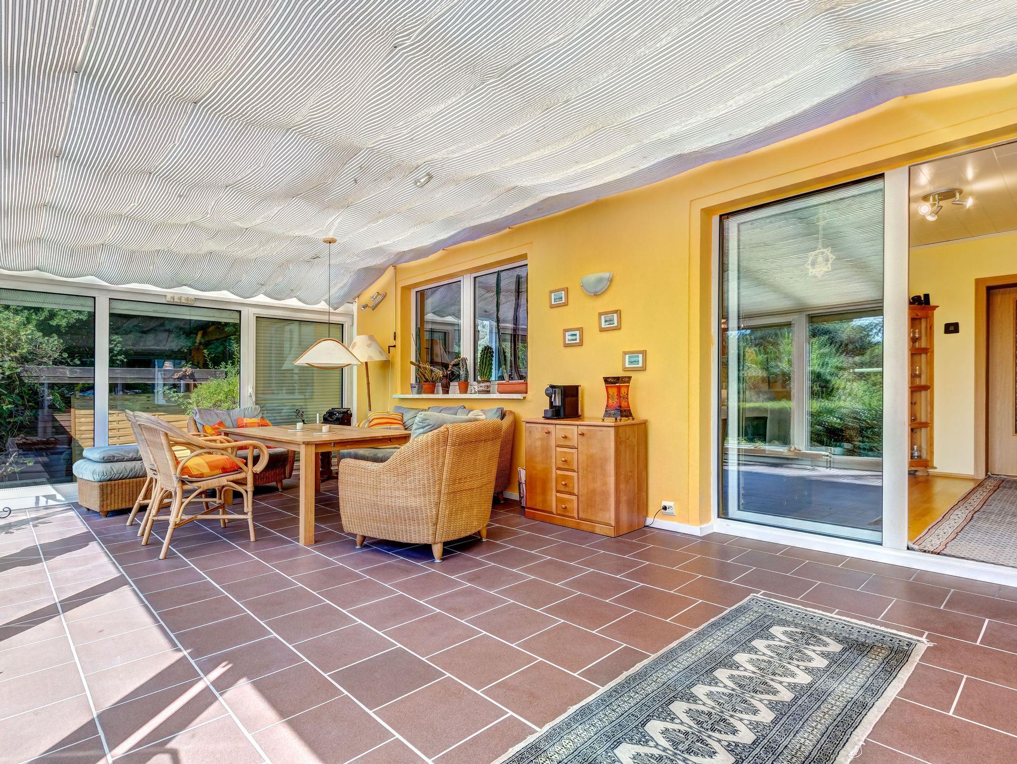 Der Wintergarten ist der ideale Ort, um Ihre Mahlzeiten zu genießen! Die großen Korbmöbel, Couch und Sessel bieten ausreichend Platz und einen spektakulären Blick auf das Achterwasser. Die Fenster können mit elektronischen Rollos beschattet werden, sodass Sie jederzeit den perfekten Komfort genießen können.
