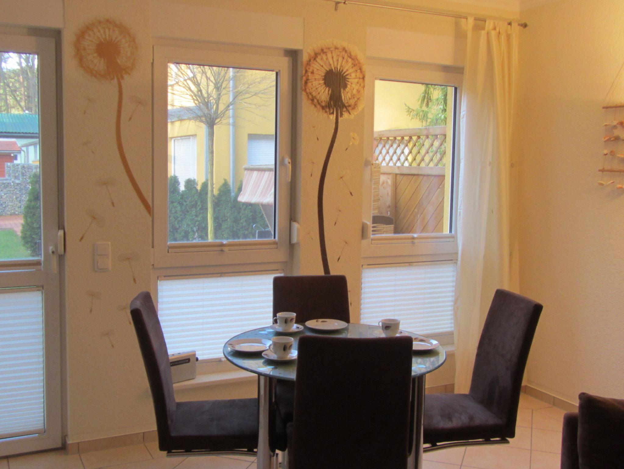 Moderne Erdgeschoßwohnung mit großer Terrasse, eigener Gartenanteil von 44m² und PKW Stellplatz. Die Wohnung ist modern eingerichtet mit Fußbodenheizung, TV, Terrassenmöbel, Einbauküche mit Ceranherd, Backofen, Tiefkühlfach, Gläser, Besteck und Geschirr. Für die kleinen Gäste steht ein Kinderreisebett und ein Hochstuhl kostenfrei zur Verfügung.