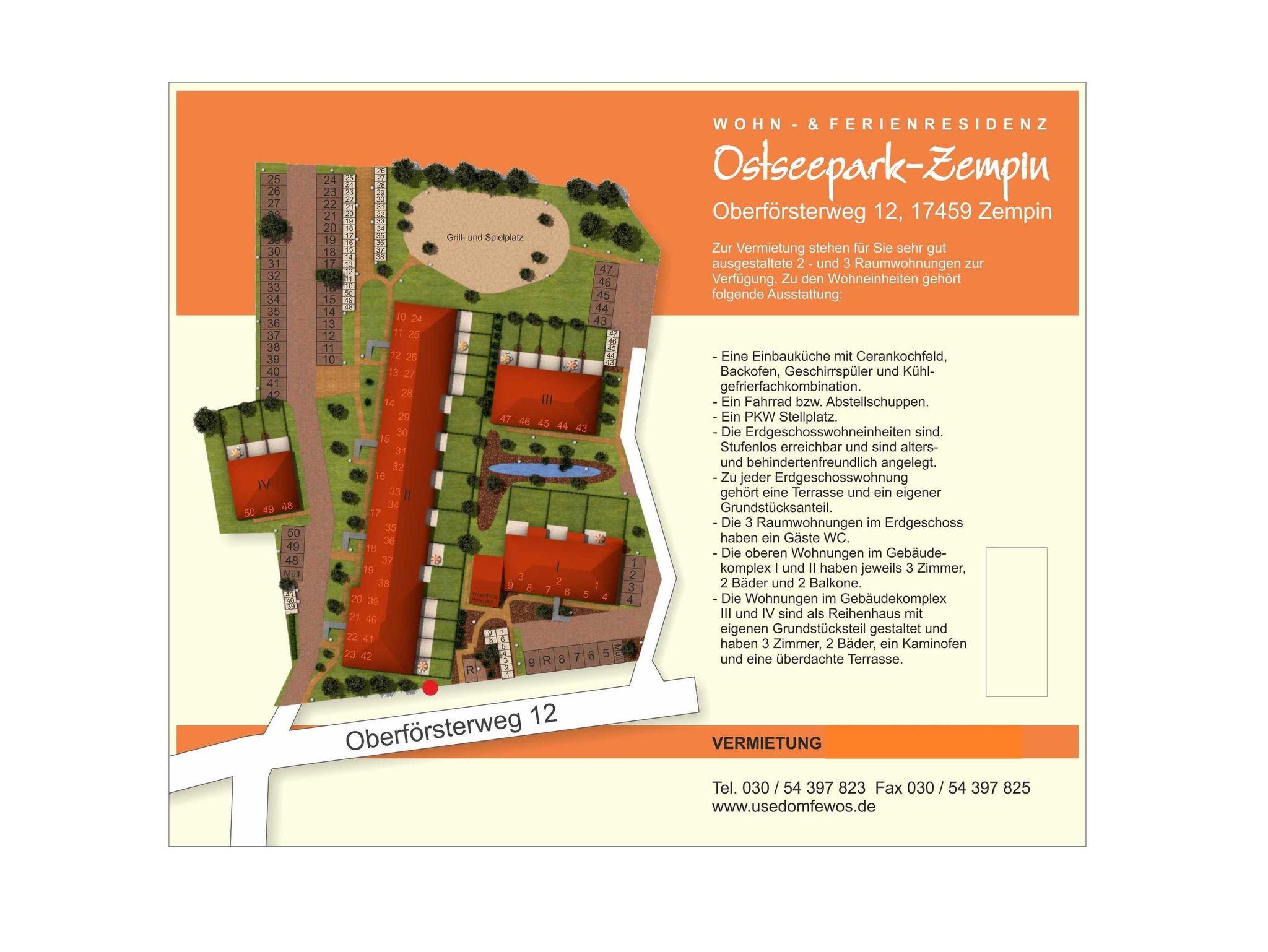 Die Ferienresidenz Ostseepark- Zempin liegt idyllisch hinter den Dünen in dem malerischen Ostseebad Zempin. Die Ferienwohnung wird ganzjährig für max. 3 Personen und ein Kleinkind vermietet. Die neu eingerichtete Ferienwohnung mit einer Größe von 51m² lädt mit ihrem gemütlichen Ambiente und der Terrasse zum Wohl fühlen ein. Hier kann man den Alltagsstress abschalten und sich in angenehmer Atmosphäre wohl fühlen. Für Familien mit Kindern ist gesorgt, ein schöner Spielplatz befindet sich innerhalb der Anlage. Auf dem Gelände befindet sich ein gemeinschaftlicher Grillplatz der genutzt werden kann sowie ein gemeinschaftlicher Wasch- und Trockenraum mit 2 Waschmaschinen und 1 Trockner (gegen Gebühr).