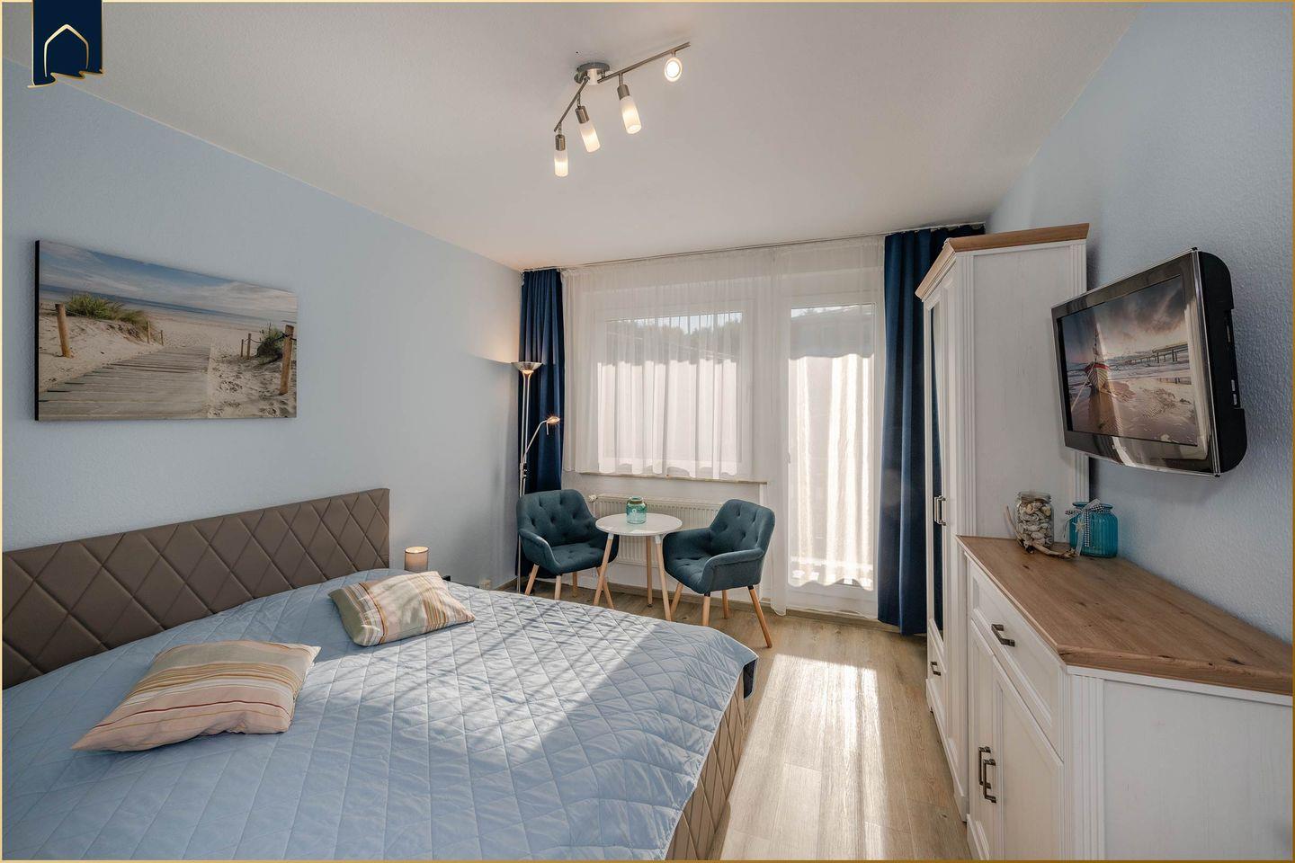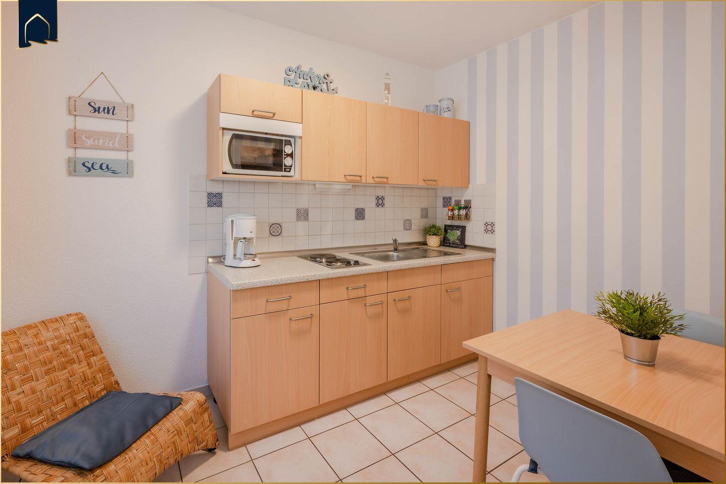 Die 32?m² große Wohnung eignet sich ideal für Paare oder Alleinreisende. Sie verfügt über ein separates Schlafzimmer mit gemütlichem Doppelbett, ein modernes Bad mit Dusche und WC sowie einen offenen Wohnbereich mit gut ausgestatteter Küche. Die überdachte Terrasse bzw. der Balkon lädt zu entspannten Stunden bei frischer Meeresluft ein. Ein privater Parkplatz auf dem abgeschlossenen Grundstück sorgt für sorgenfreies Ankommen.