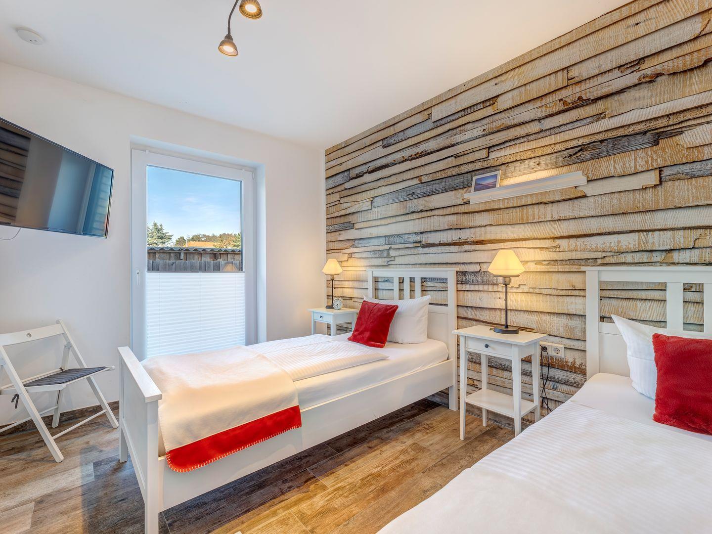 Jedes Zimmer bietet entweder ein Doppelbett oder zwei Einzelbetten, sodass Platz für bis zu 8 Erwachsene besteht.