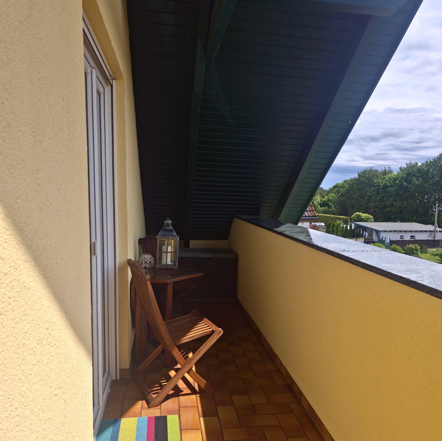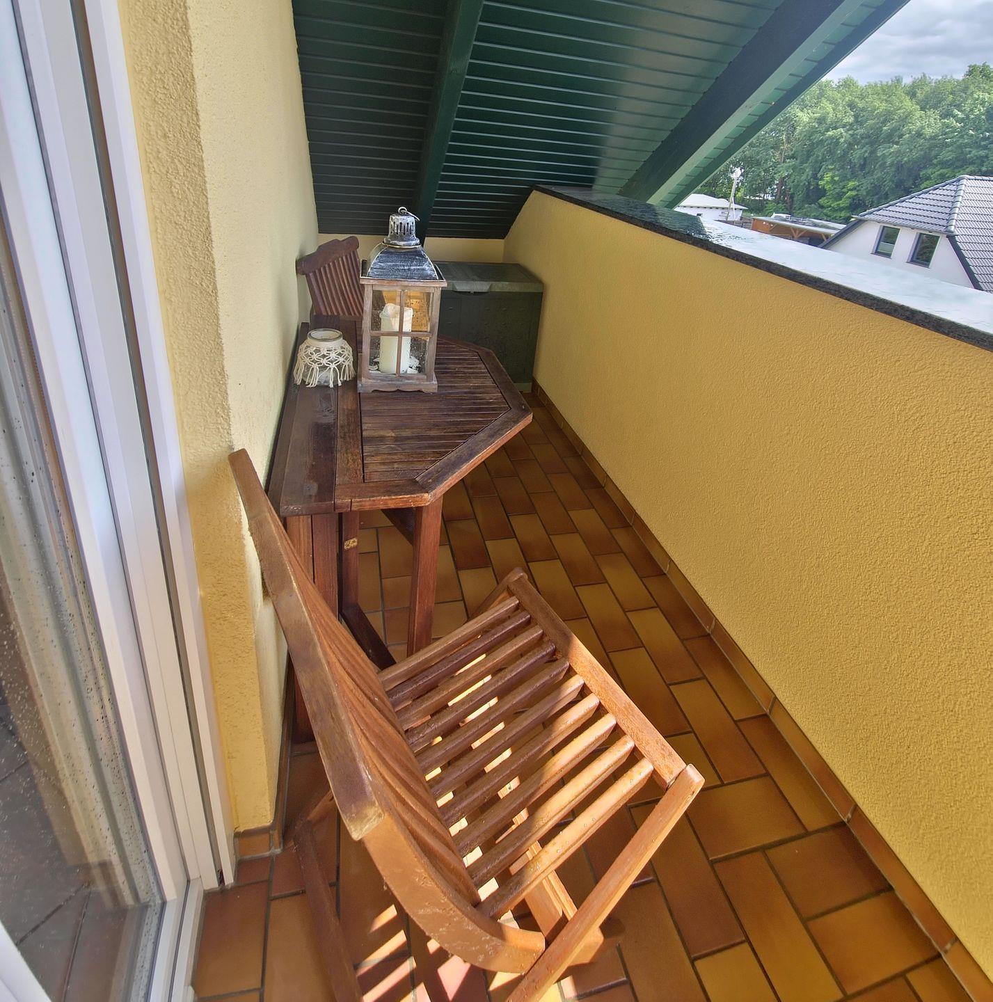 - **Wohnbereich:** Der große Esstisch und die gemütliche Eckcouch laden zum Verweilen ein. Für entspannte Stunden auf dem Balkon stehen bequeme Balkonmöbel bereit.