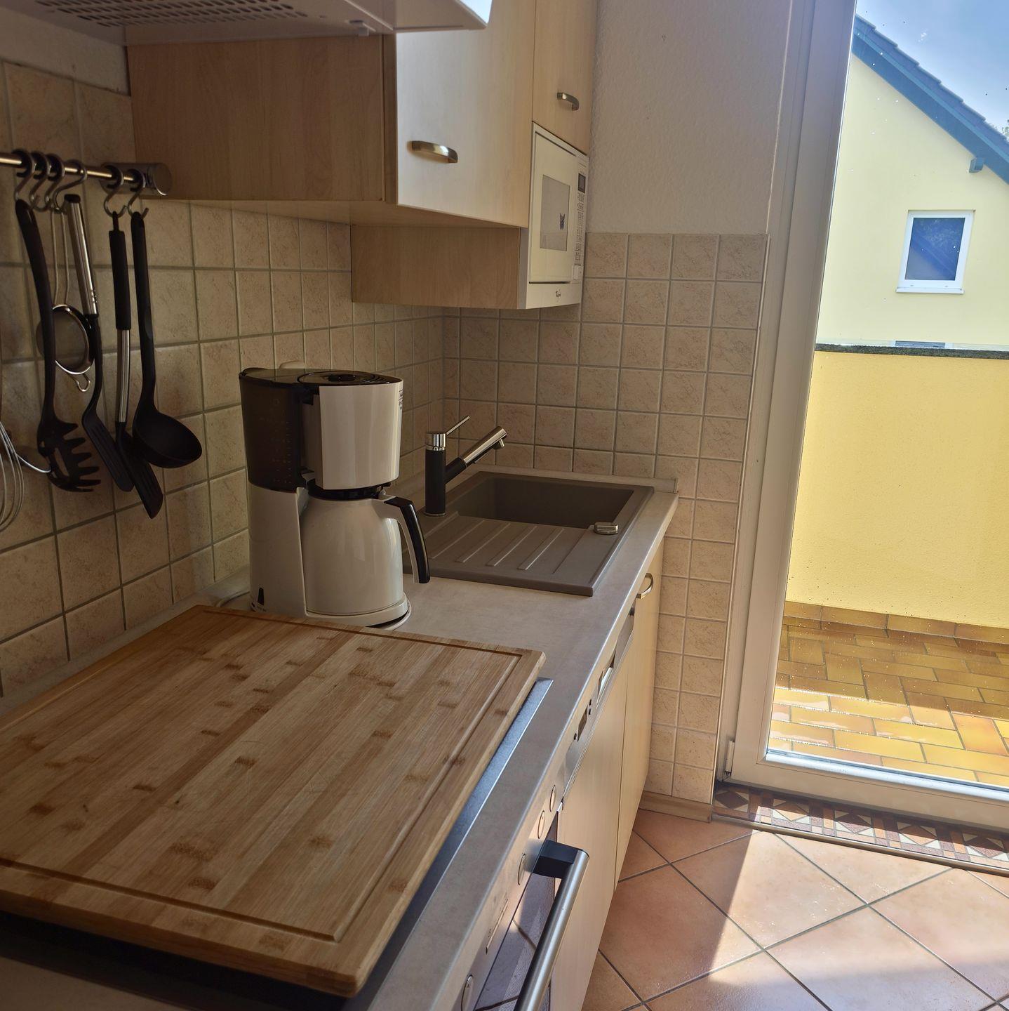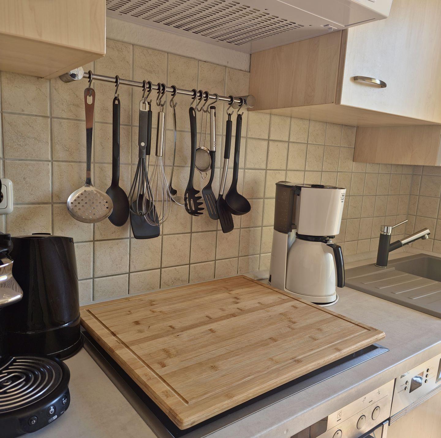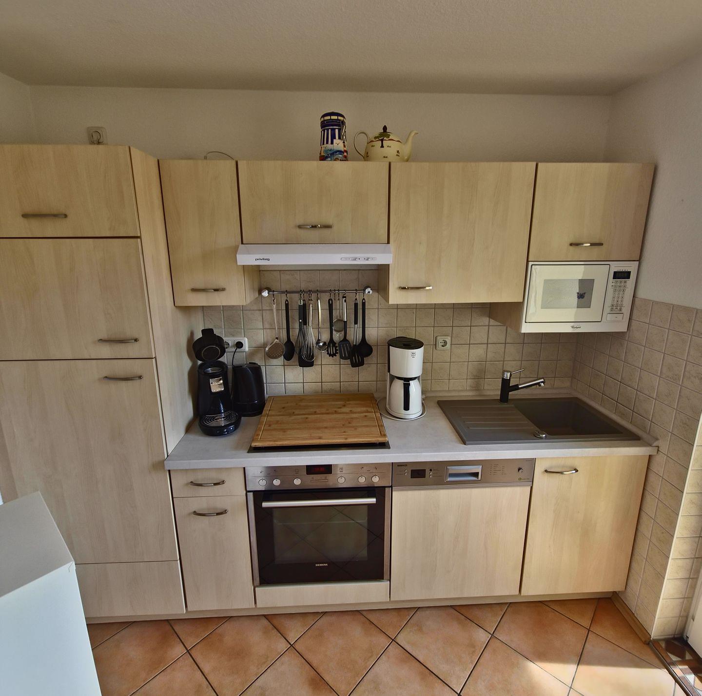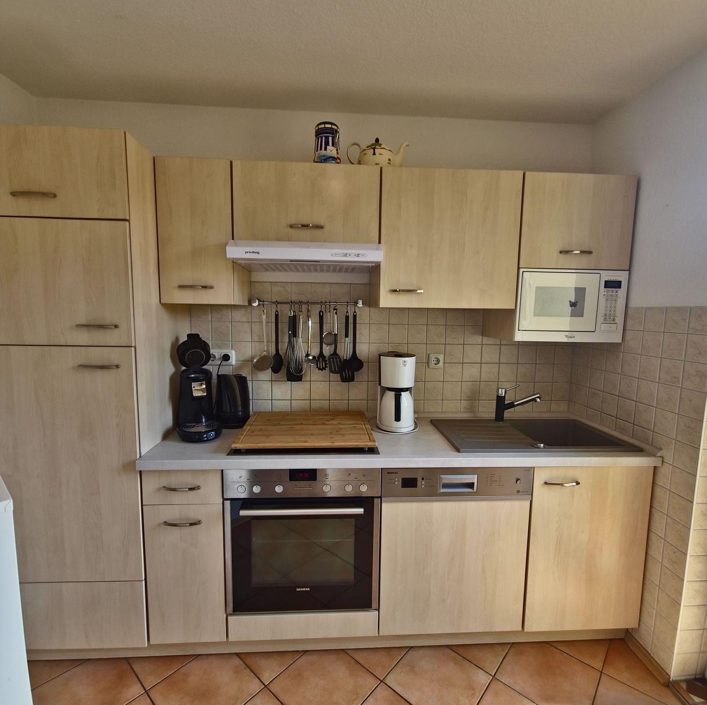 - **Küche:** Genießen Sie das Kochen in einer voll ausgestatteten Küche mit Geschirrspüler, Mikrowelle, Kaffeemaschine und Eierkocher. Hier finden Sie alles, um Ihre Lieblingsgerichte zuzubereiten.