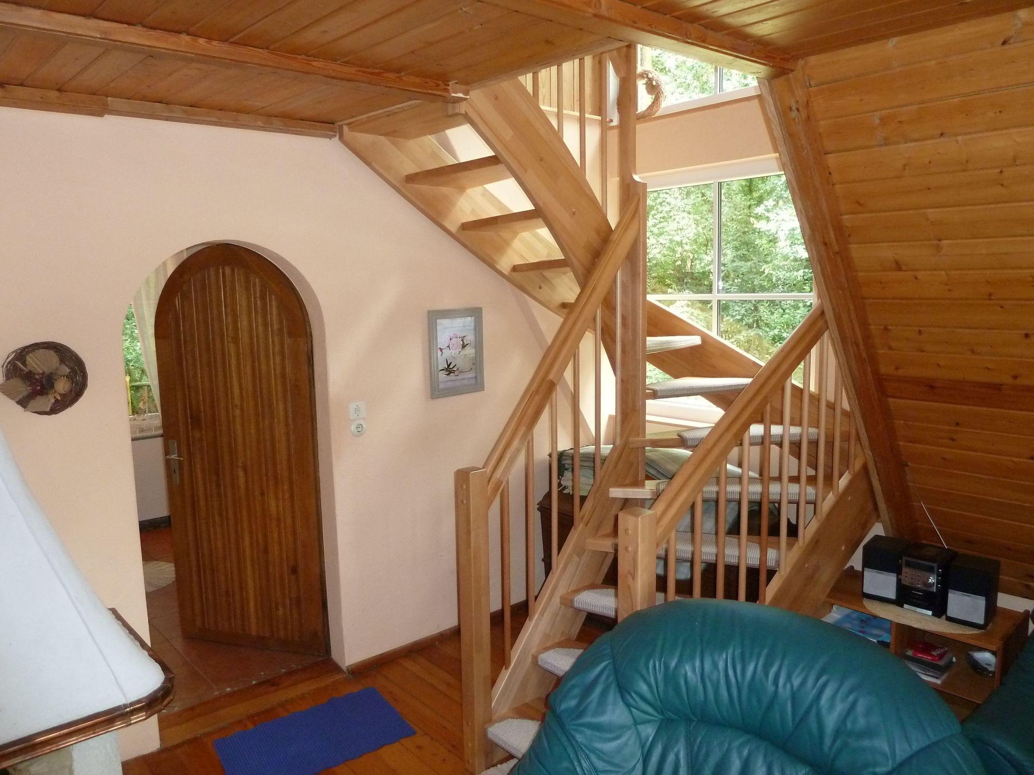 The terrace provides garden furniture, a parasol and two garden loungers. The site (ca. 2500m²) is fenced and therefore also suitable for children and dogs. The forest behind it (ca. 1.5 hectares) belongs to the owners and can be used by children as an adventure playground.