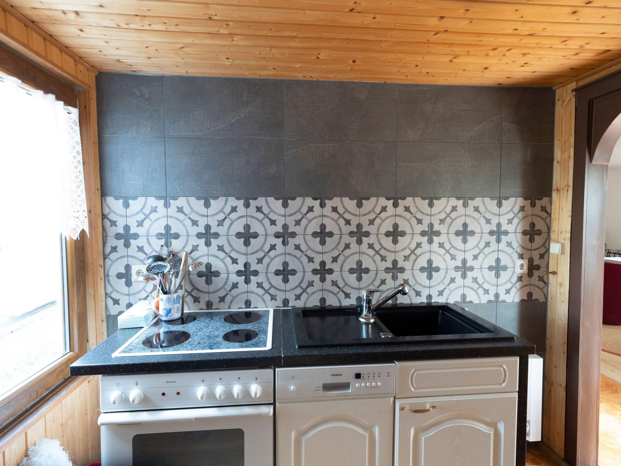 Facilities: - approx. 65 m² living space, plot approx. 600 m², with forest behind approx. 2 ha, - 1 kitchen (fully equipped, incl. dishwasher) - 1 bathroom (shower, WC) - 1 living room with fireplace and sofa bed - 2 bedrooms (2 beds each, extra bed possible) - 1 terrace - 1 carport - 1 shed