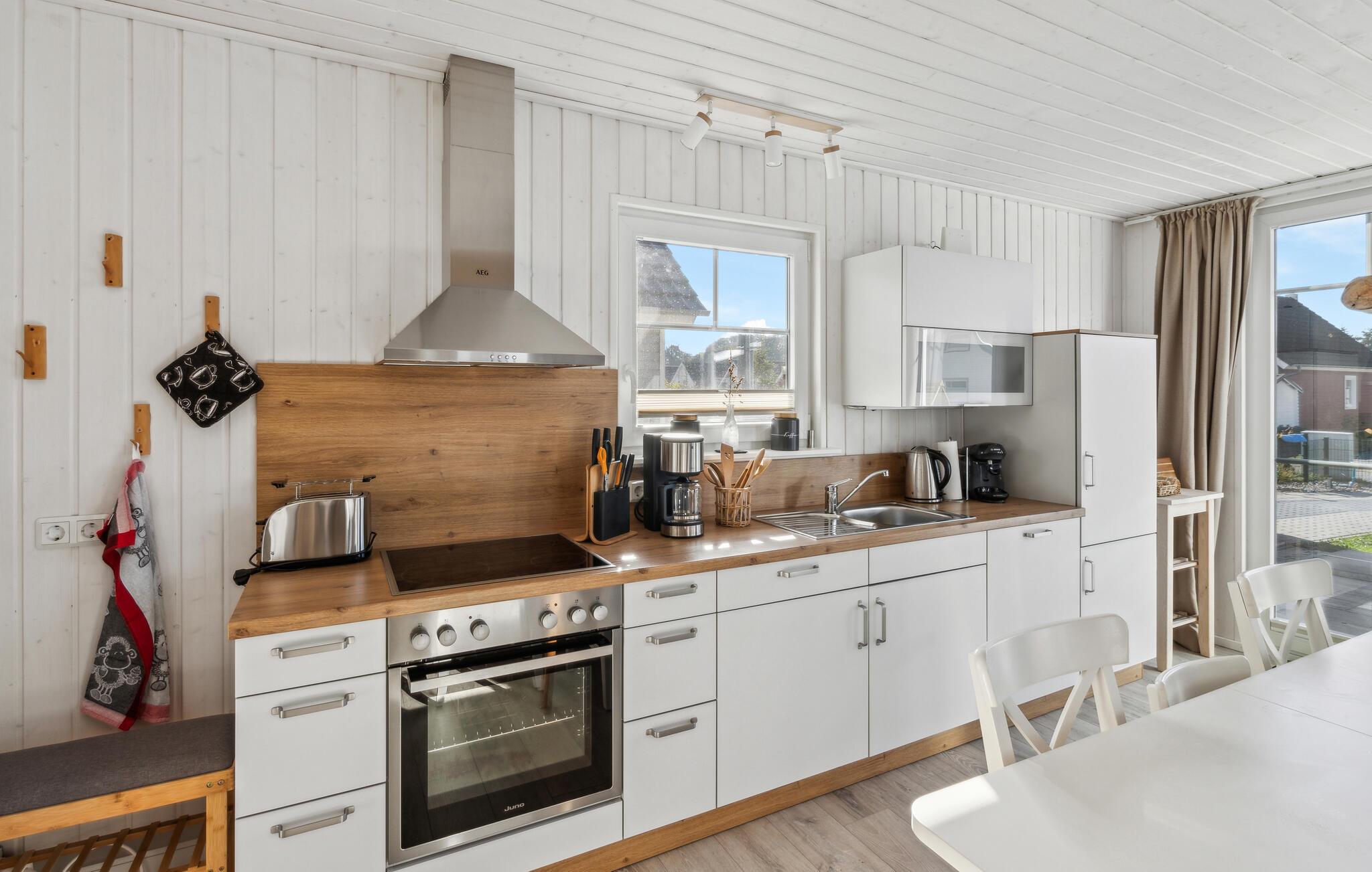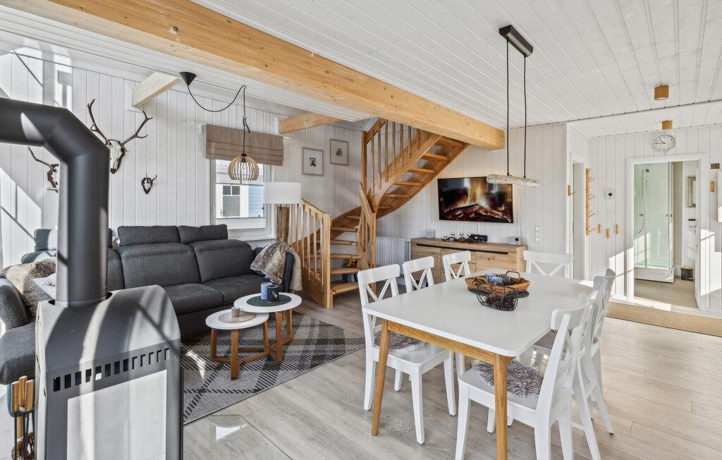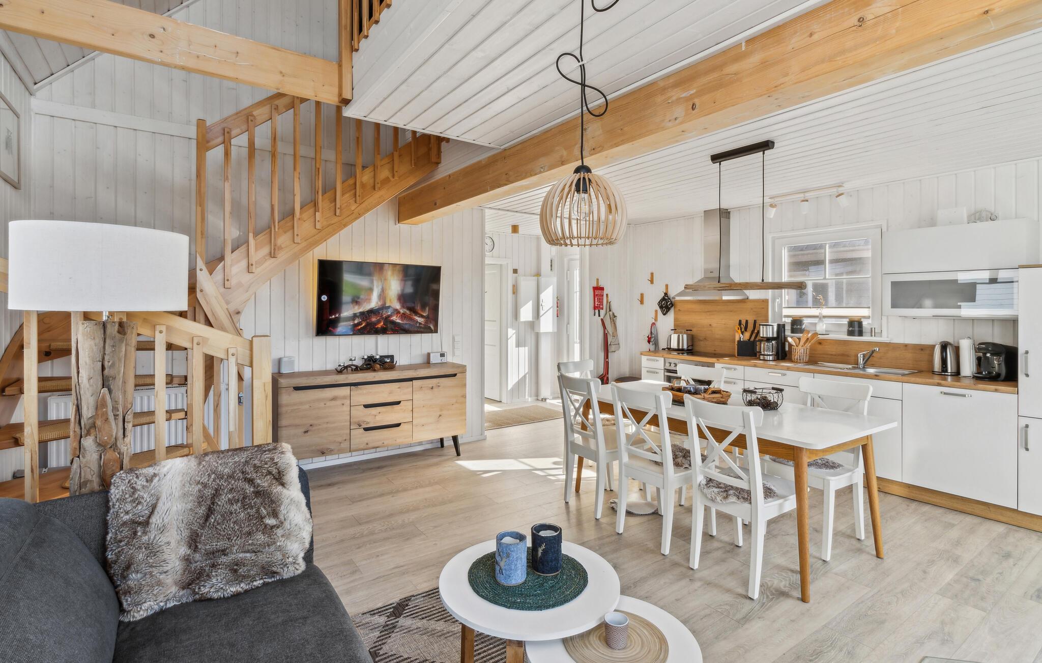 Velkommen til dette charmerende træhus i moderne skovfogedstil, møbleret med stor sans for detaljer og ideelt for børnefamilier, par og pensionister, der søger fred og ro. Her finder I en perfekt blanding af komfort og moderne bekvemmeligheder, ideelt til en afslappende pause i naturen. Tilbring hyggelige aftener i den indbydende sofa med en hyggelig knitrende ild i pejsen efter jeres udflugter i området. Alt er klar til en hyggelig filmaften med et glas vin eller en varm kop te.