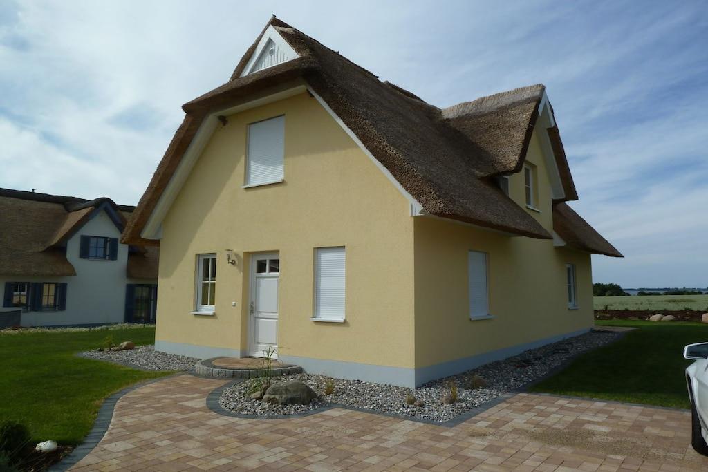 Kære gæster, vores feriehus er på 97 m². Dette stråtagshus i Zierow nær Wismar blev bygget i 2015 og tilbyder moderne bekvemmeligheder, gratis Wi-Fi og direkte havudsigt. Det har 3 soveværelser og 2 badeværelser og tilbyder optimal komfort til 6 personer. Stråtagets hus tilbyder direkte, uhindret udsigt over Østersøen, øen Poel og Wismarbugten over markerne. Den store, smukke have omkring det giver dig mulighed for at slappe af på en liggestol, og børnene har masser af plads til at lege. På to terrasser kan du nyde solen hele dagen lang i en strandstol eller på komfortable havemøbler. Et stort haveskur huser en trækvogn og en elektrisk grill til hyggelige grillaftener. Der er også to rummelige parkeringspladser på grunden.