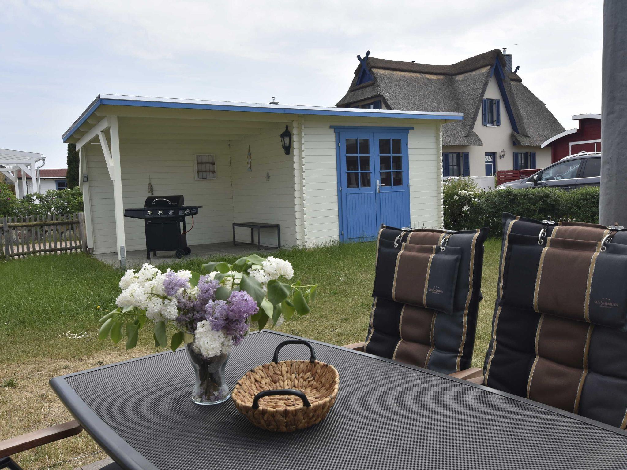 Geniessen Sie bei gutem Wetter die Terrasse mit Terrassenmöbeln und Sonnenschirm und angrenzenden großen Garten. Hier können Sie den Gasgrill für ein BBQ nutzen.