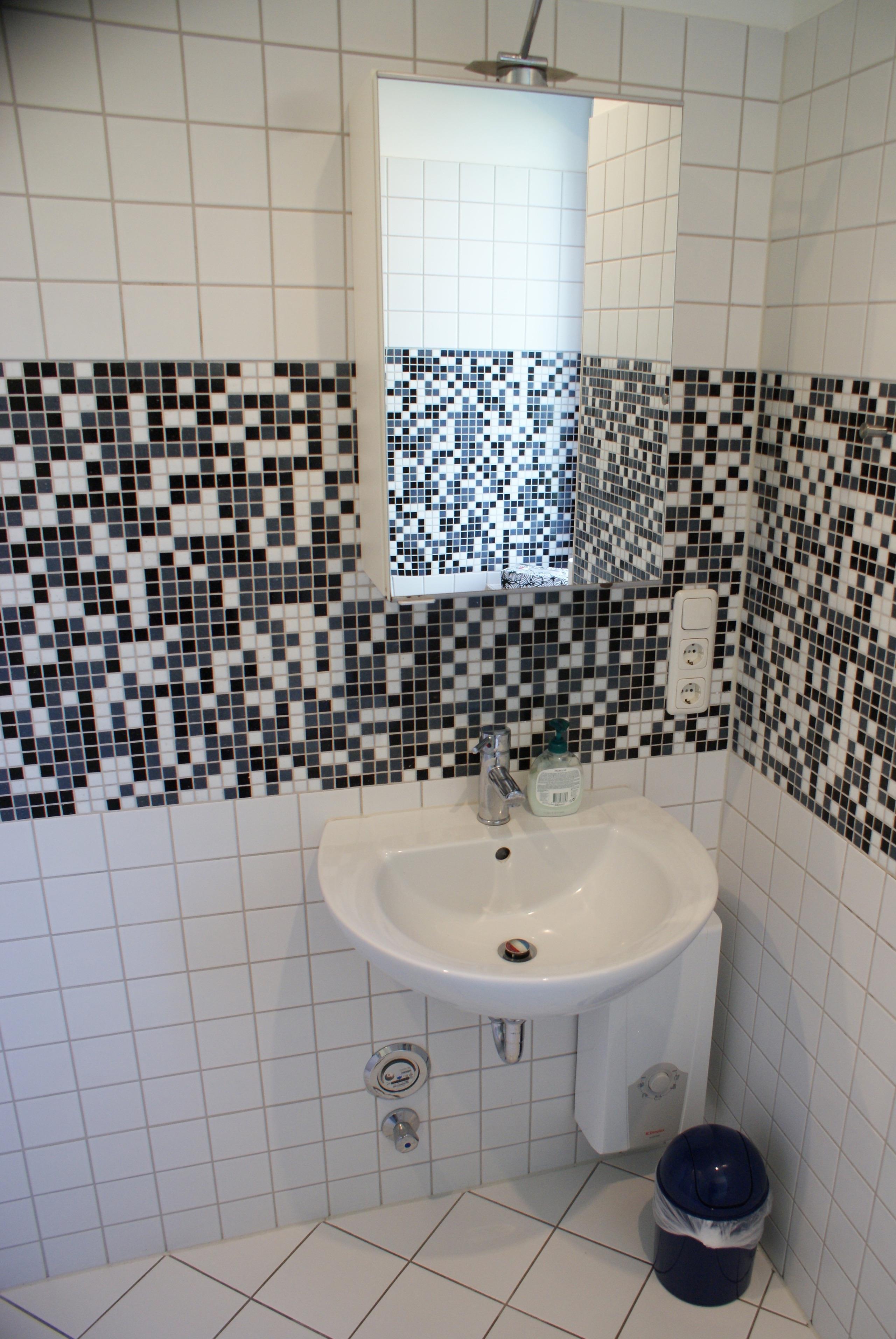 - Duschbad mit Dusche, WC, Spiegel und Föhn