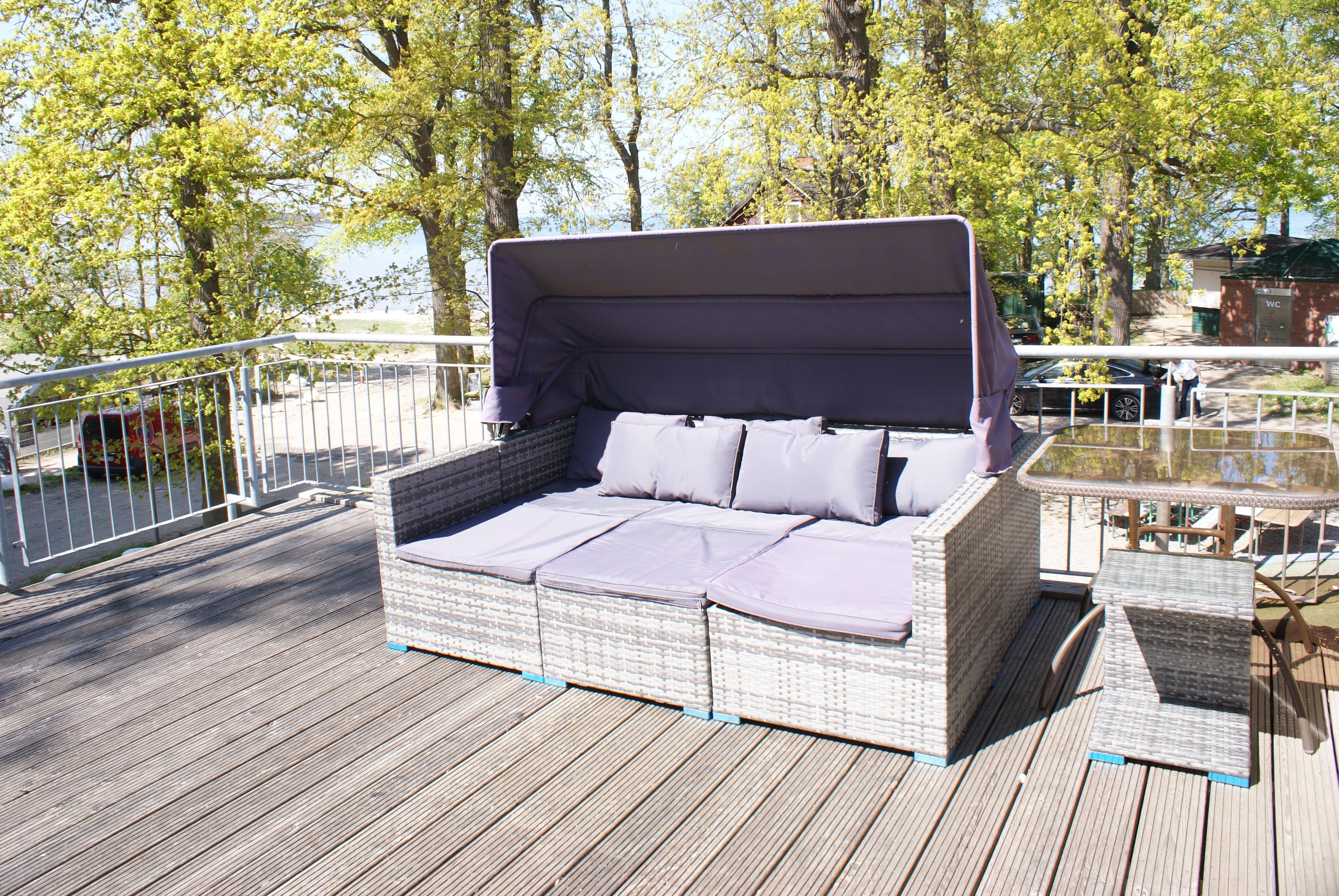 - große Dachterrasse mit Loungemöbel und Meerblick