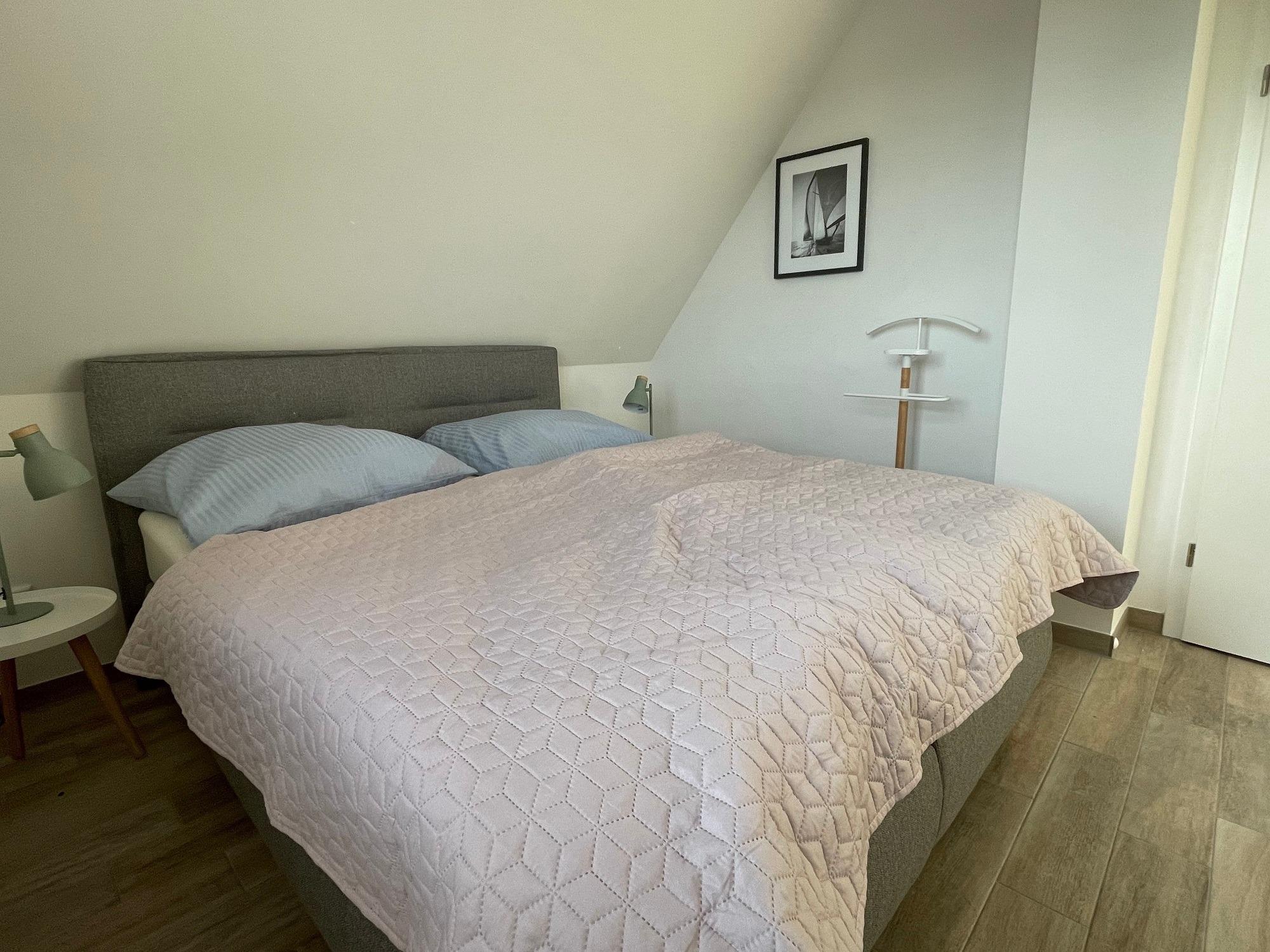 Im oberen Bereich stehen Ihnen zwei Schlafzimmer mit je einem Boxspringbett zur Verfügung.[nbsp] Im 2. Schlafzimmer befindet sich noch ein weiteres Einzelbett. Jedes Schlafzimmer ist mit ausreichend Ablagemöglichkeiten für Kleidung, Kommoden und bequemen Sitzgelegenheiten ausgestattet.