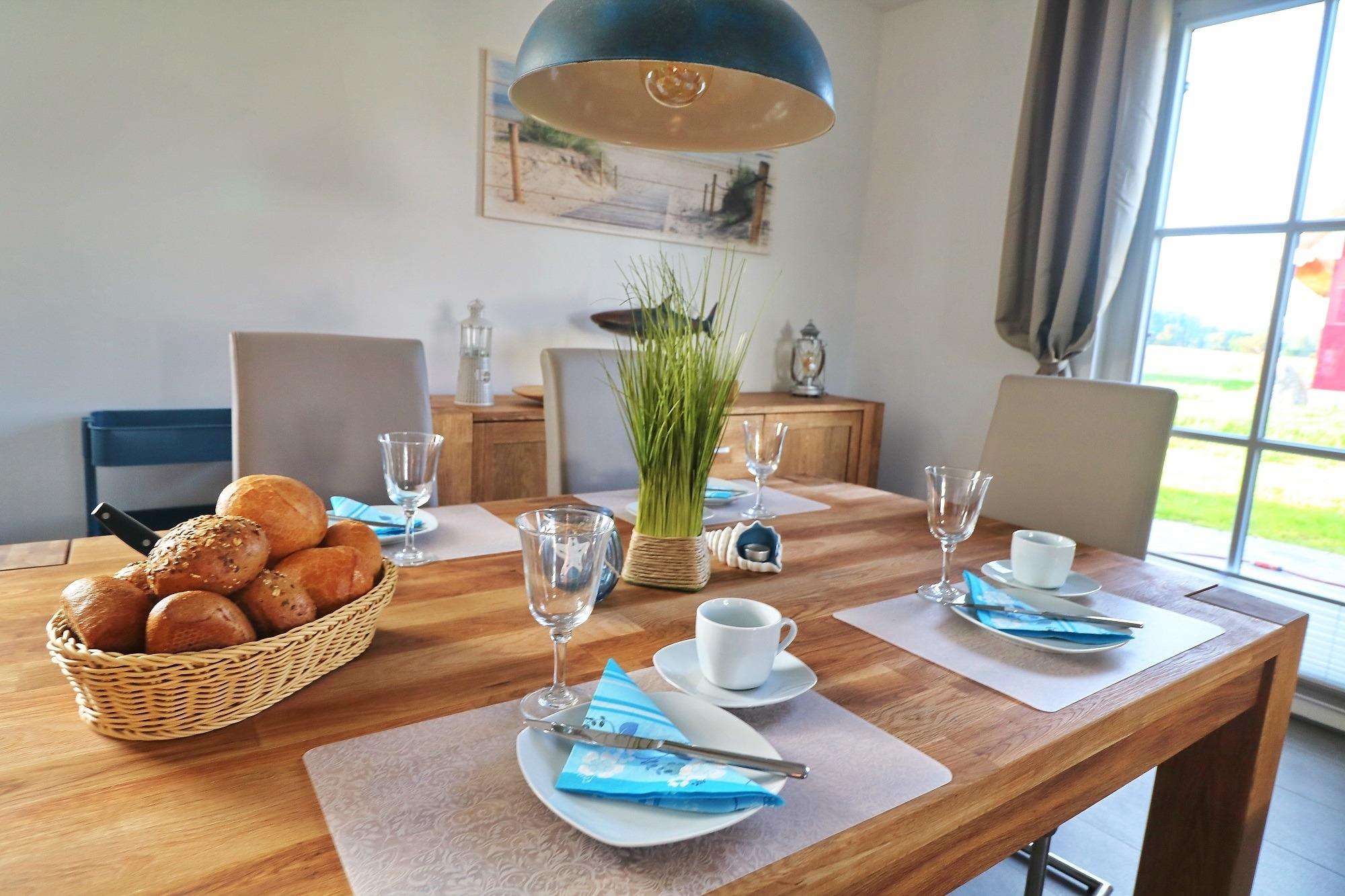 Im großen Wohn- und Essbereich befindet sich die modern ausgestattete integrierte Küche, der Essbereich und die Sofalandschaft direkt am Kamin. Eine Fußbodenheizung ist im gesamten Haus verlegt. An kalten Tagen können Sie nach einem langen Spaziergang oder Radtour in der Sauna mit Wellnessdusche relaxen. Ein Gäste-WC mit Tageslicht befindet sich ebenfalls im Erdgeschoss. Der Hauswirtschaftsraum ist mit einem Waschtrockner ausgestattet.