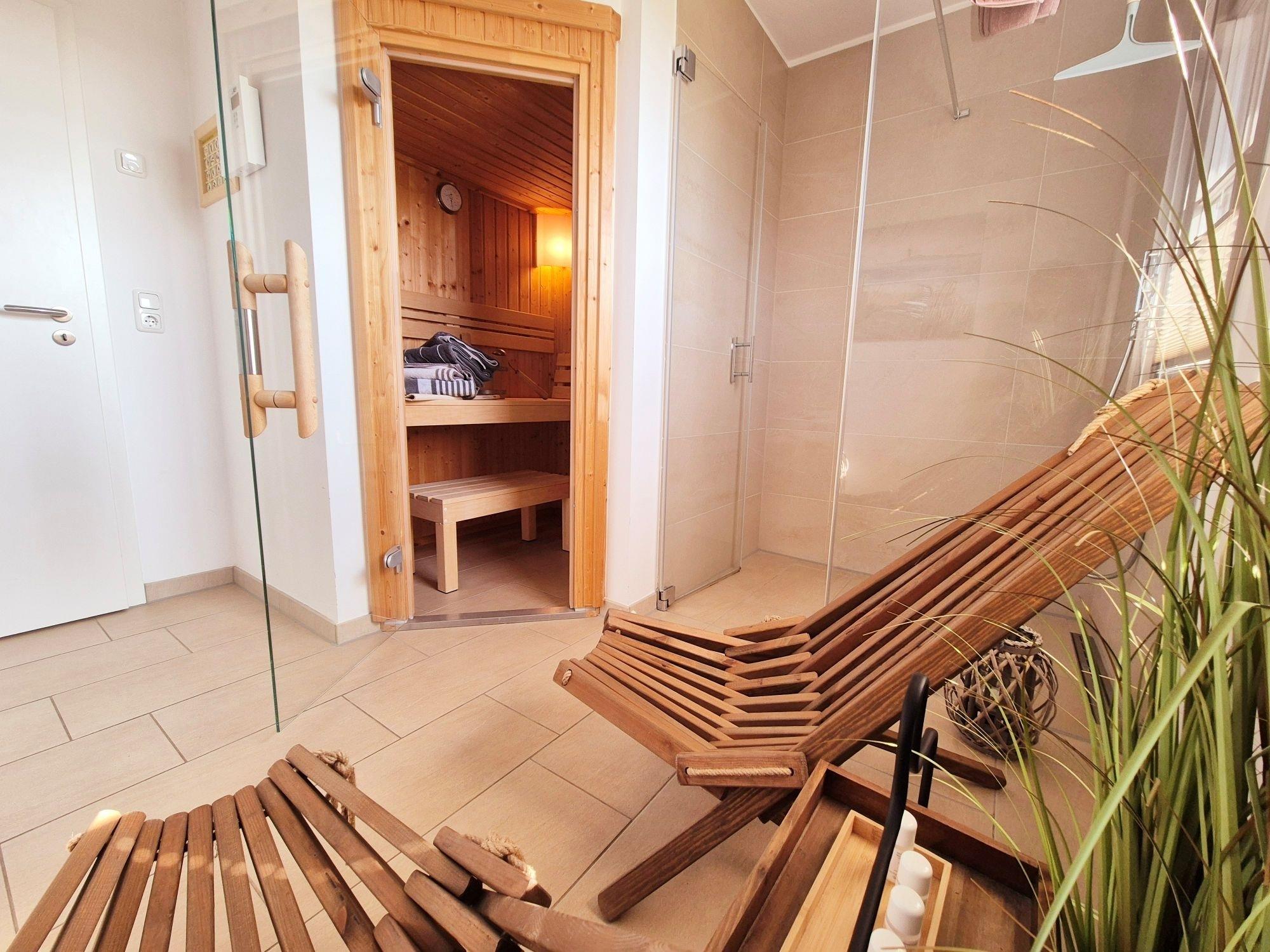 Der massive schwedische Echtholzfußboden und liebevoll ausgesuchte Details bestechen durch Ihre Einzigartigkeit. Die Küche ist modern mit vielen Extras ausgestattet und das von allen Seiten sichtbare Kaminfeuer bringt gerade an kälteren Tagen eine wohlige Stimmung ins Haus. Die Sauna ist mit einer Wellnessdusche versehen und bietet angenehmen Platz zum Erholen. Das Gäste-WC mit Tageslicht befindet sich ebenfalls im Erdgeschoss.