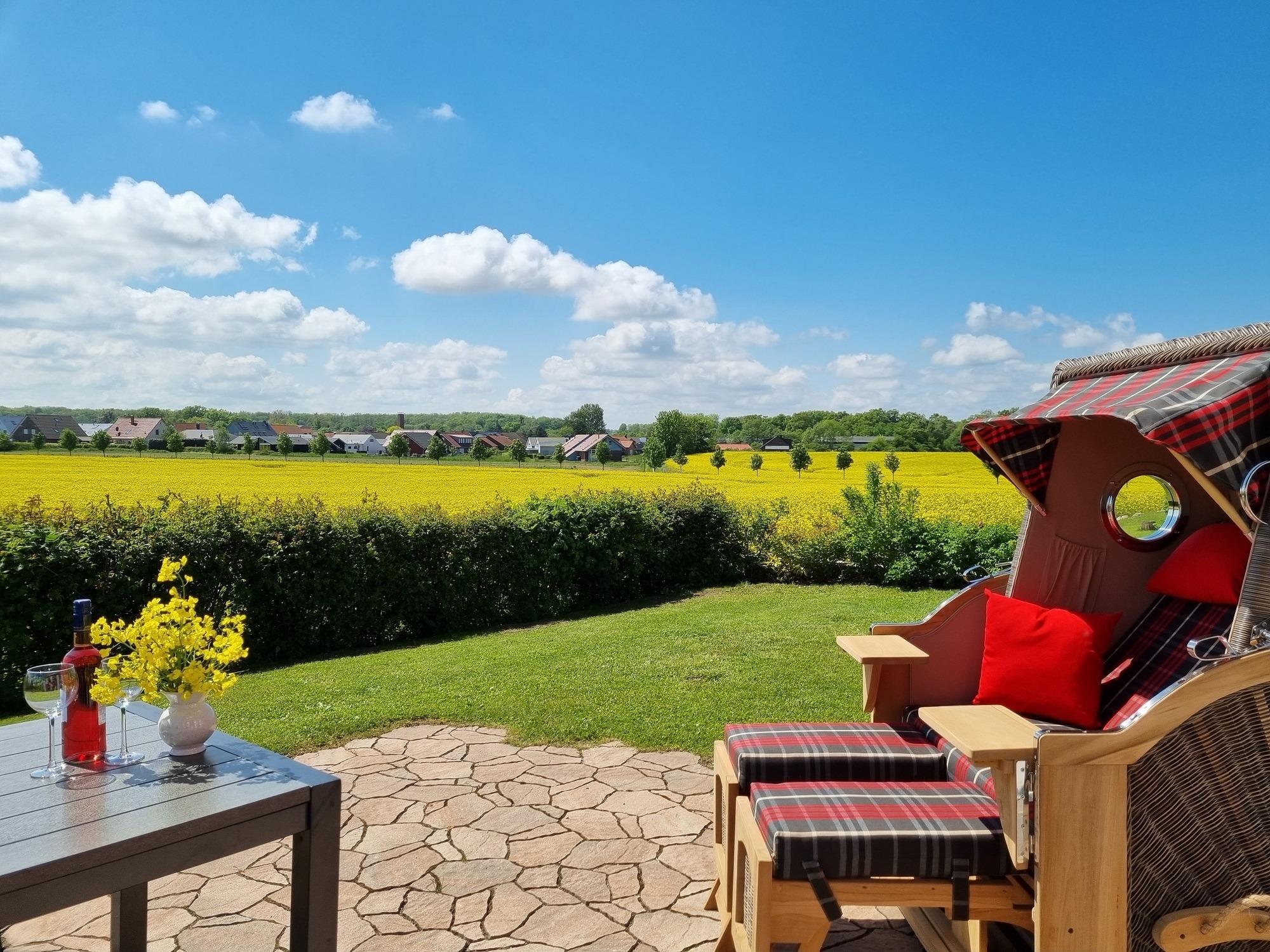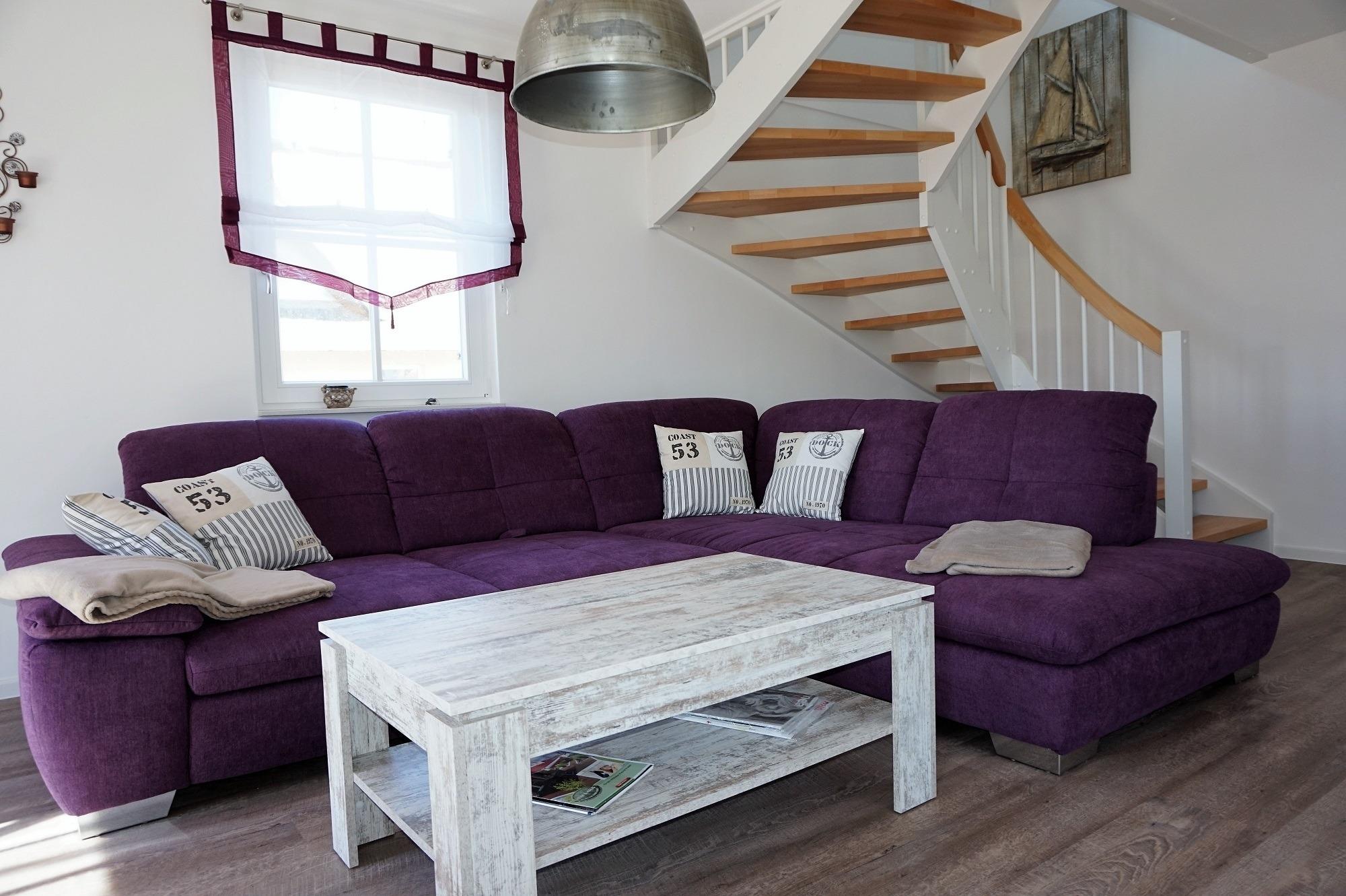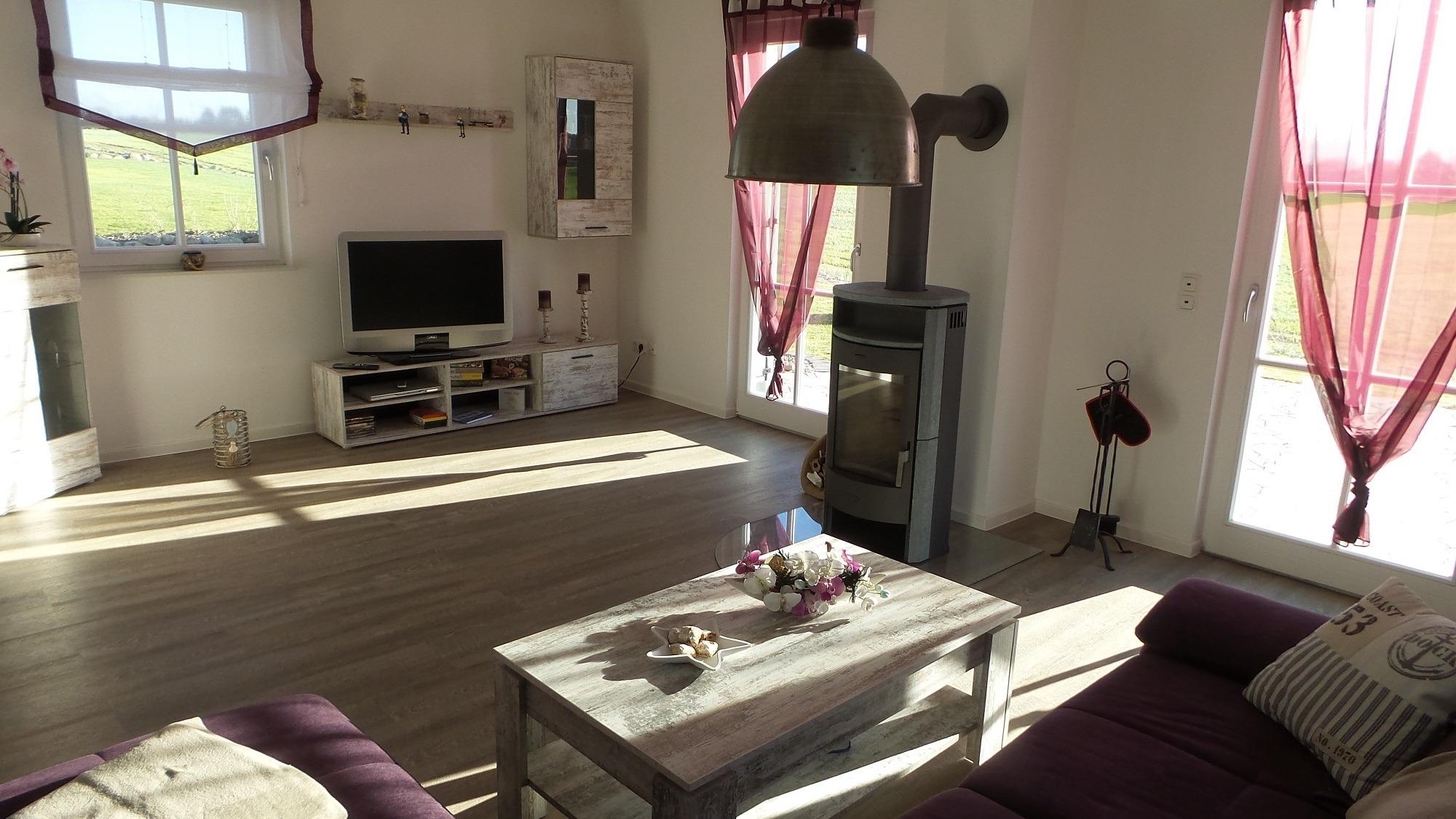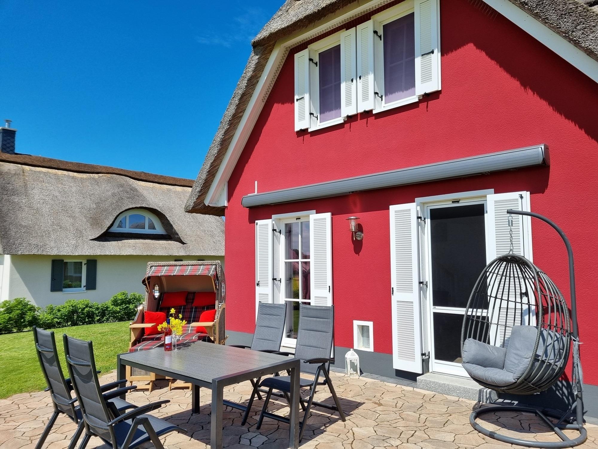 Auf der möblierten Terrasse haben Sie den ganzen Tag Sonne und Sie können den Blick über die Felder bis hin zum Erholungsort Zierow schweifen lassen. Eine gemütliche Sitzlounge lädt zum Entspannen und Bücher lesen ein. Die Terrasse ist mit einer elektrischen Markise versehen. Im Garten ist ein Grill und ein Gartenhaus zum Unterstellen Ihrer mitgebrachten Fahrräder. Im Reethaus erwartet Sie eine komfortable, hochwertige Ausstattung. Im gesamten Haus ist eine Fußbodenheizung und Fliesen verlegt. Im Erdgeschoss befindet sich das Wohnzimmer mit Kamin. Machen Sie es sich auf der großen Wohnlandschaft gemütlich - Spiele, Bücher, DVD`s, Sat-TV mit DVD sorgen für Unterhaltung. W-LAN ist kostenfrei nutzbar. Eine Waschmaschine steht im Hauswirtschaftsraum bereit. Die Küche ist separat und lädt zum Kochen ein. Der Essbereich ist hier integriert. Die Küche ist mit Geschirrspüler, Ceran-Kochfeld, Backofen, Toaster, Kaffeemaschine, Radio, Kühlschrank mit Gefrierfach und vielen Kochutensilien ausgestattet.
