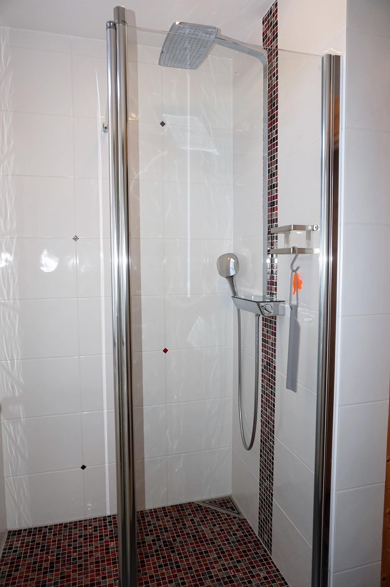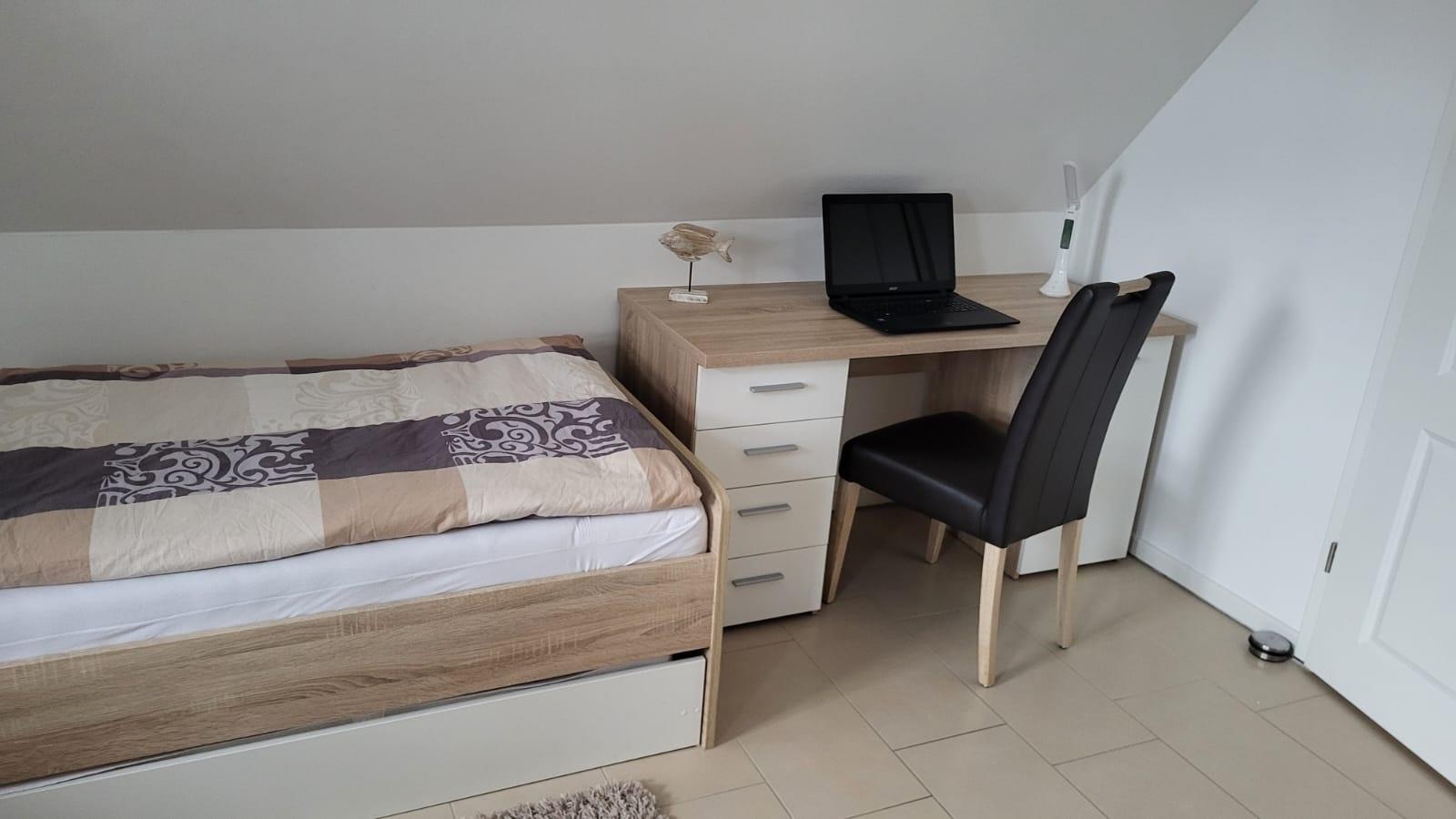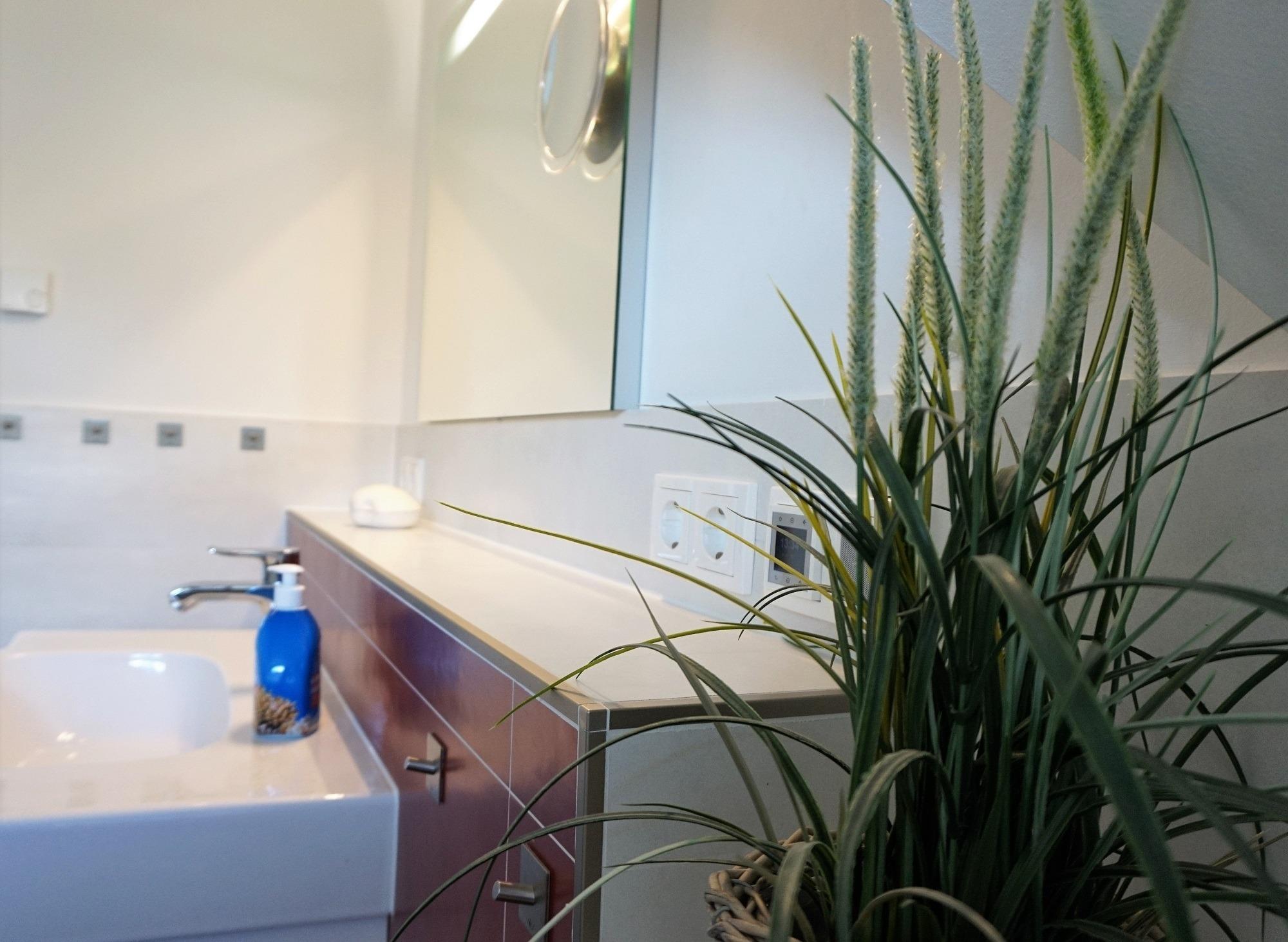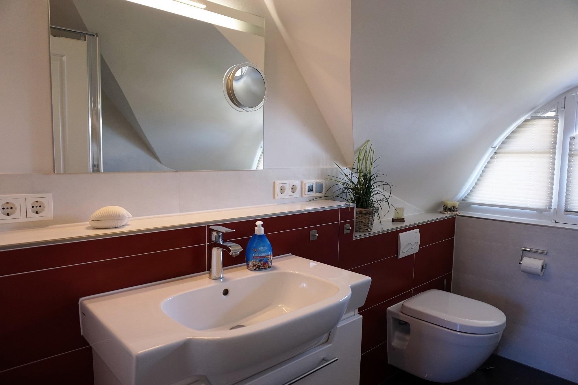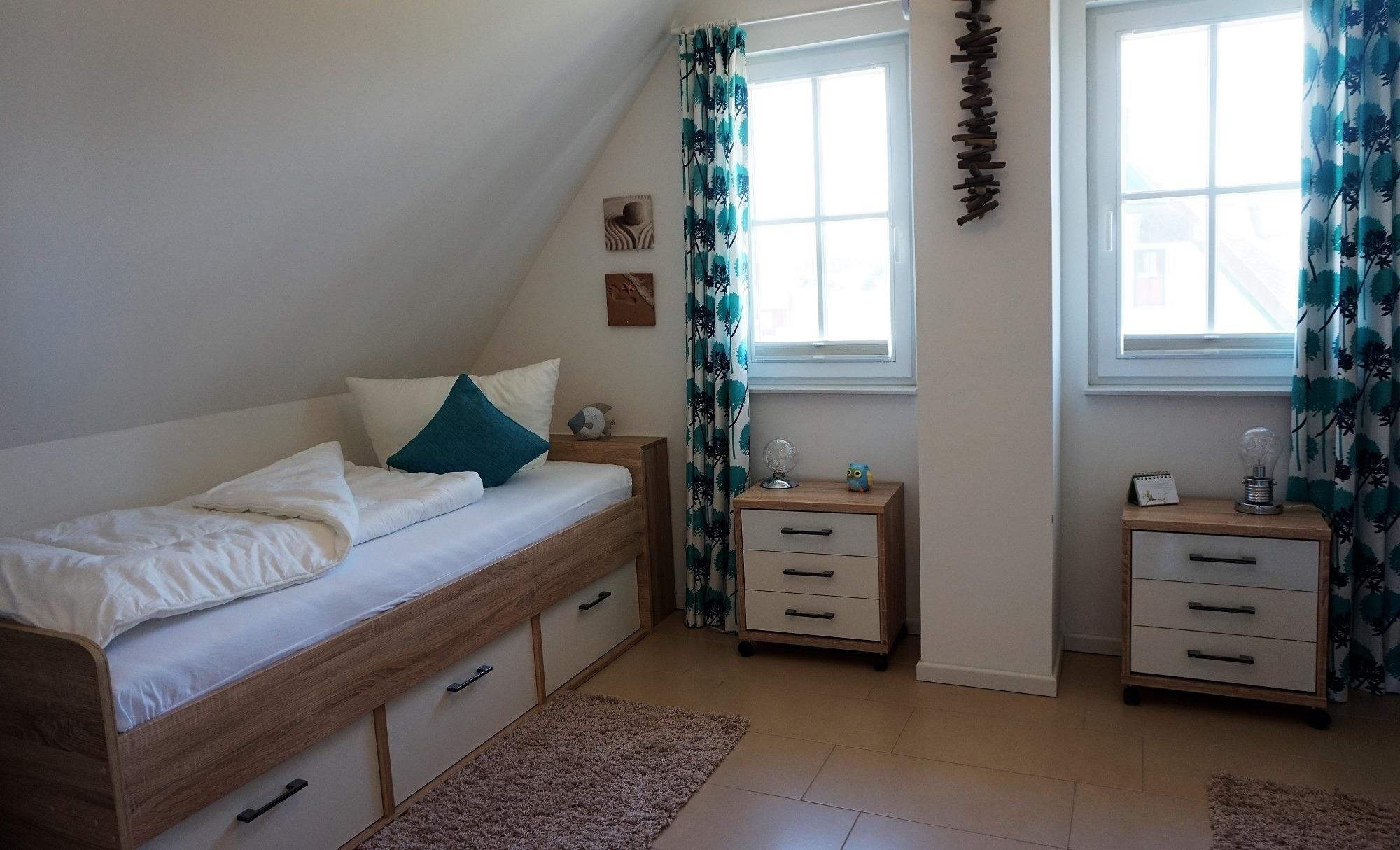 Für den Hund steht ein Lederkorb und Hundenäpfe unter der Treppe. Bitte lassen Sie den Vierbeiner im Erdgeschoss! Ein Gäste-WC mit Tageslicht befindet sich zudem im Erdgeschoss. Zwei separate Schlafzimmer sowie ein hochwertiges Vollbad sind im Obergeschoss vorhanden. Im Elternschlafzimmer befinden sich ein großer eingebauter Kleiderschrank mit 2. TV und Doppelbett. Von hier aus haben Sie einen wunderbaren Blick auf die Ostsee. Im Kinderschlafzimmer sind drei Einzelbetten nutzbar. Ein Kinderreisebett steht bereit. Ihr Urlaub kann direkt beginnen - die Bettwäsche ist bei Anreise bereits bezogen und Handtücher liegen bereit. Im Haus sind Fliegenschutzgitter und Gardinen bzw. Pliesses als Sichtschutz angebracht. Im Hauswirtschaftsraum stehen eine Wasch- Trocknerkombi und ein Bügelbrett/Bügeleisen sowie Putzutensilien bereit. Ein Safe für Ihre Wertsachen ist vorhanden. Vor dem Ferienhaus können Sie zwei PKW`s abstellen. Ab Januar 2026 steht eine Wallbox zur Verfügung. Abrechnung erfolgt nach Verbrauch.