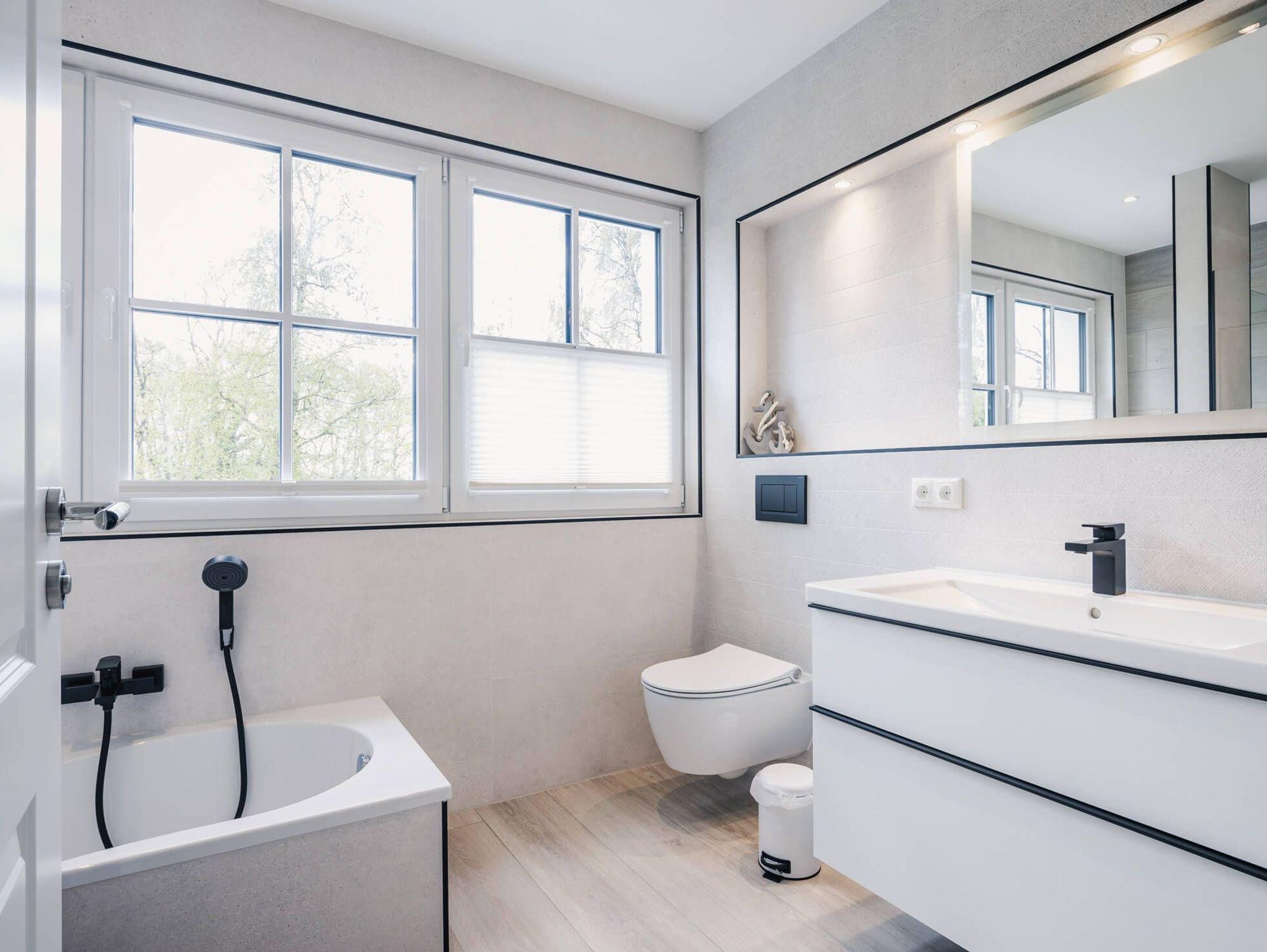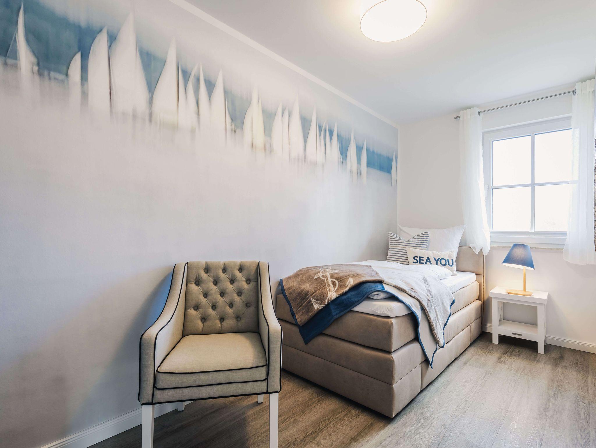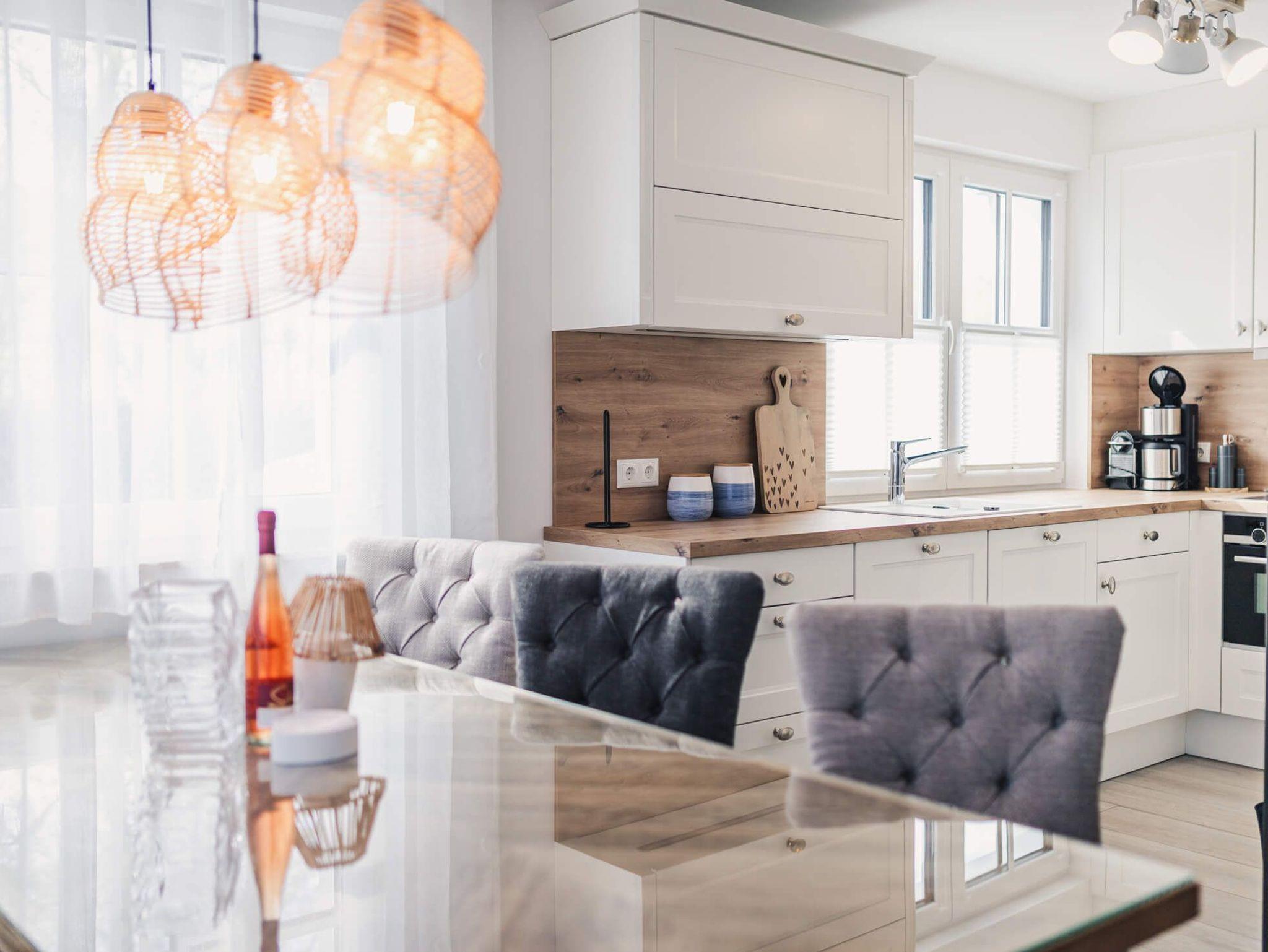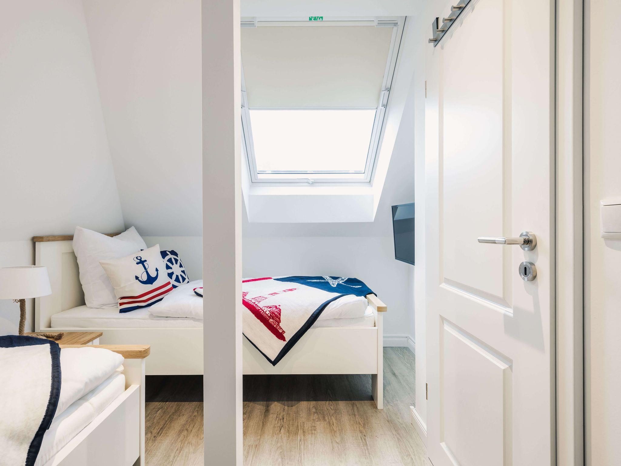 Auf 105 Quadratmetern Wohnfläche bietet Ihnen das Ferienhaus Kranichkieker Platz für 7 Personen. Es verfügt über 4 Schlafzimmer und 2 Bäder. Ein Bad im Erdgeschoss mit ebenerdiger Dusche und Sauna und ein Bad im Obergeschoss mit Badewanne und bodengleicher Dusche sorgen für Komfort und Entspannung. Die Schlafzimmer im Obergeschoss sind komfortabel mit Boxspringbetten und Flatscreen-TV ausgestattet. Das Schlafzimmer im Dachgeschoss beinhaltet zwei Einzelbetten und einen Flatscreen-TV. Der offene Wohn-Ess-Bereich mit voll ausgestatteter Küche bietet ausreichend Platz für gemeinsame Mahlzeiten und gesellige Abende. Die Terrasse mit angrenzendem Rasen lädt zum Sonnenbaden, Grillen und Entspannen im Freien ein. In dem abschließbaren Fahrradschuppen können Sie Ihre Fahrräder sicher abstellen. Zwei PKW-Stellplätze stehen Ihnen direkt am Haus zur Verfügung.