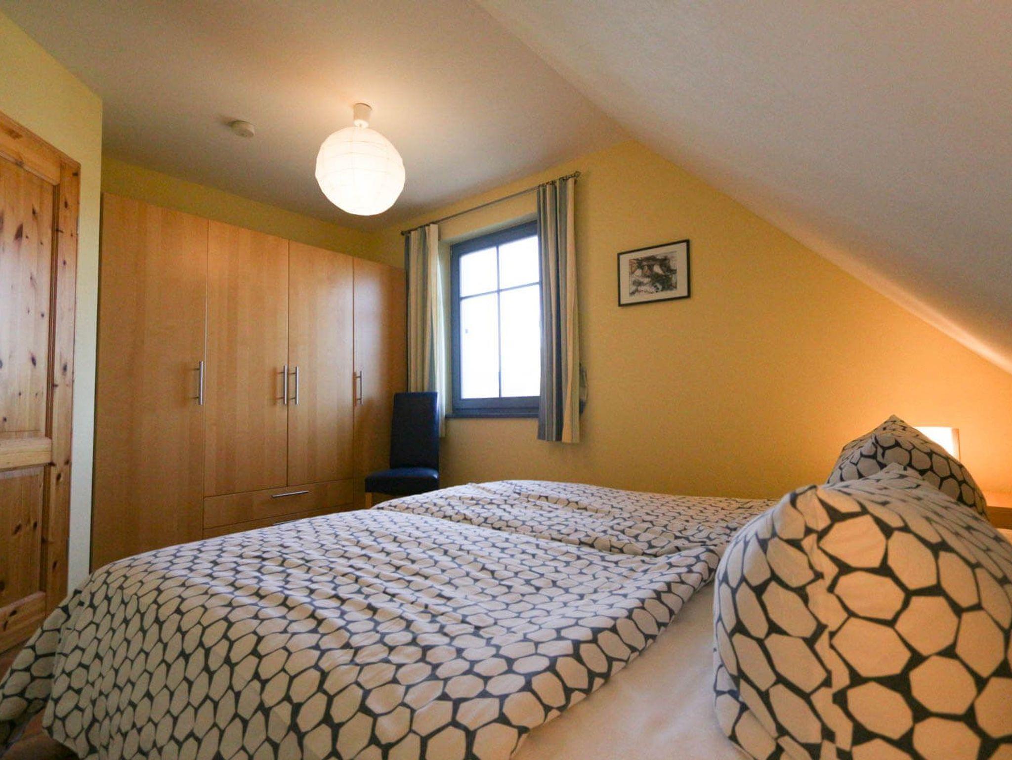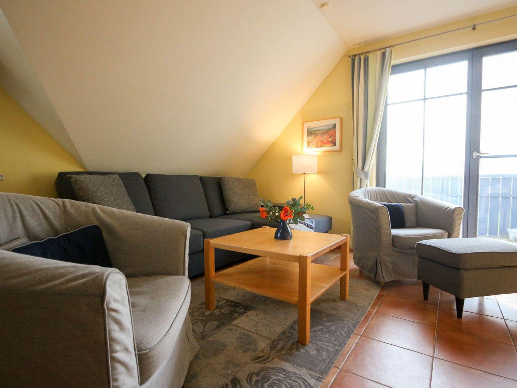 Genießen Sie den Blick auf den Barther Bodden vom Balkon aus. In der Kranichsaison können Sie den atemberaubenden Vogelzug hautnah erleben. Die Wohnung ist auf zwei Etagen verteilt, verfügt über zwei Schlafzimmer im ersten Geschoss und eine halboffene Galerie mit weiteren Schlafmöglichkeiten. Im geräumigen Wohn-/Essbereich können Sie gemeinsam entspannen und den Urlaub genießen.