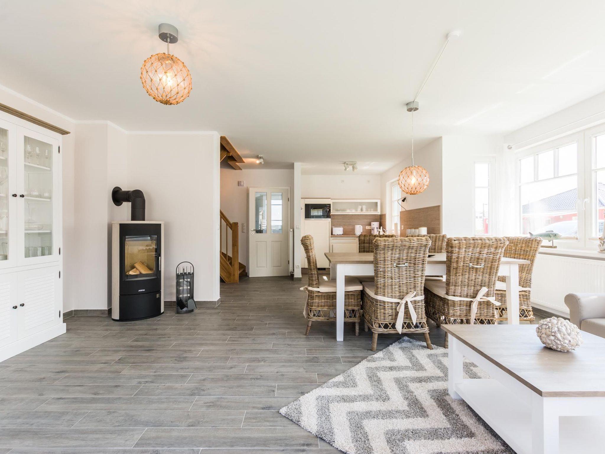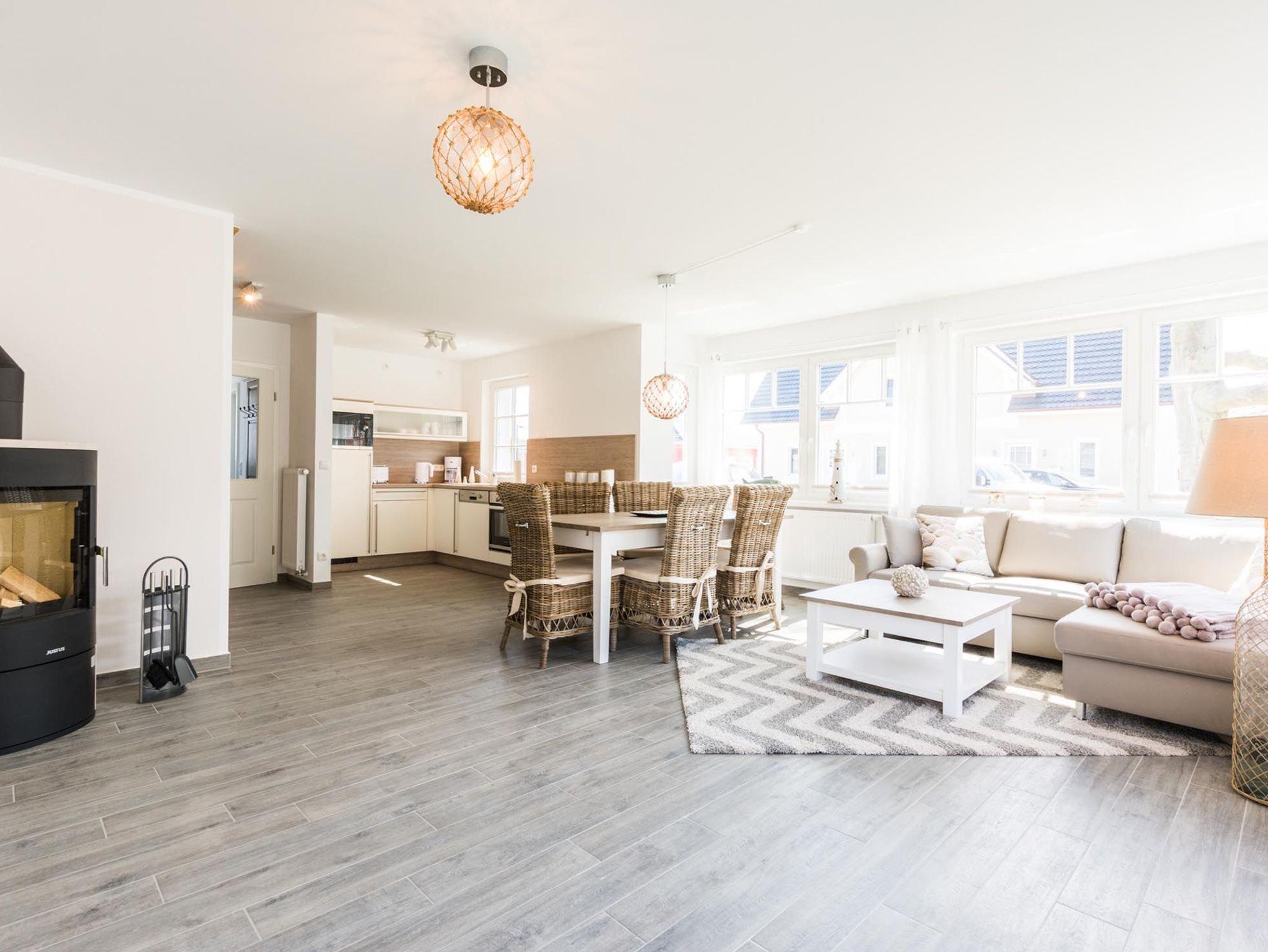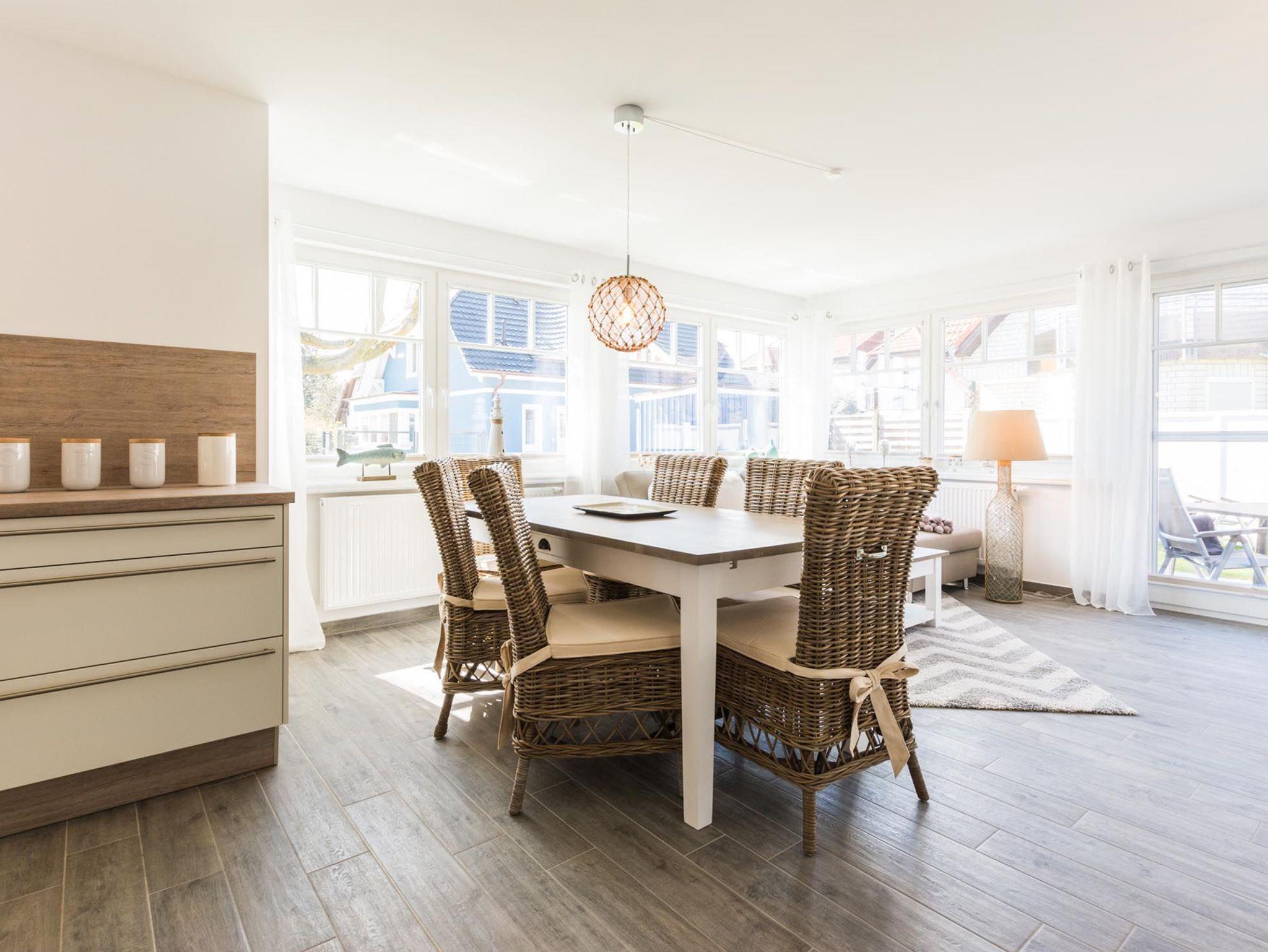 In dieser Doppelhaushälfte in Zingst finden Sie die gewünschte Erholung und Ruhe. Der großzügige Wohnraum mit Kochnische lädt zum Verweilen ein. Die Küche mit hochwertigen E-Geräten ist komplett ausgestattet. Ob Toaster, Wasserkocher, Kaffeemaschine oder Mikrowelle - es ist alles vorhanden. Am großen Esstisch können Sie entspannt speisen und gesellig zusammen sitzen.