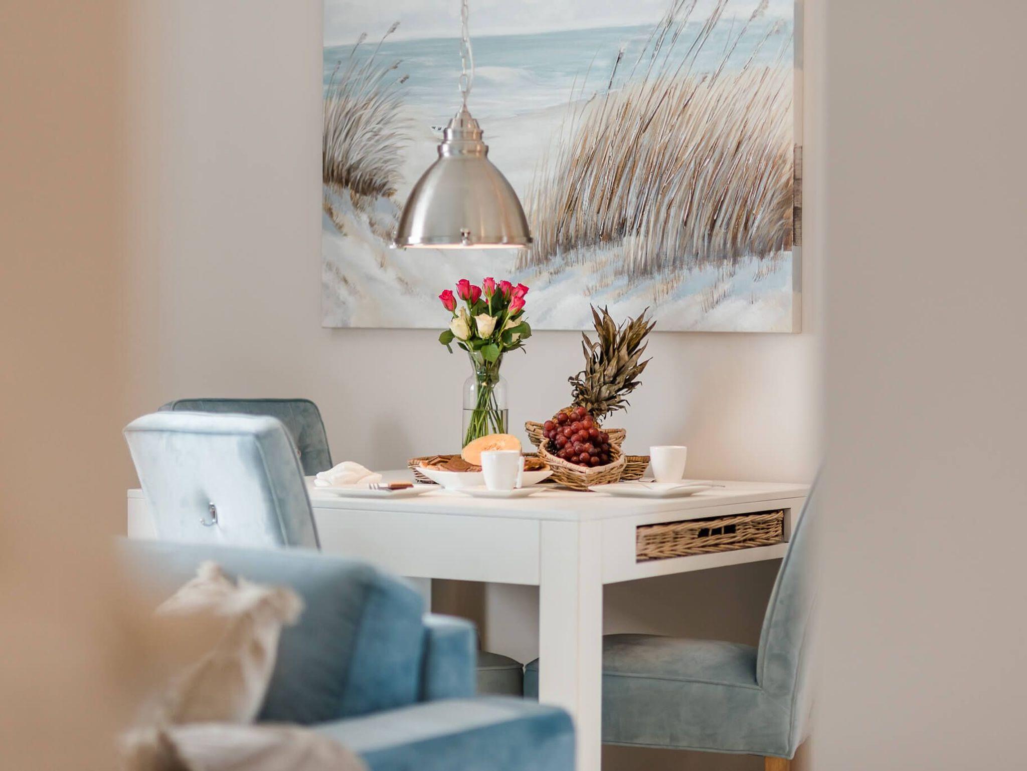 Geniessen Sie einen Aufenthalt in der gemütlichen und hochwertig ausgestatteten Ferienwohnung Kleine Auszeit in Zingst. Die Ferienwohnung besticht durch ihre moderne Einrichtung, welche durch das helle Mobiliar und die farblichen Akzente ein harmonisches Ambiente schafft.
