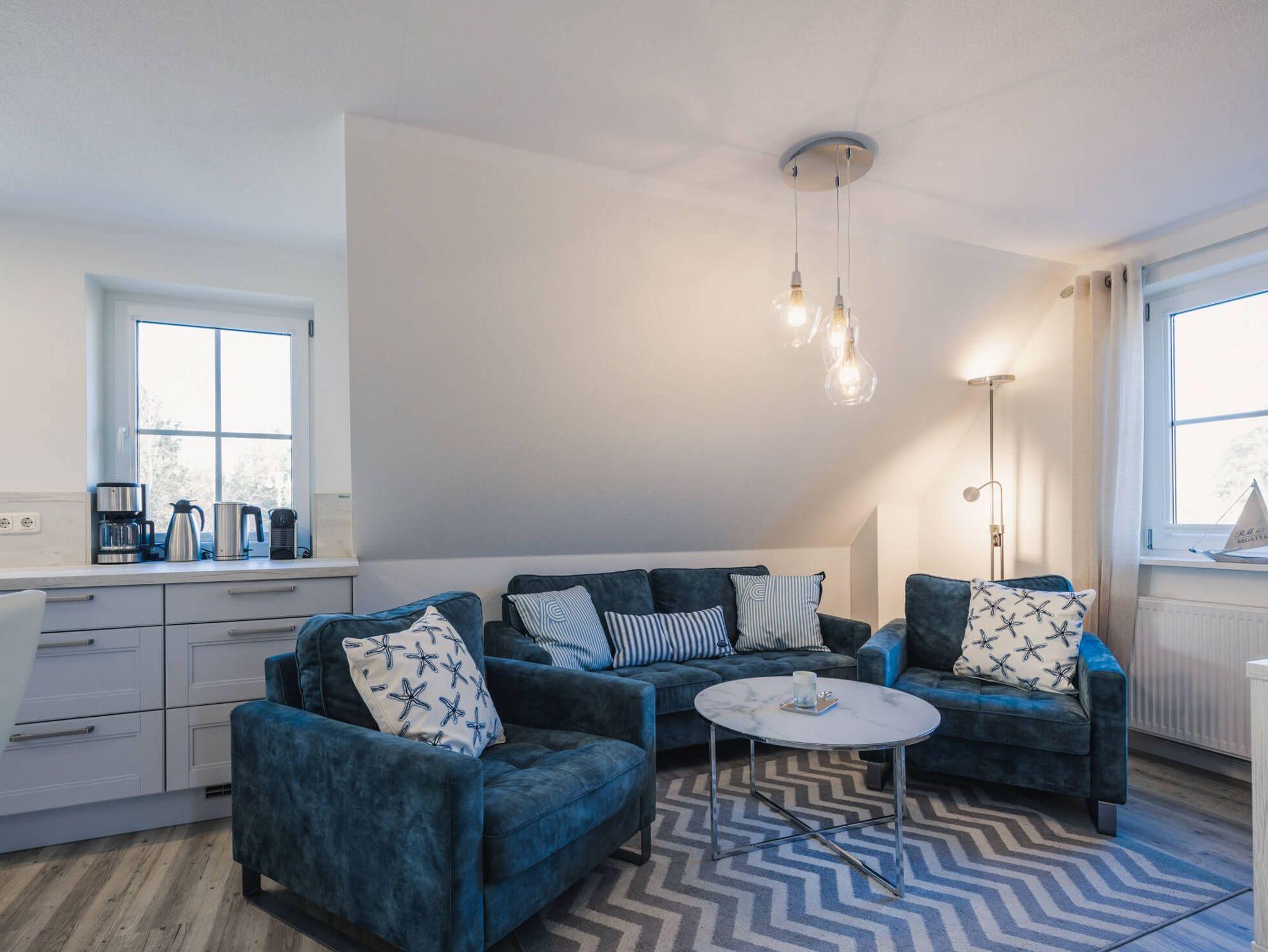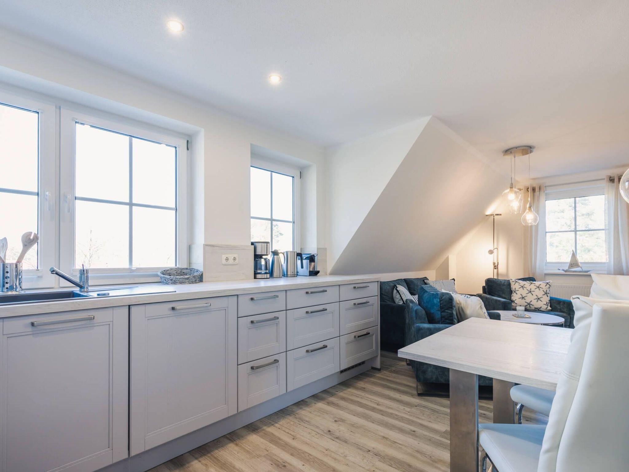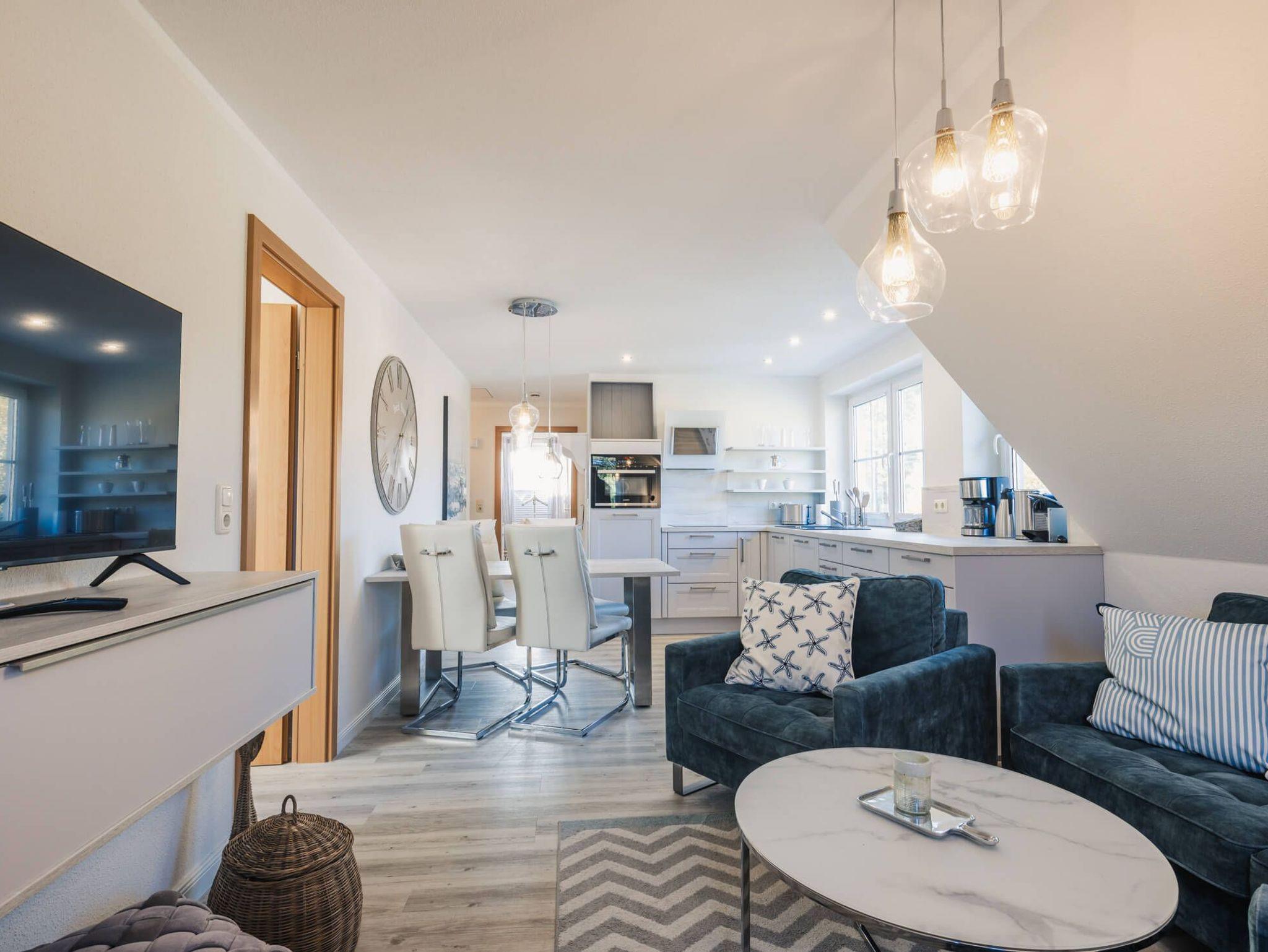 Entspannen Sie in unserer gemütlichen Ferienwohnung mit zwei Schlafzimmern, ideal für Paare und Familie bis zu vier Personen. Die beiden Schlafzimmer und der gemütliche Wohnbereich schaffen eine angenehme Atmosphäre. Die voll ausgestattete offene Küche lädt zum gemeinsamen Kochen ein. Genießen Sie den Blick auf die Umgebung und lassen Sie den Alltag hinter sich. Die Lage unserer Ferienwohnung in Zingst ist unschlagbar: In erster Reihe, nur wenige Schritte vom Strand entfernt. Unsere Ferienwohnung in Zingst ist der perfekte Ausgangspunkt für ausgedehnte Spaziergänge am Strand, Fahrradtouren durch die einzigartige Naturlandschaft oder erlebnisreiche Wanderungen im Nationalpark Vorpommersche Boddenlandschaft. Ihr vierbeiniger Freund ist bei uns ebenfalls herzlich willkommen. Ein Strandkorb (Strandaufgang 26) steht Ihnen gegen eine geringe Gebühr zur Verfügung, um die Ostseeluft in vollen Zügen zu genießen.