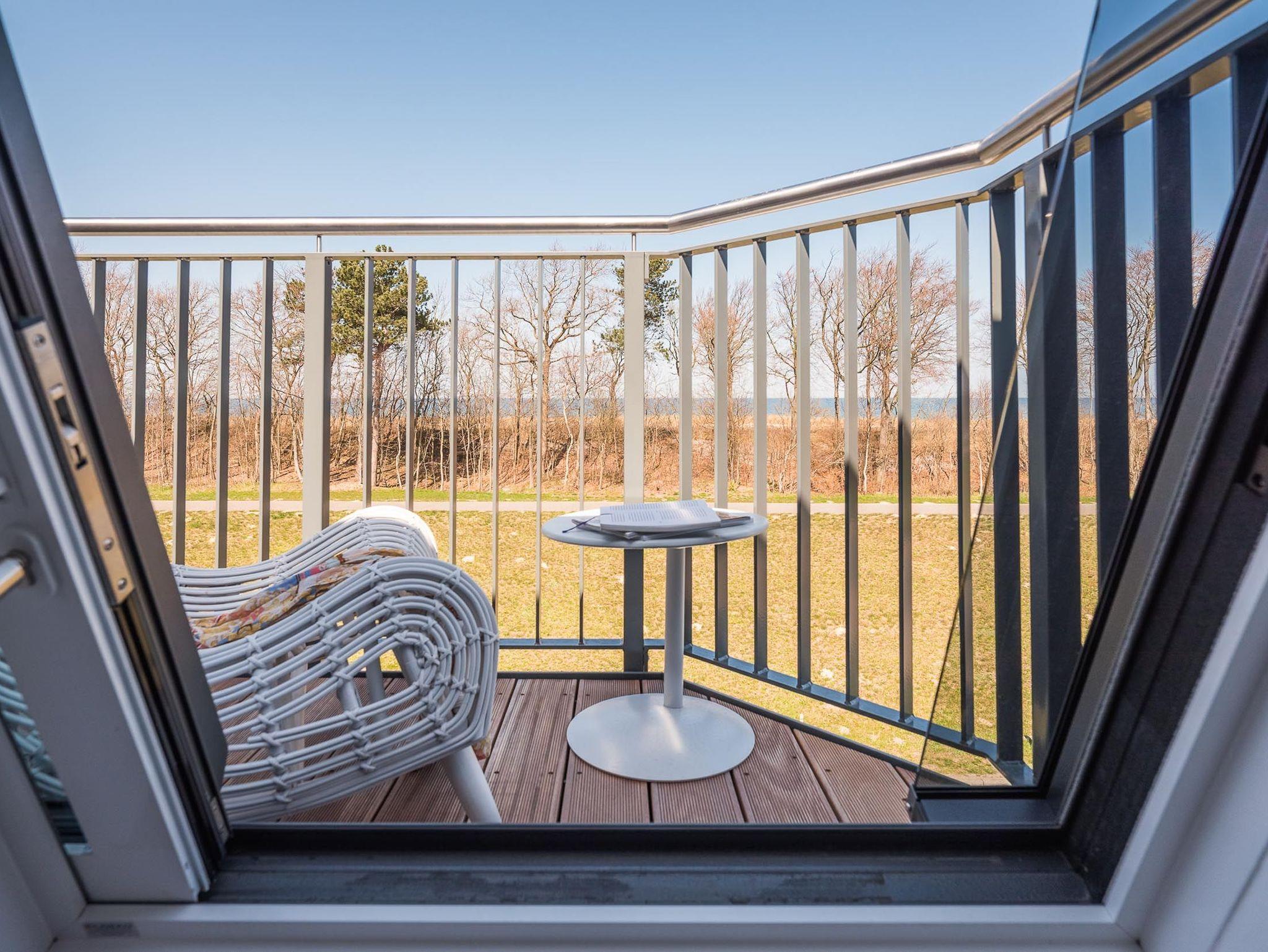 Die bodentiefen Fenster lassen den maritimen und zugleich eleganten Charme des lichtdurchfluteten Penthouse besonders zur Geltung kommen.