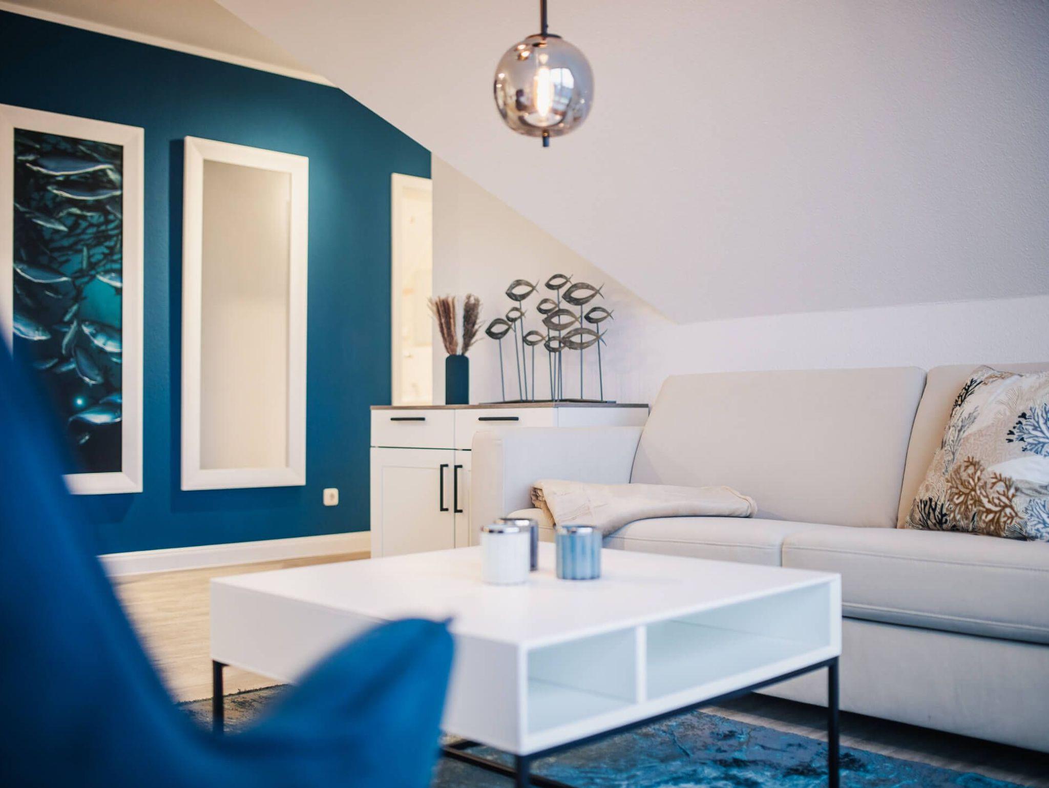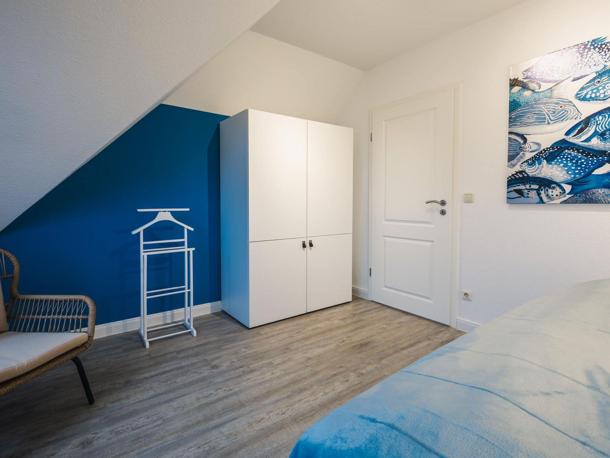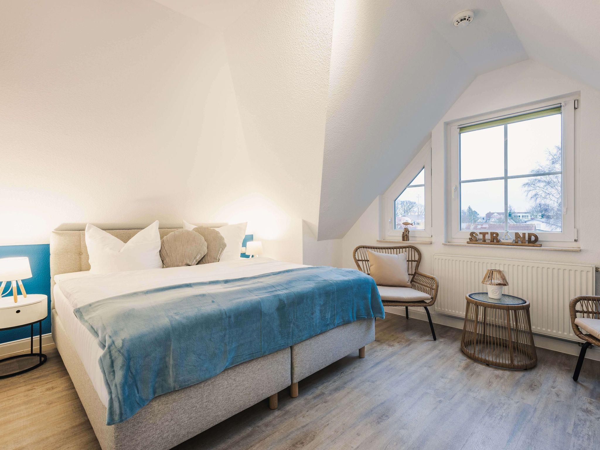Familienfreundlich: Die Ferienwohnung Luv ist ideal für einen Ostseeurlaub mit Kindern geeignet. Das Schlafzimmer mit Boxspringbett bietet Platz für zwei Personen und im Wohnzimmer befindet sich ein Schlafsofa für weitere zwei Personen. Ein Kinderreisebett mit Matratze steht zur Verfügung.