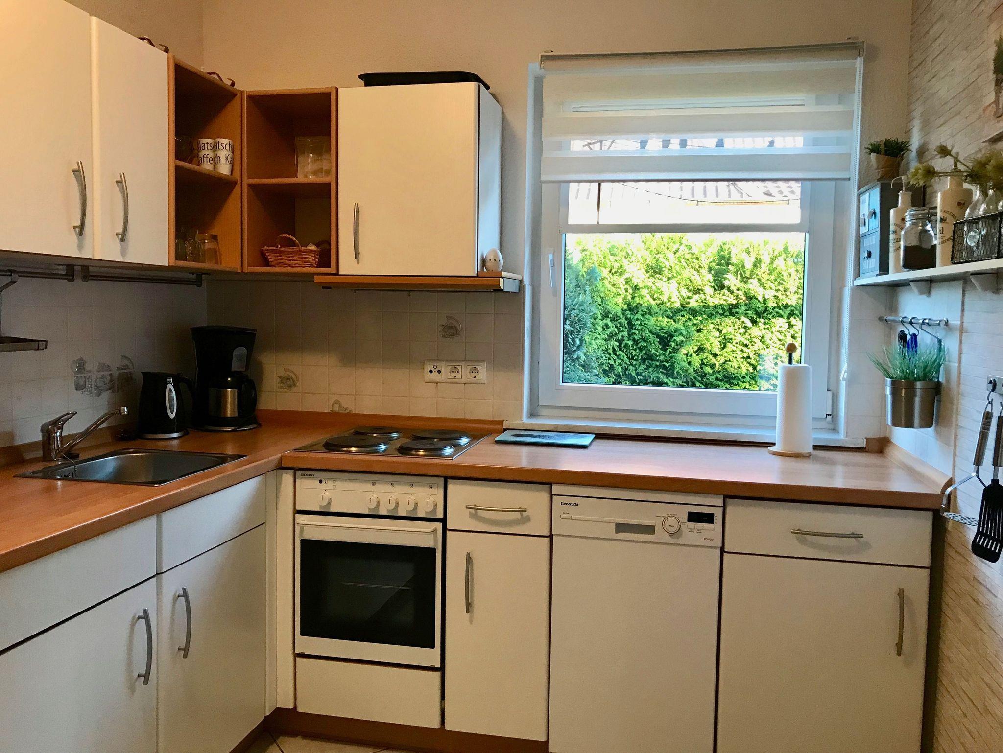 Im Erdgeschoss befindet sich die vollausgestattete Küche mit Geschirrspüler, Backofen, Mikrowelle, Herd und kleinem Essbereich, der einladende Wohnbereich mit Ecksofa, Sessel und TV, das gemütliche Esszimmer, ein Schlafzimmer mit Boxspringbetten, ein Bad mit Dusche und ein großes Bad mit Eckbadewanne.