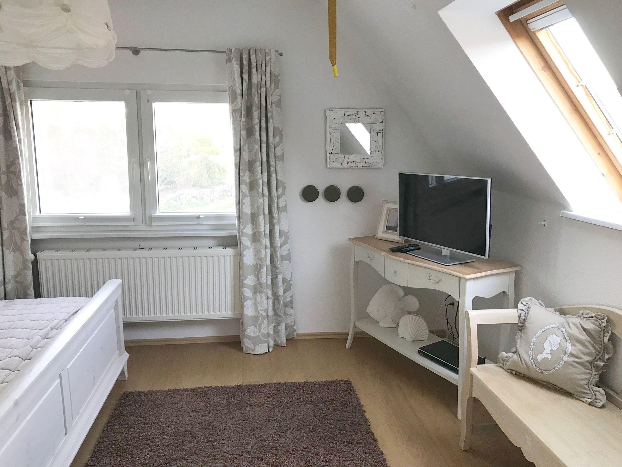 Im Obergeschoss befindet sich ein Schlafzimmer mit Sitzecke, TV und Insektenschutz, ein Schlafzimmer mit Schreibtisch, TV und Insektenschutz, eine Bad mit Dusche und die Münzsauna (2 Euro-Stück). Im Wirtschaftsraum steht Ihnen eine Münz-Waschmaschine und Münz-Trockner, Bügelbrett und Bügeleisen zur Verfügung.