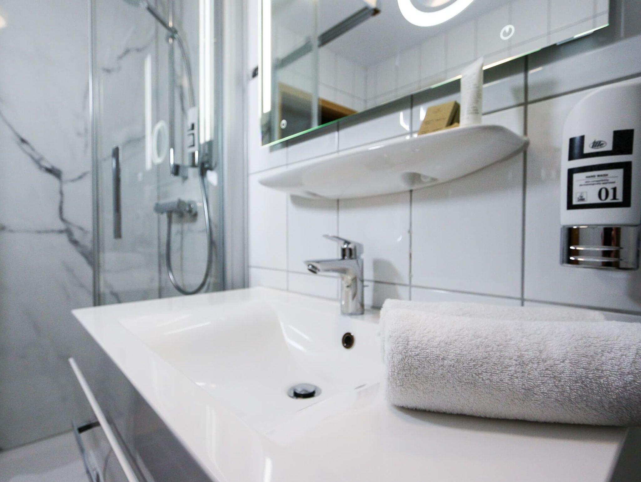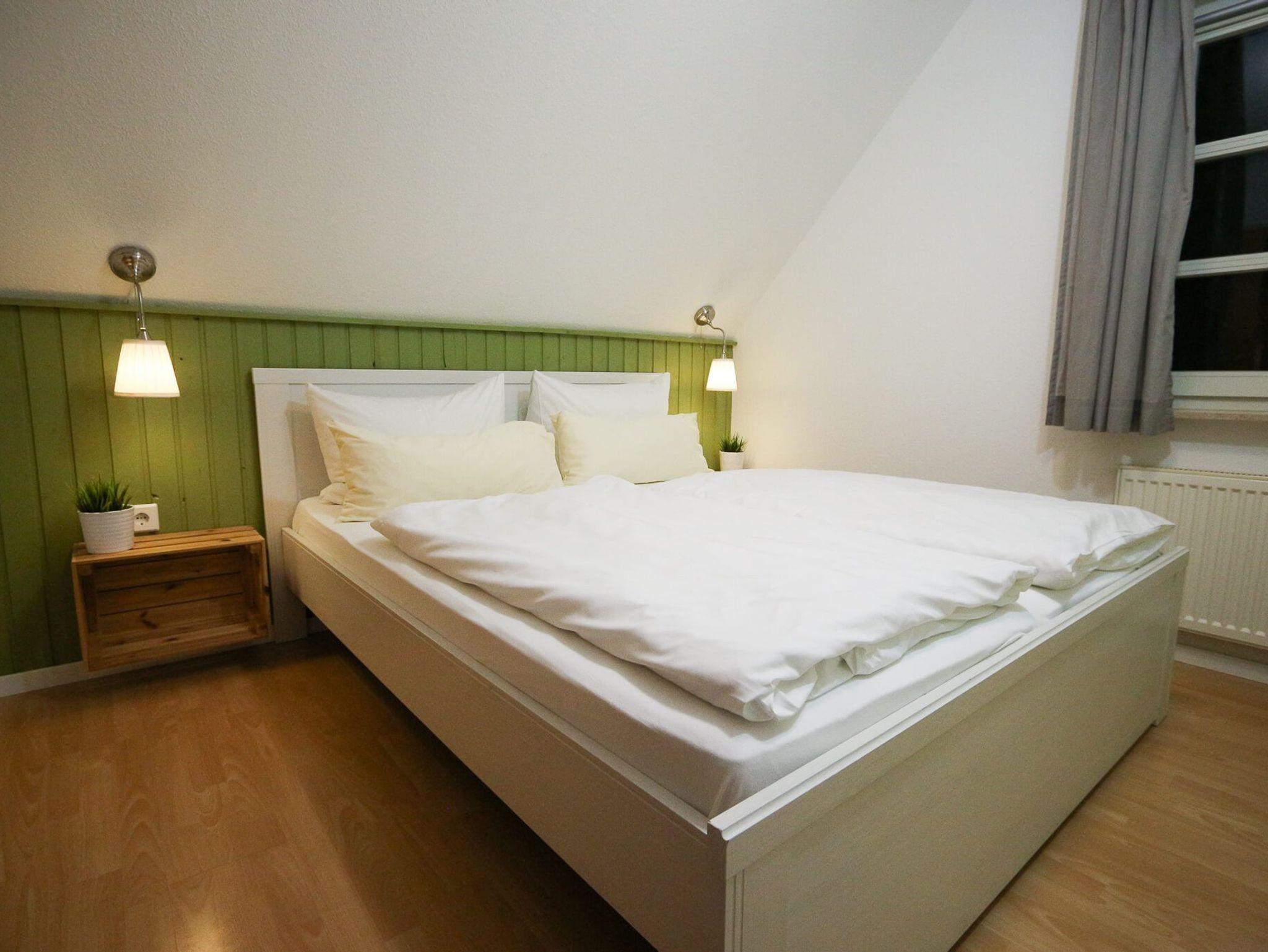 Das Apartment Pier 3 (3F) ist eine moderne Maisonette-Wohnung, die sich über das Ober- und Dachgeschoss von Haus 3 erstreckt. Auf ca. 45 m² bietet sie ein offenes und helles Wohnkonzept für bis zu 5 Personen. Die untere Ebene umfasst den Wohn-Essbereich mit Smart-TV und eine voll ausgestattete Küchenzeile (Ceranfeld, Mikrowelle mit Grillfunktion). Im Dachgeschoss befinden sich das Hauptschlafzimmer sowie eine gemütliche Schlafkoje, die zusätzliche Flexibilität bietet. Das Badezimmer ist mit Dusche und kostenfreien Pflegeprodukten ausgestattet. Ein komplettes Wäschepaket (Bettwäsche/Handtücher) sowie WLAN sind im Preis inbegriffen.