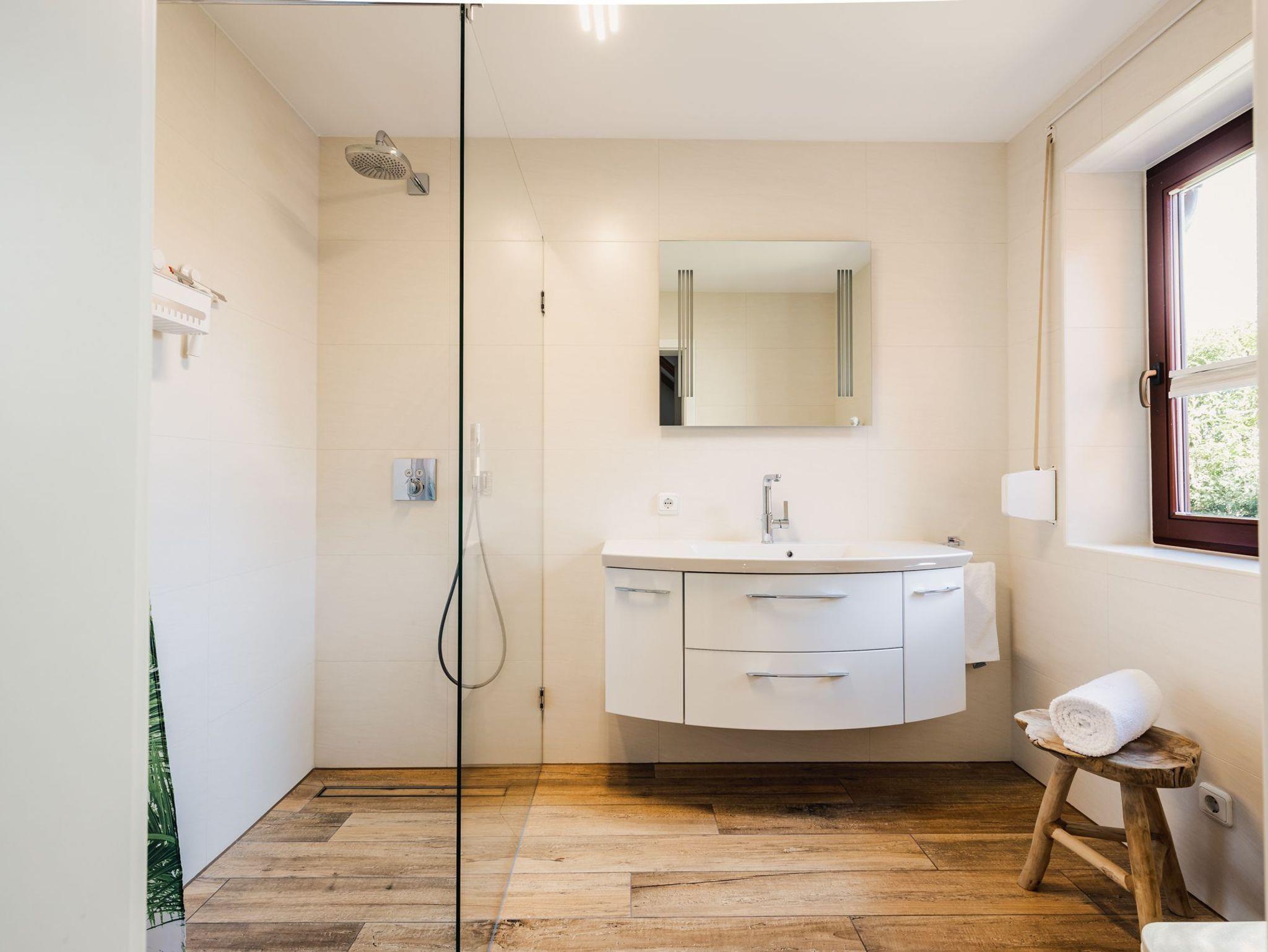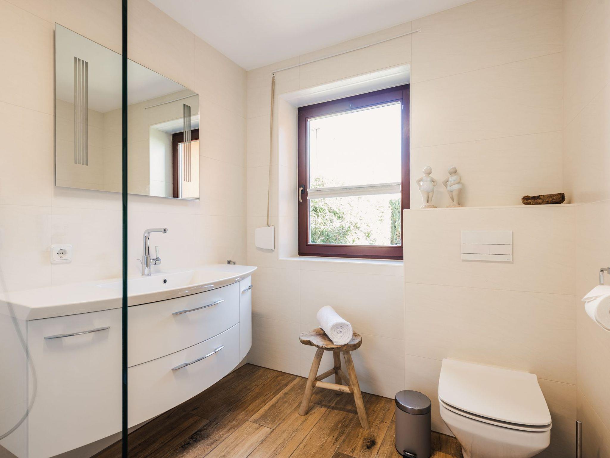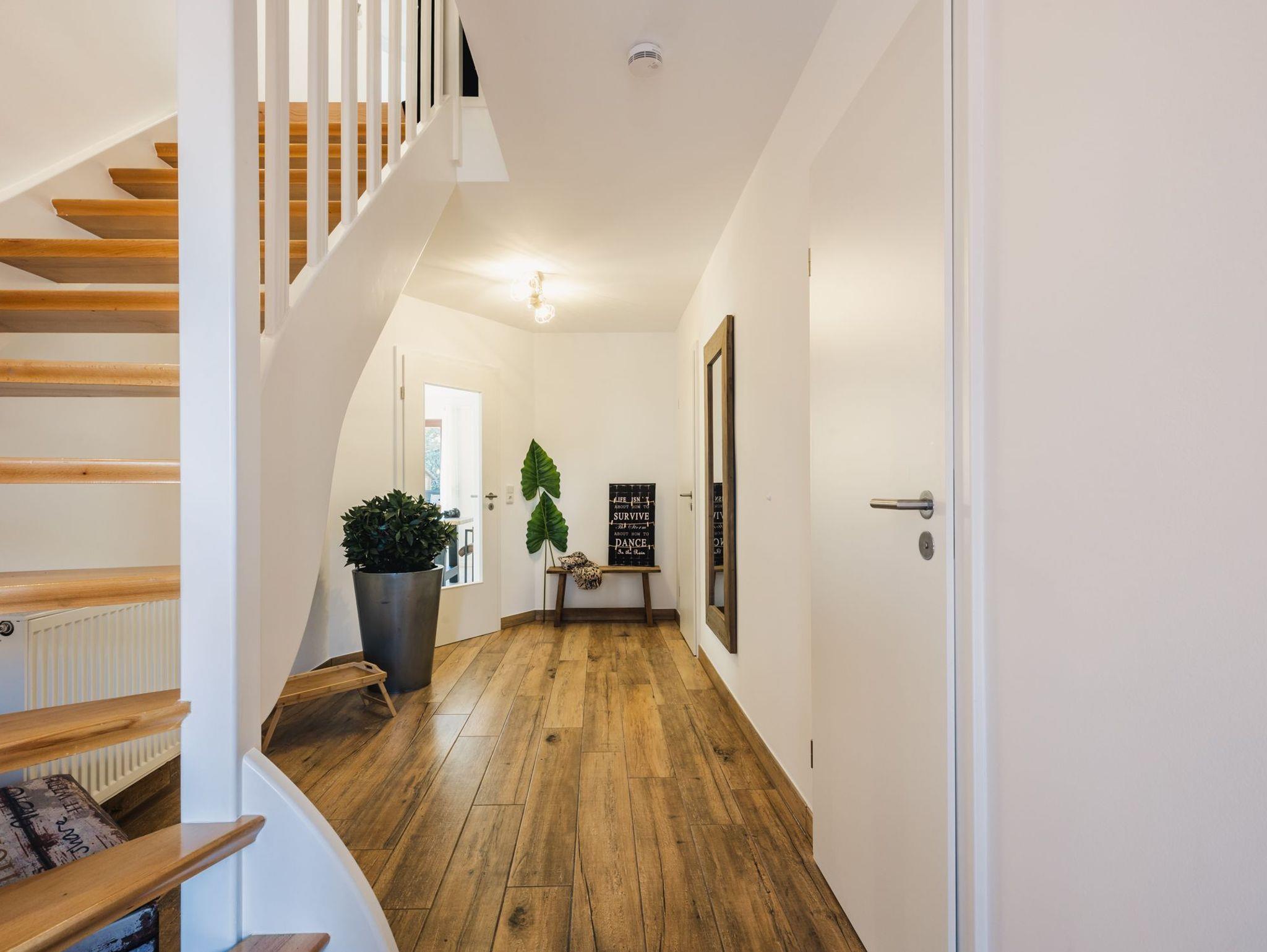 Während die offene Küche eine lückenlose Ausstattung und vollen Urlaubskomfort bietet, laden Esstisch und gemütliche Sitzlandschaft zum Verweilen ein. Ein zusätzliches Badezimmer mit WC & Dusche runden den Komfort im Erdgeschoss ab.