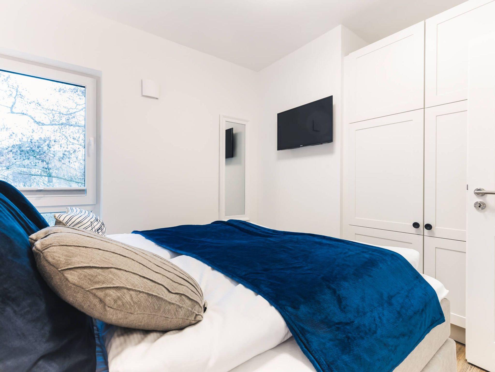 Die Schlafzimmer sind hell und modern gestaltet und bieten mit maßgeschneiderten Einbauschränken genügend Stauraum für Ihre persönlichen Sachen. Die Flat-TV?s ermöglichen jedem individuell das Programm zu sehen, was zum entspannten einschlafen benötigt wird. Die großen Boxspringbetten sorgen für höchsten Schlafkomfort, damit Sie ausgeruht und mit neuer Energie in den Tag starten können.