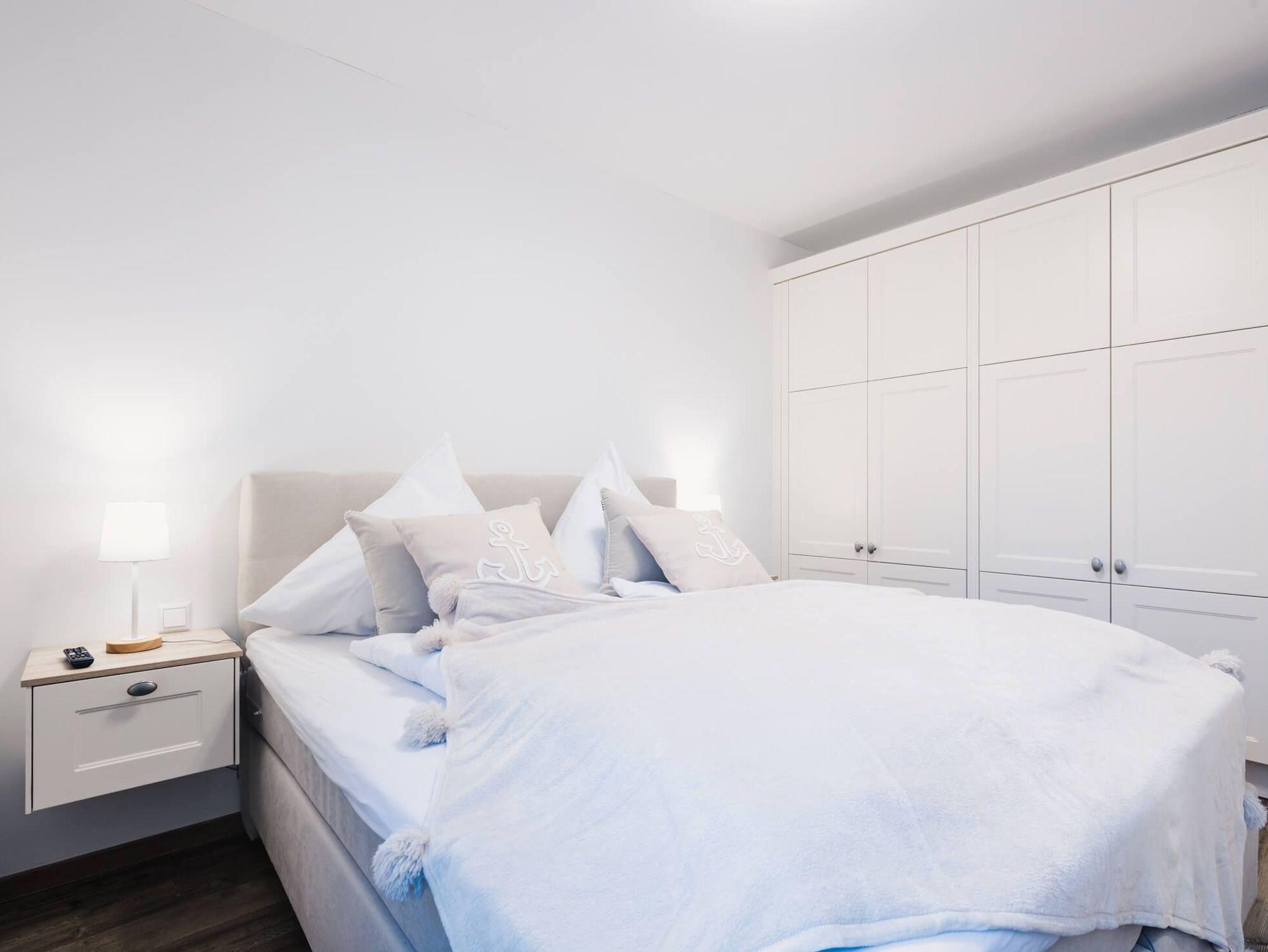 Die Ferienwohnung bietet zwei Schlafzimmer mit jeweils einem Boxspring-Doppelbett. Der geräumige Wohn- und Essbereich mit moderner und komplett ausgestatteter Küche ist offen gestaltet und lädt zu geselligen Stunden mit der Familie ein.