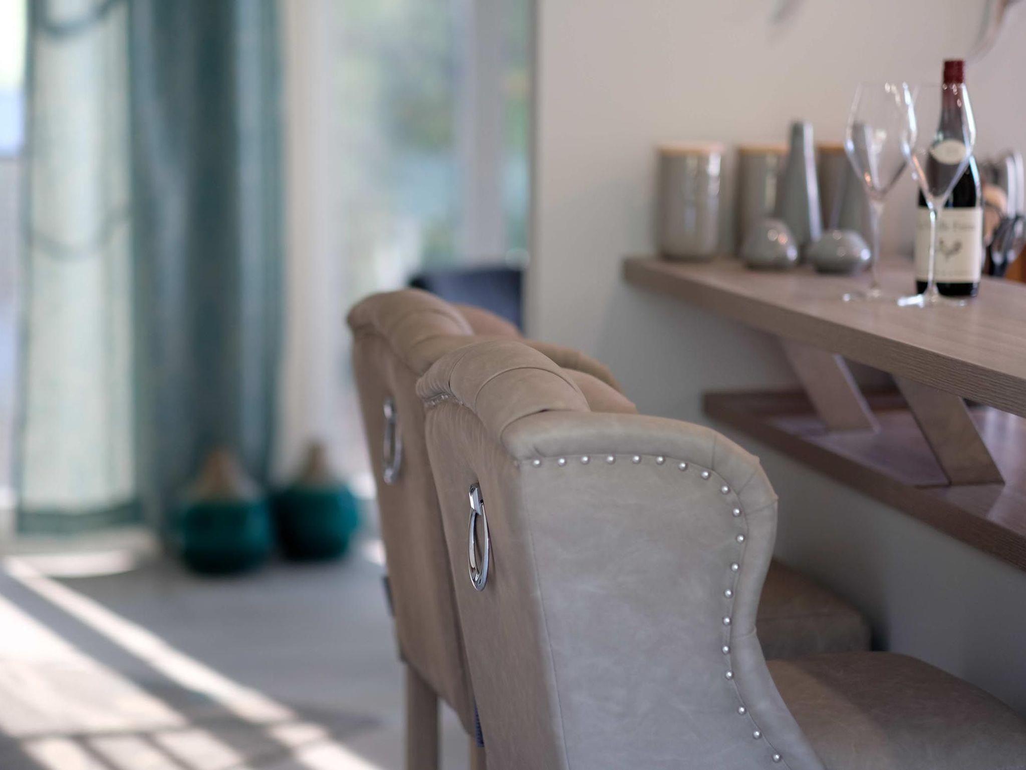 Der Innenbereich überzeugt mit gehobener Ausstattung und vielen Extras. Im Erdgeschoss erwartet Sie eine kleines Gästebadezimmer mit Dusche und WC, ein Abstellraum mit Waschtrockner sowie großzügigem Wohn-und Essbereich mit Kamin. Über die Treppe erreichen Sie das Obergeschoss, welches Ihnen ein geräumiges Badezimmer mit Dusche und WC, sowie ein Schlafzimmer mit großem Doppelbett und separatem Balkon und ein Schlafzimmer mit zwei Einzelbetten bietet.
