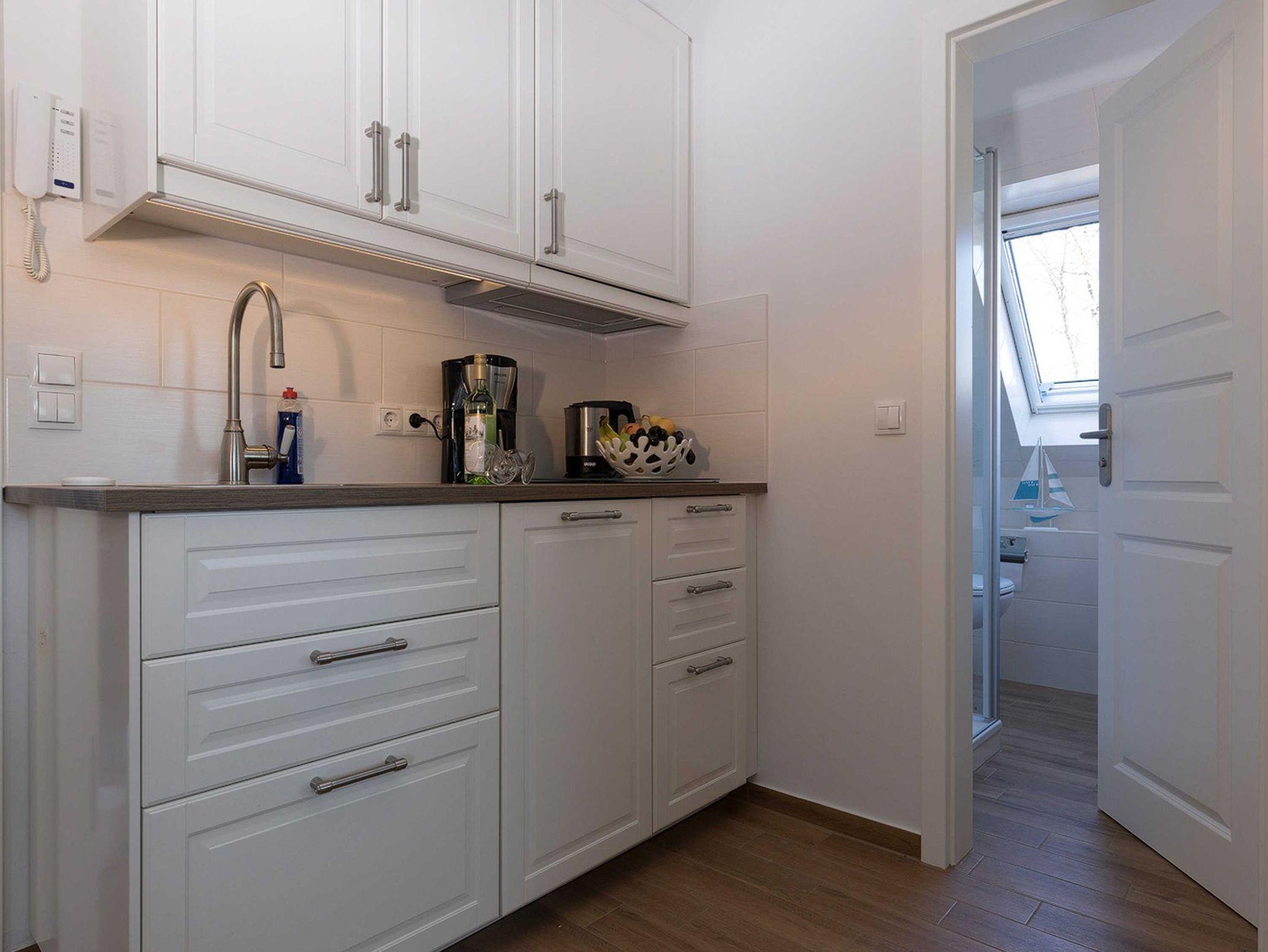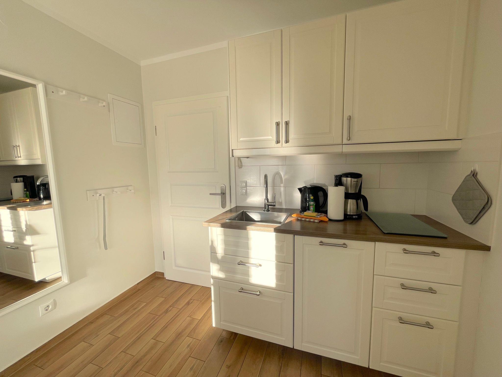 • komplett eingerichtete Küchenzeile mit Geschirrspüler, 2er Induktionskochfeld und Kühlschrank mit Tiefkühlfach