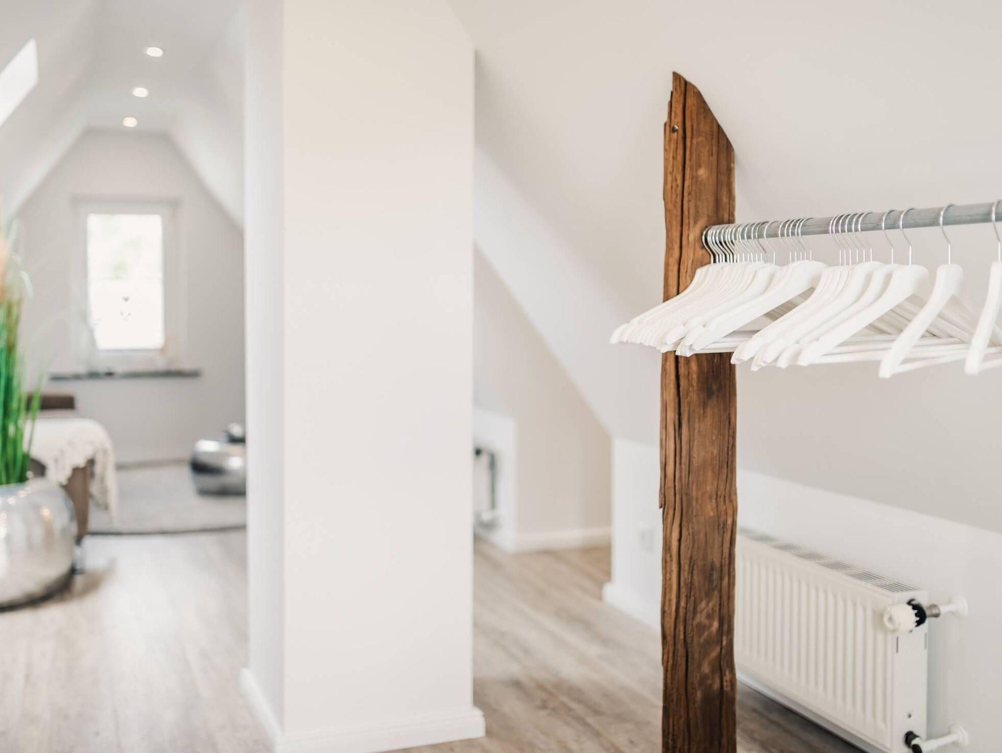Im ersten Stock unserer Maisonette-Ferienwohnung Schwalbennest erwartet Sie ein durchdacht gestalteter Bereich, der Ihnen alles für einen entspannten Start in den Tag bietet. Hier finden Sie ein gemütliches Schlafzimmer mit einem komfortablen Doppelbett, das Ihnen erholsame Nächte garantiert. Direkt angrenzend befindet sich ein modernes Badezimmer mit einer geräumigen Dusche, in dem Sie sich nach einem ereignisreichen Tag erfrischen können. Die voll ausgestattete Küche lässt keine Wünsche offen und bietet Ihnen die Möglichkeit, sich selbst zu versorgen und kulinarische Köstlichkeiten zuzubereiten.