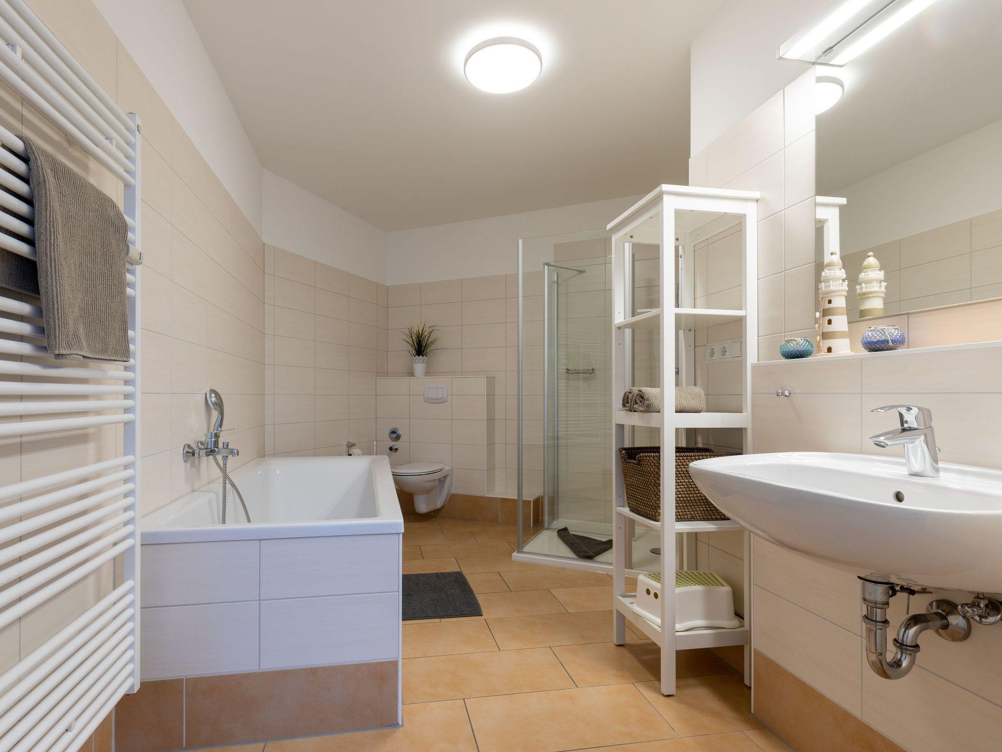- Bad mit Dusche 1m x 1m und Badewanne