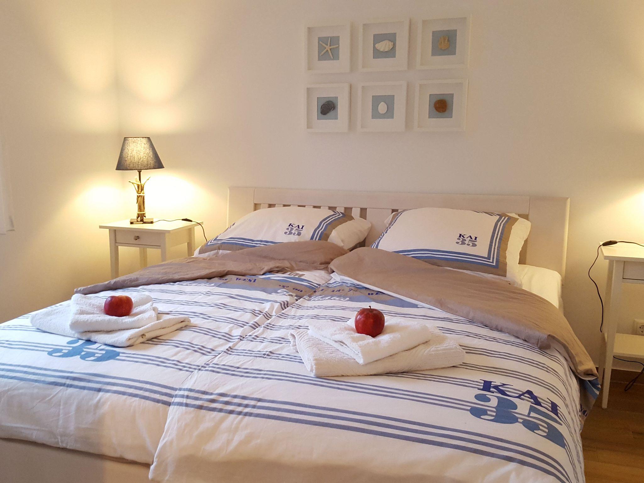 Hierzu zählen: Geschirrspüler, Induktionskochfeld, Kühlschrank mit Gefrierfach, SAT-TV, HIFI-Anlage mit Bluetooth, separater Schlafraum (außer App. 5) mit Doppelbetten und durchgehenden bett1-Matratzen für den angenehmen Schlaf, Küche mit Essplatz, je 1 Fliegenschutzgitter in jedem Raum, sep. Bäder mit Fenster, Dusche und WC.
