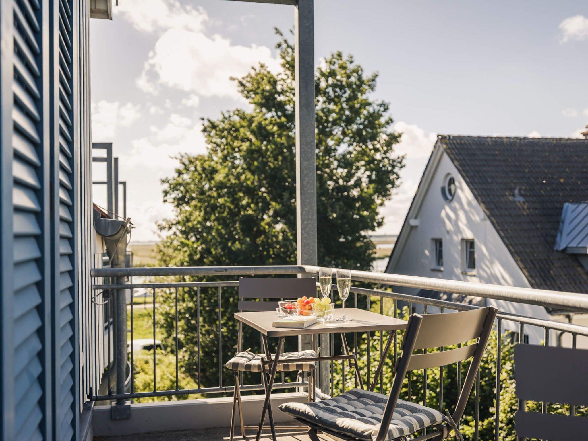 • Zwei private Balkone: Einer mit direktem Hafenblick, der andere mit weitem Blick über die Dächer von Zingst