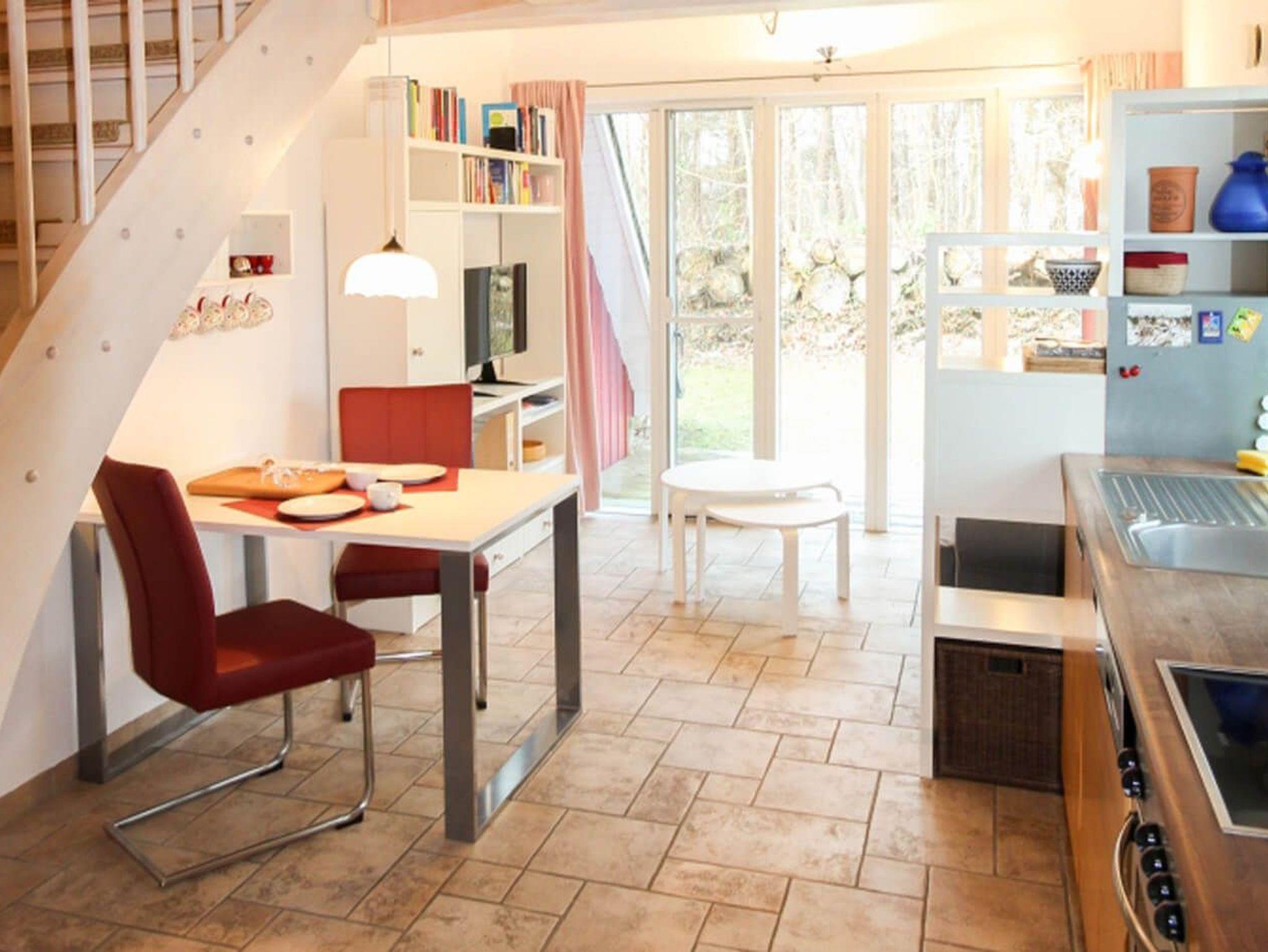 Das Objekt befindet sich auf einem privaten, naturbelassenen Gartengrundstück innerhalb des ökologisch orientierten Wohngebiets Kiek Över. Die Architektur des Hauses fügt sich harmonisch in die lockere Bebauung und die umgebende Natur ein. Gästen steht eine eigene, sichtgeschützte Terrasse mit Gartenmöbeln, Sonnenliegen und Sonnenschirm zur Verfügung. Ein exklusiver PKW-Stellplatz befindet sich komfortabel direkt am Haus. Das gesamte Grundstück ist eine haustierfreie Zone, was eine besonders gepflegte Atmosphäre garantiert.